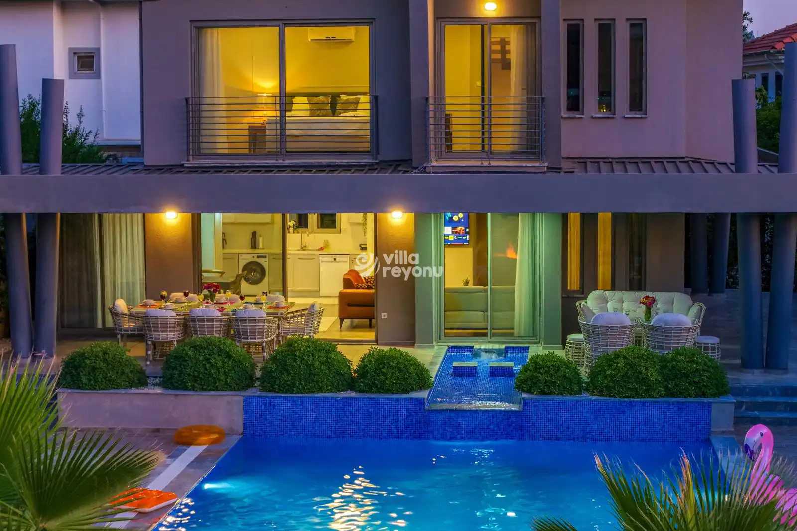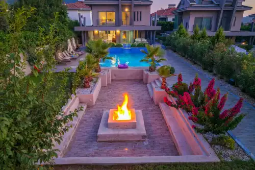 Geniş havuz terası ve özel bahçe alanı, tatilin keyfini artıracak şekilde tasarlanmıştır. Şezlong ve şemsiye, oturma alanı, yemek masası, barbekü alanı ve ateş çukuru ile hem dinlenebilir hem de sosyal aktiviteler gerçekleştirebilirsiniz. Glissera Villası, unutulmaz bir tatil için tüm detaylarıyla sizleri bekliyor.