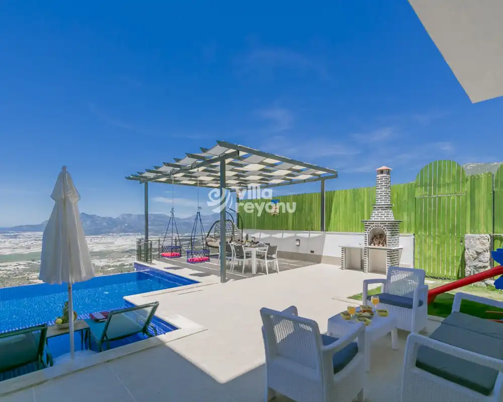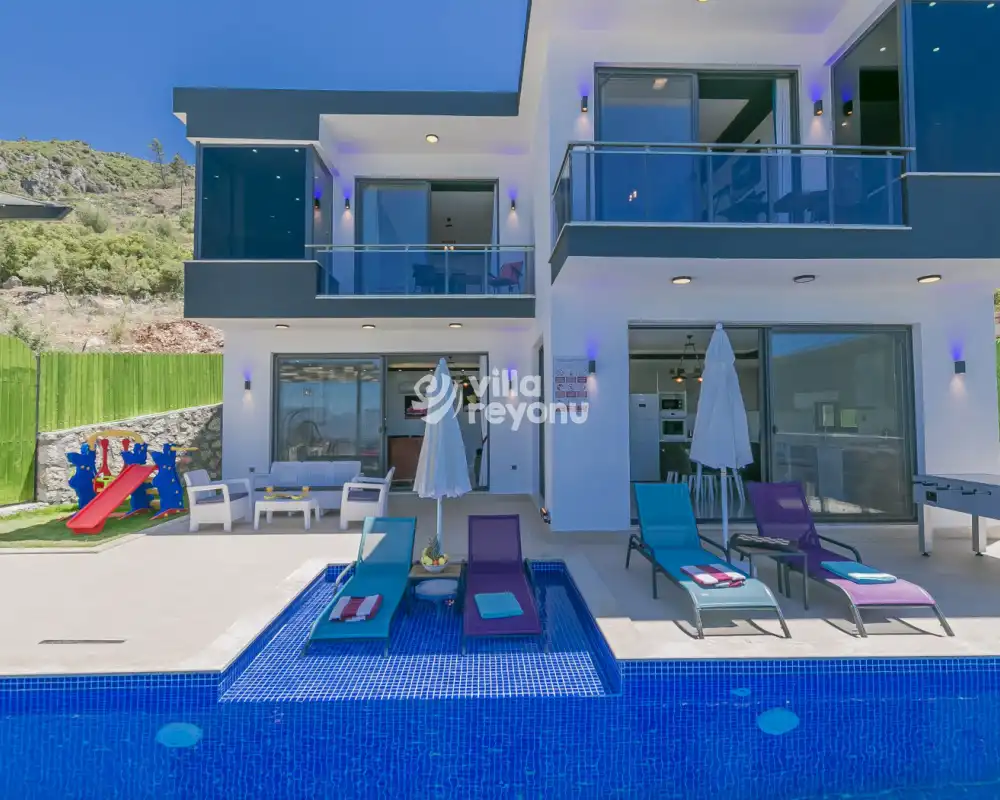 Villa Gümüş, Kalkan Üzümlü köyünde, eşsiz Patara deniz manzarasına sahip sessiz ve yeşillikler içinde yer almaktadır. Şık ve konforlu dekorasyonu ile 4 kişilik konaklama kapasitesine sahip olan villa, 2 yatak odası ve korunaklı havuz terasıyla dikkat çeker. Muhafazakar aileler ve balayı çiftleri için ideal olan villamızda, her iki odada da jakuzi bulunmaktadır. İki tekli yatak ise birleşebilir özelliktedir.