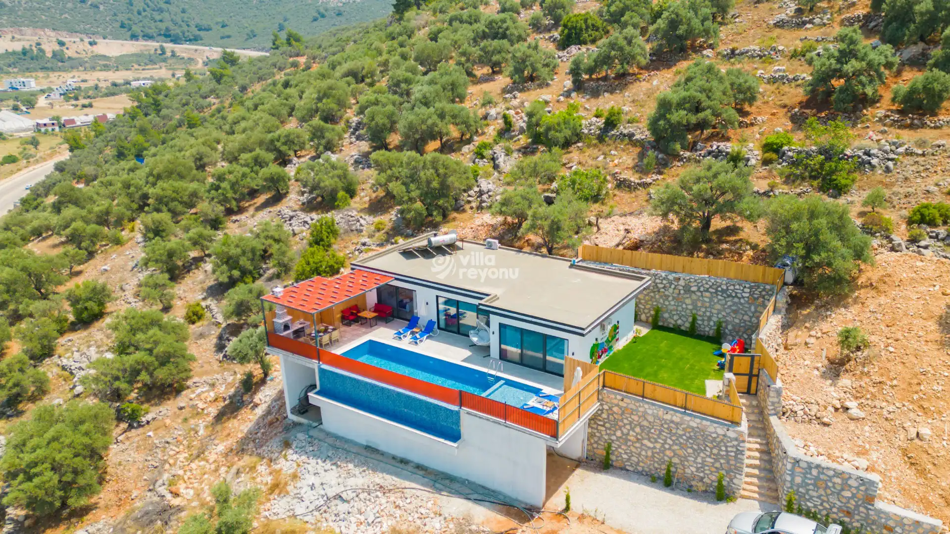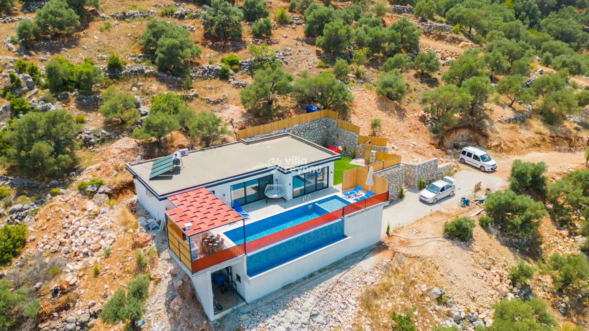 * Kaş ve Kalkan çevresinde bulunan villarımızın bir kısmı, bölge şartları sebebiyle yamaç üzerine kurulmuştur. Bu villalarımıza ulaşmak için yokuş yukarı çıkılması gerekmektedir. Bazı villalarımızın ise yolu stabilize(toprak) olabilmektedir.