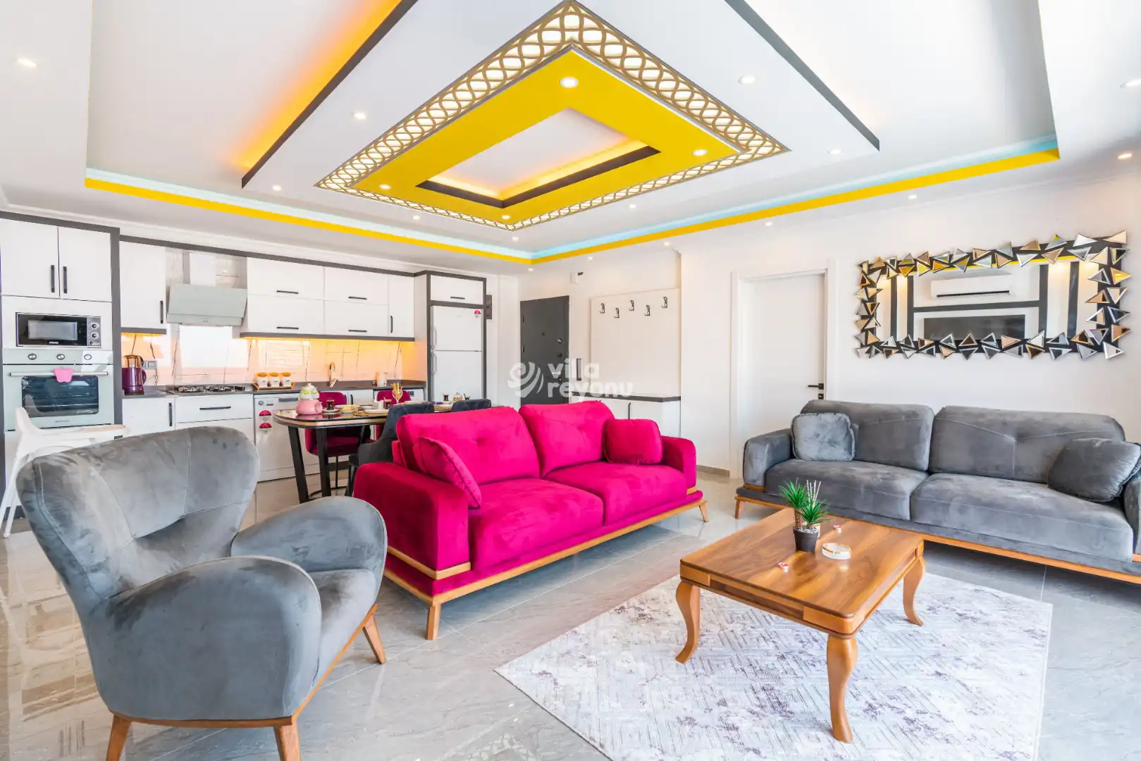 Bu evin resimleri sitemizde yer alan diğer evlerin resimleri gibi görüntüyü ekrana sığdırmak amacıyla, geniş açılı lens ve profesyonel fotoğraf makinaları ile çekilmektedir. Bu nedenle resimler üzerinde yer alan objeler gerçeğinden daha büyük olarak görülebilmektedir.