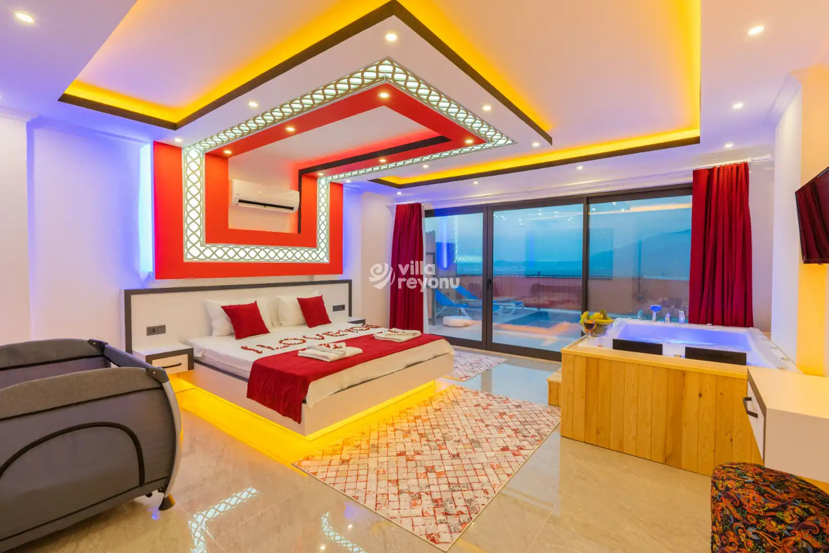 * Doğa içerisinde bulunan tüm villalarımızda düzenli olarak ilaçlama yapılmaktadır. Ancak yine de çevrede kelebek, böcek, sinek vb. bulunma ihtimali bulunmaktadır.