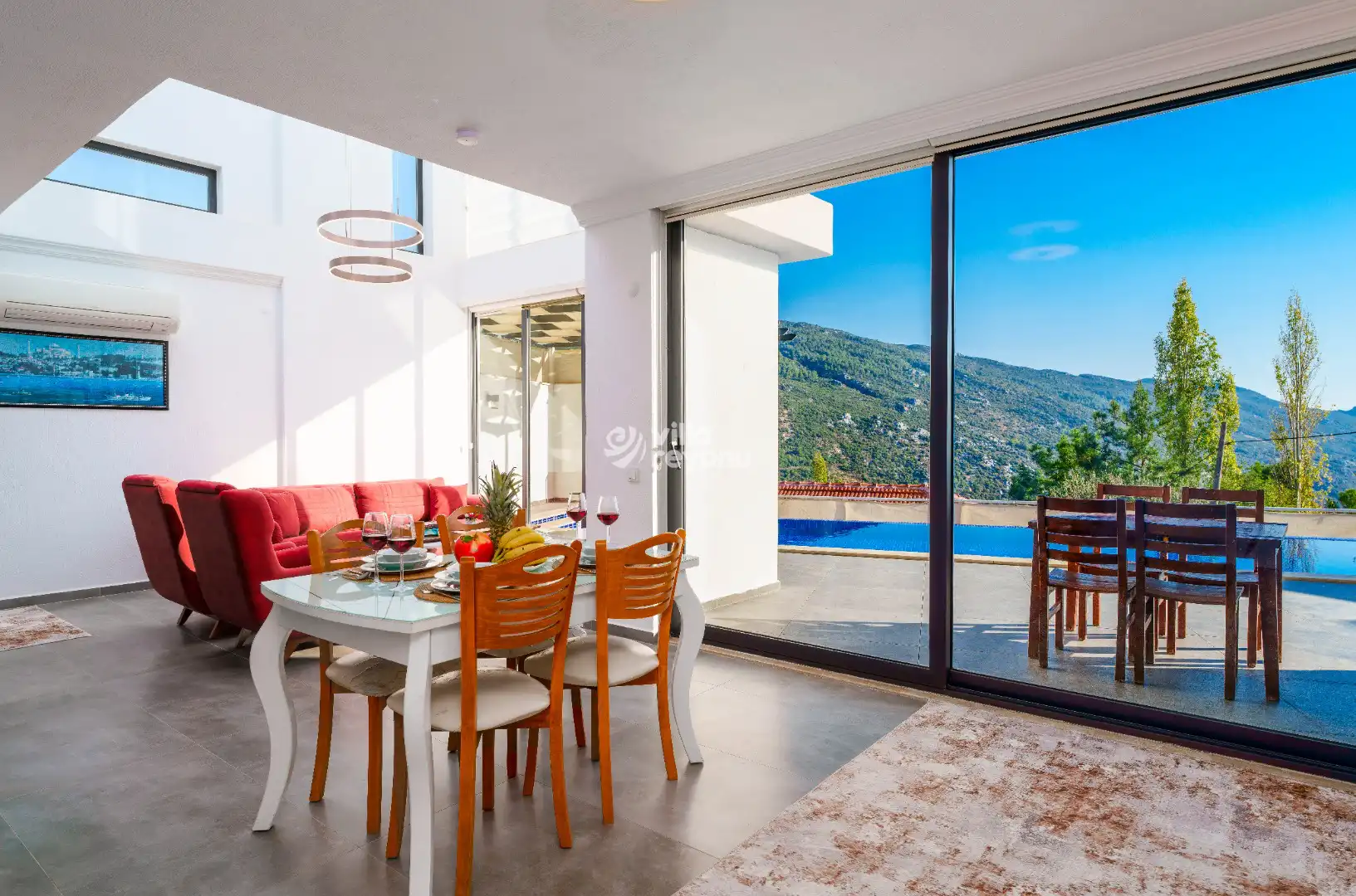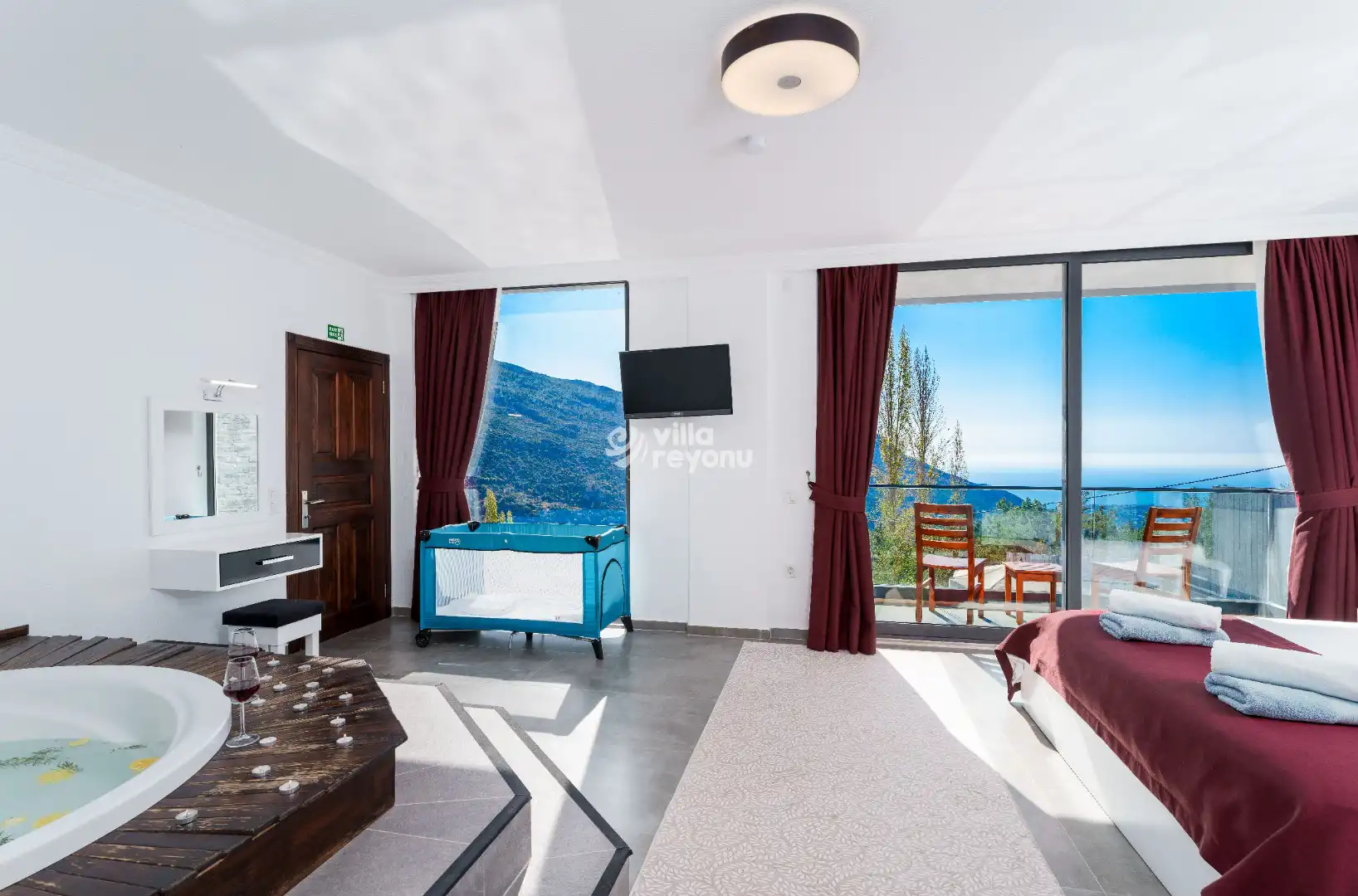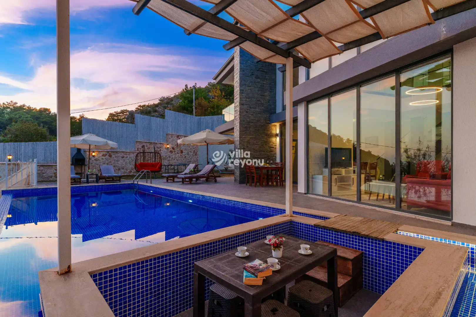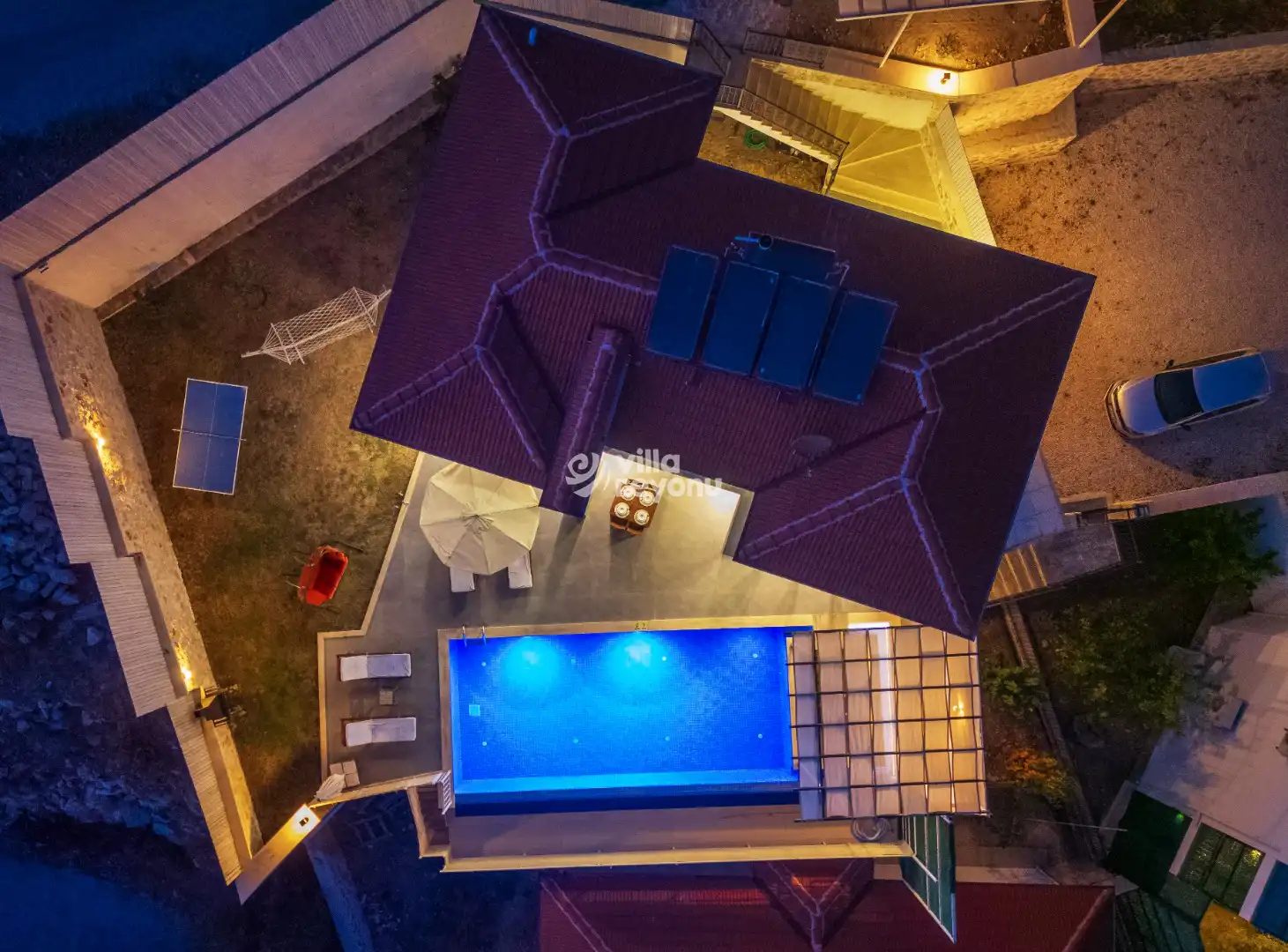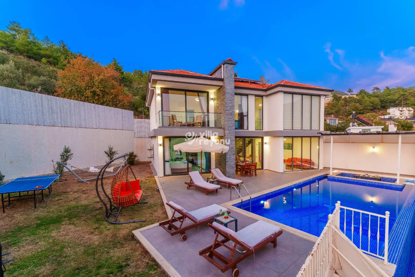 * Doğa içerisinde bulunan tüm villalarımızda düzenli olarak ilaçlama yapılmaktadır. Ancak yine de çevrede kelebek, böcek, sinek vb. bulunma ihtimali bulunmaktadır.