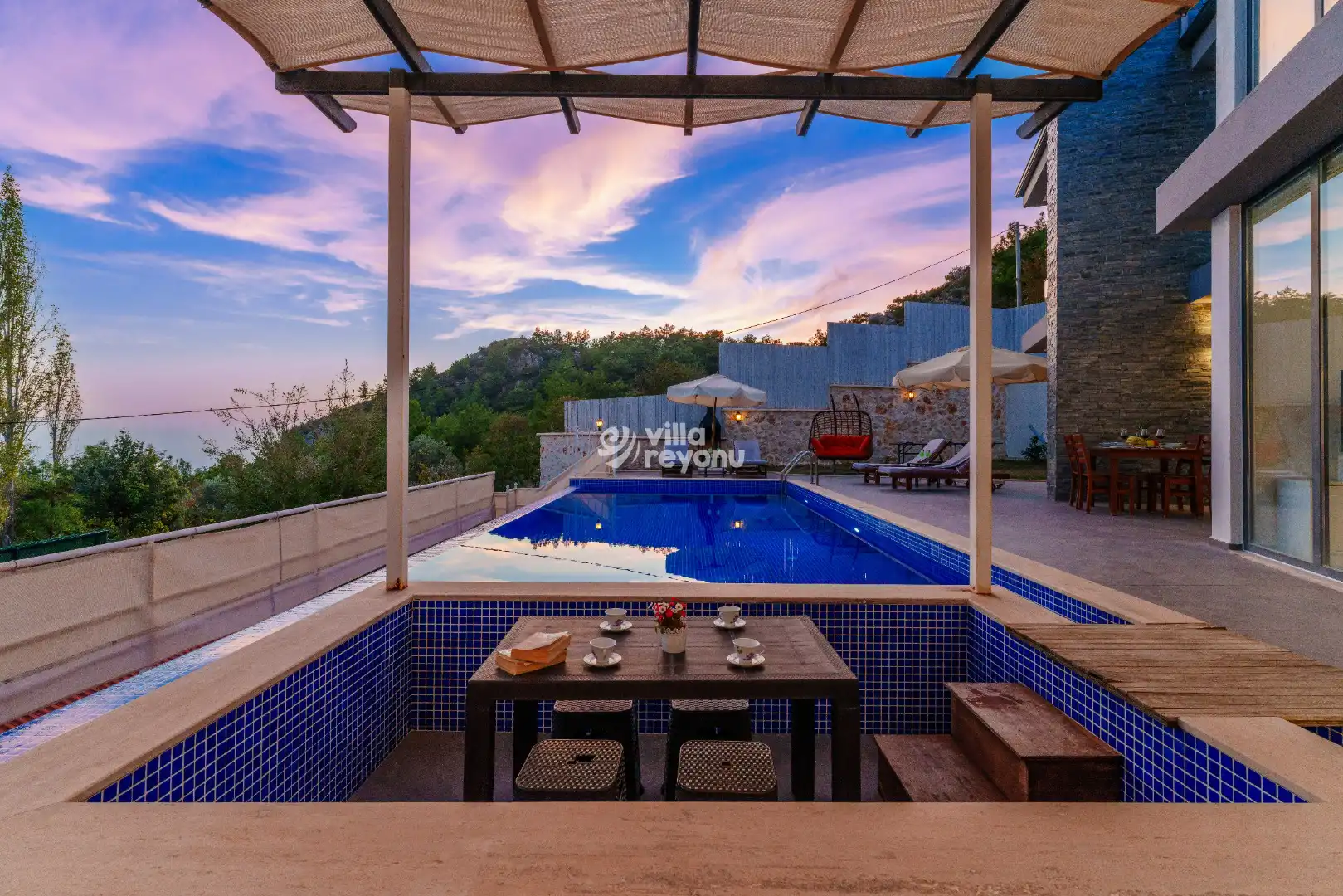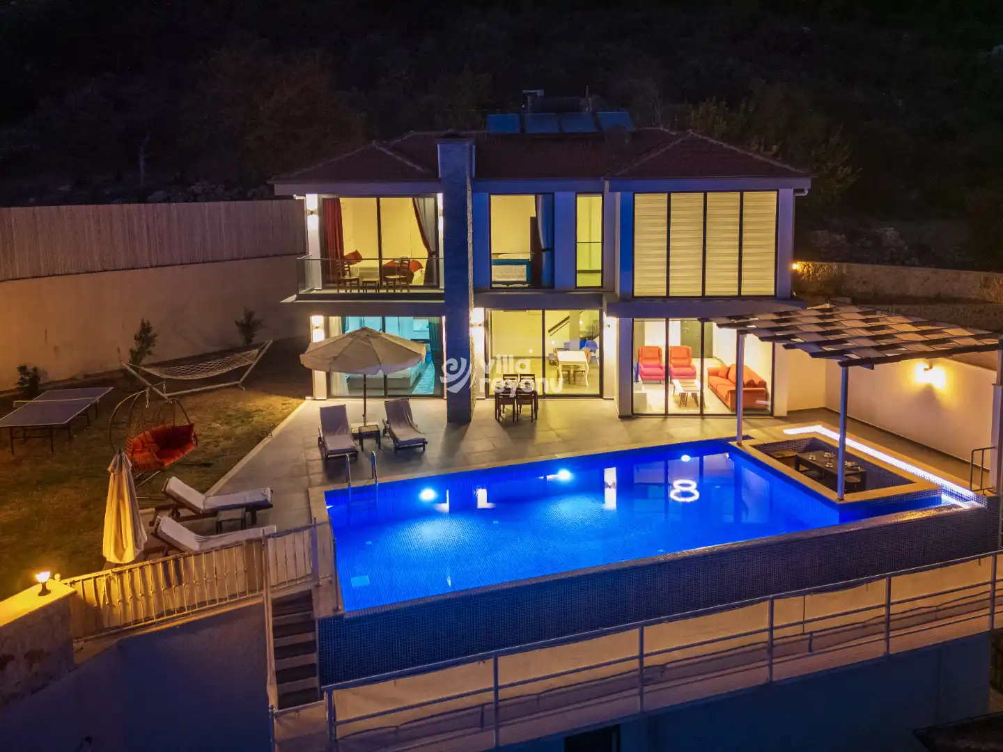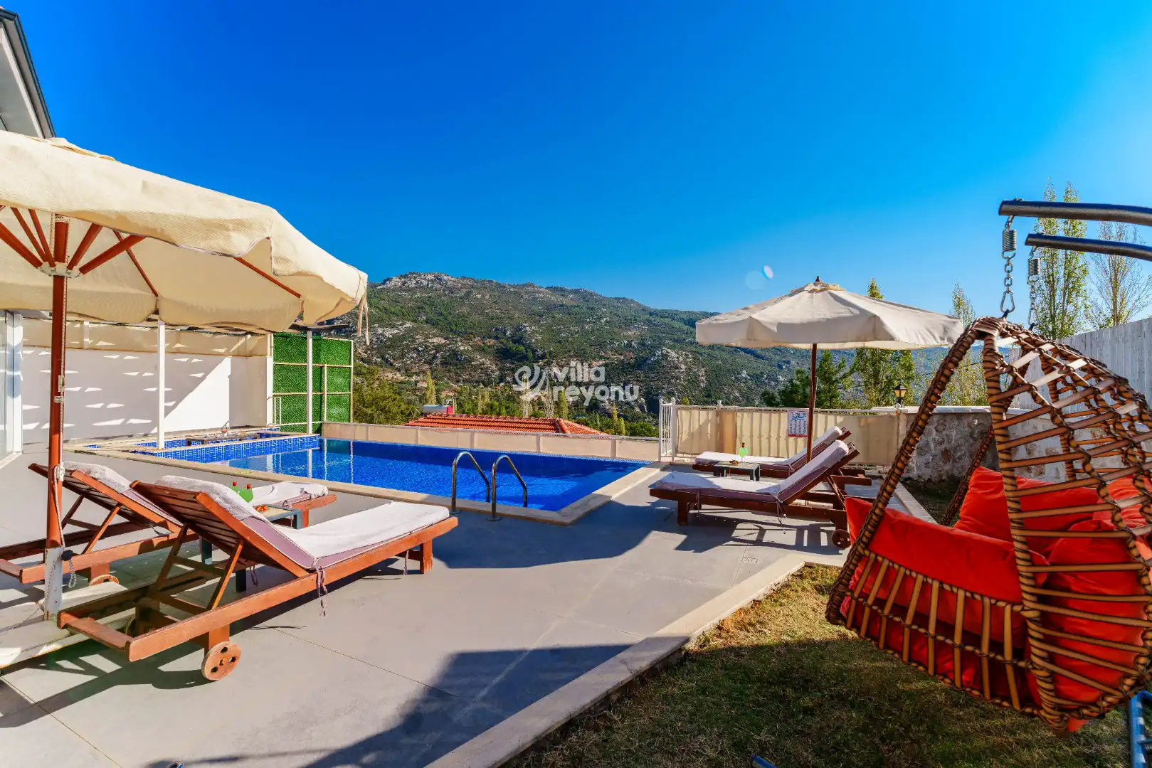 Korunaklı olarak tasarlanmış özel havuzu dışarıdan görünmez yapıdadır; bu da özellikle mahremiyete önem veren misafirler için güvenli ve rahat bir konaklama ortamı sağlar. Odalardan birinde bulunan jakuzi ise tatilinize hem lüks hem de dinlendirici bir atmosfer katar. Geniş teras alanı, ferah bahçesi ve etkileyici doğa manzarası ile Villa Hesse, günün her anını huzur dolu bir deneyime dönüştürür.