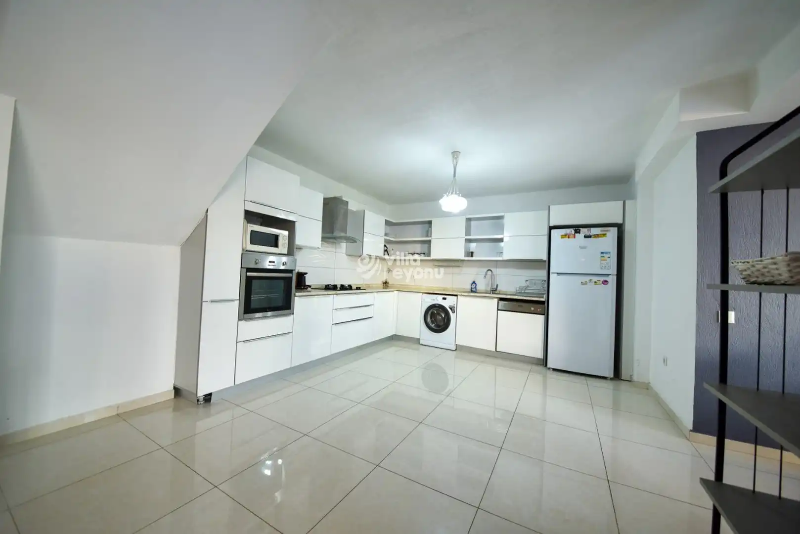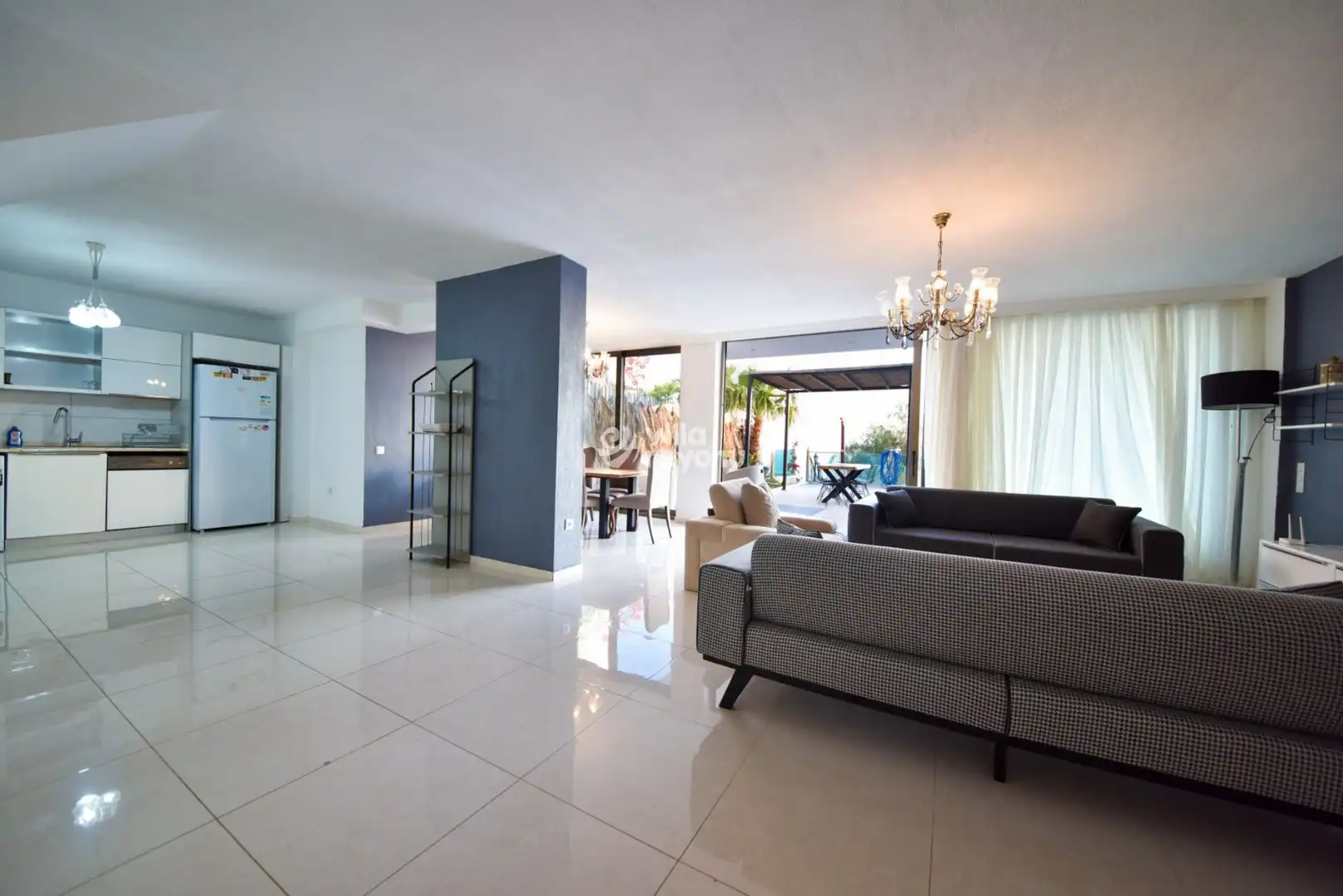 Modern ve ferah tasarıma sahip villamızda, gün boyu keyifle vakit geçirebileceğiniz kullanışlı bir açık mutfak ve salon alanı bulunmaktadır. Özenle dizayn edilmiş havuz terası, sevdiklerinizle birlikte unutulmaz anlar yaşayabileceğiniz yemek masası, konforlu oturma grubu ve barbekü alanı ile tatilinizi daha da özel kılar.