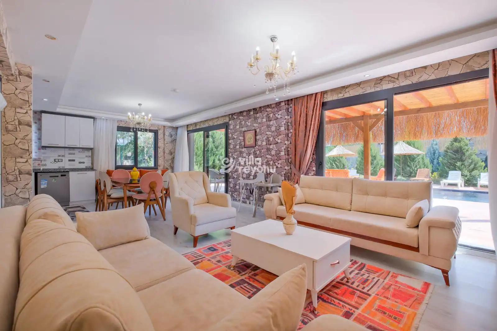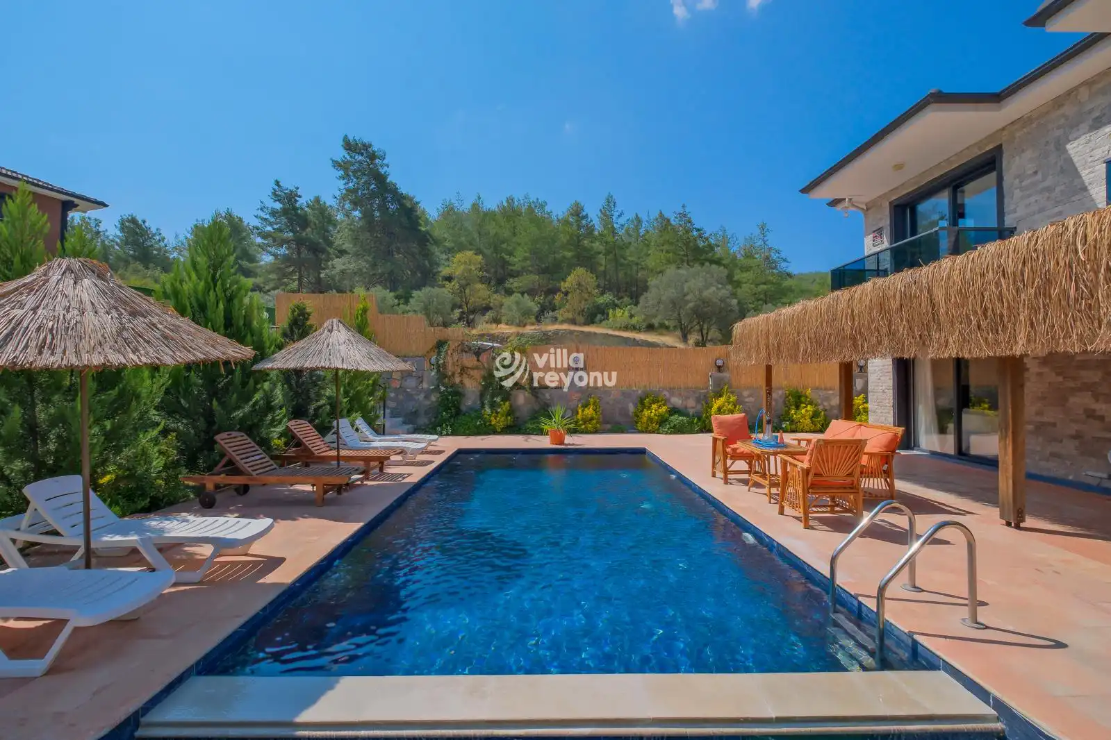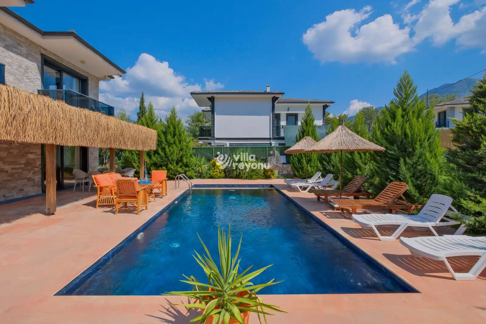 Villa İdeal, Fethiye'nin Yeşilüzümlü Köyü'nde, Fethiye merkeze 20-25 km uzaklıkta, sessiz ve sakin bir konumda yer almaktadır. Bu bölge, bol oksijenli doğasıyla huzurlu bir yaşam alanı sunarken, her yıl bahar aylarının başında düzenlenen Kuzu Göbeği Festivali ile renkli ve eğlenceli bir atmosfer yaratmaktadır. Villamızda dört yatak odası bulunmaktadır. Birinci yatak odasında çift kişilik yatak yer almakta, ikinci yatak odasında ise çift kişilik yatak, ebeveyn banyosu ve klima mevcuttur. Üçüncü yatak odasında ise iki adet tek kişilik yatak ve klima bulunmaktadır. Villa İdeal, konforlu iç mekanları ve doğayla iç içe huzurlu atmosferiyle misafirlerine unutulmaz bir tatil deneyimi sunmaktadır.
