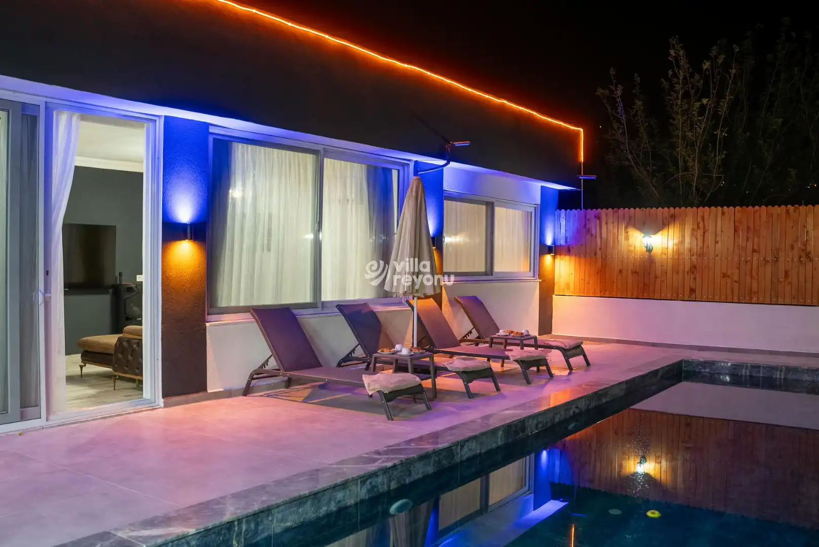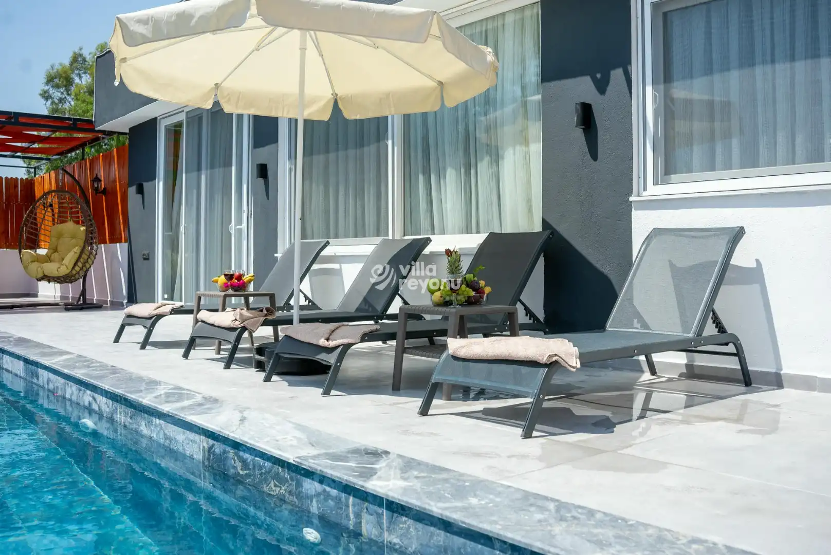 Doğa ile iç içe konumu sayesinde şehir hayatının stresinden uzak, sessiz ve dinlendirici bir atmosferde zaman geçirebilirsiniz. Korunaklı havuz alanı ve eksiksiz donanımı ile villa, balayı çiftleri, muhafazakar konuklar ve küçük aileler için ideal bir tercihtir. Tatilin keyfini sürmek dışında hiçbir şeyle uğraşmanıza gerek yok.