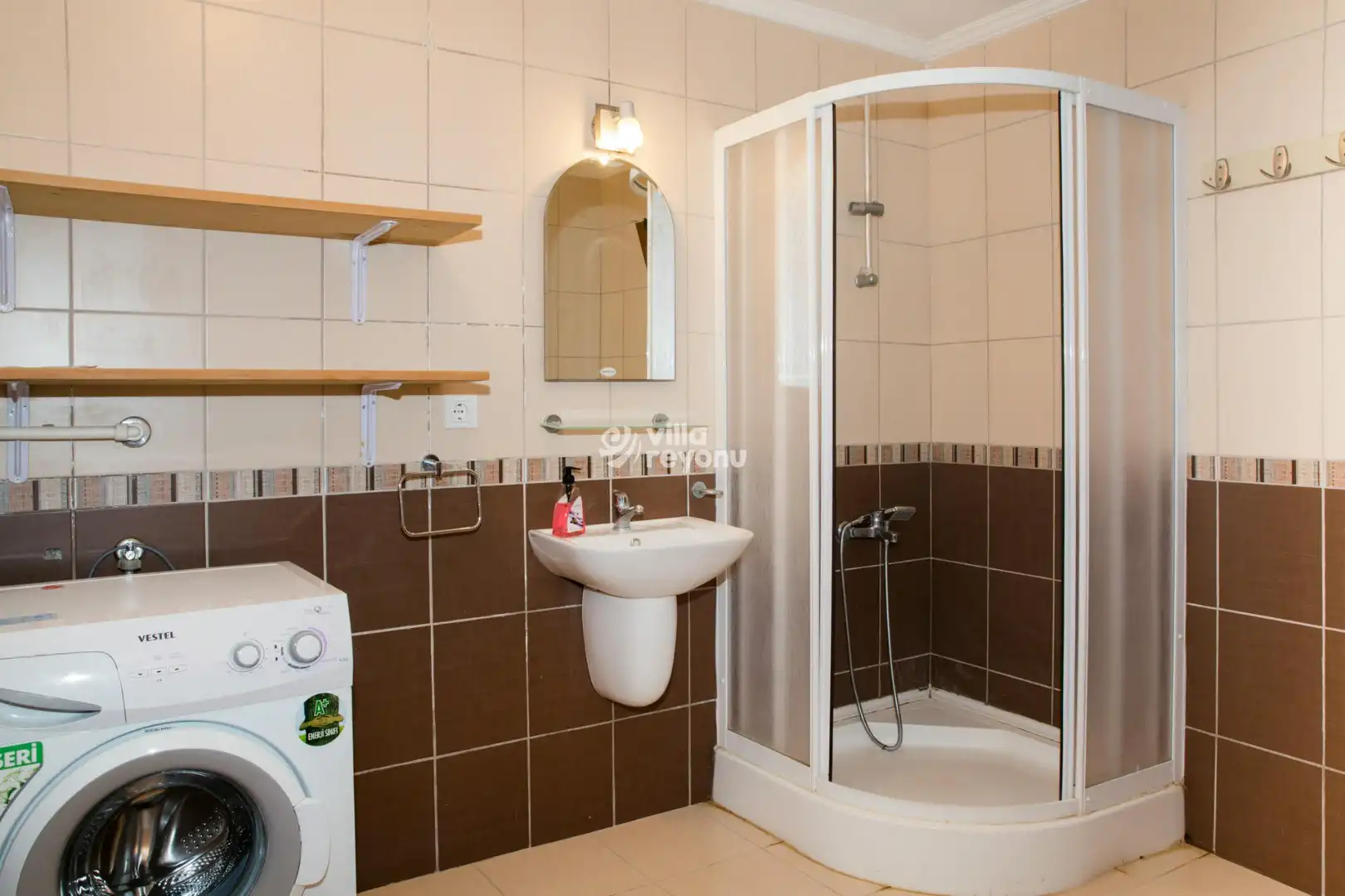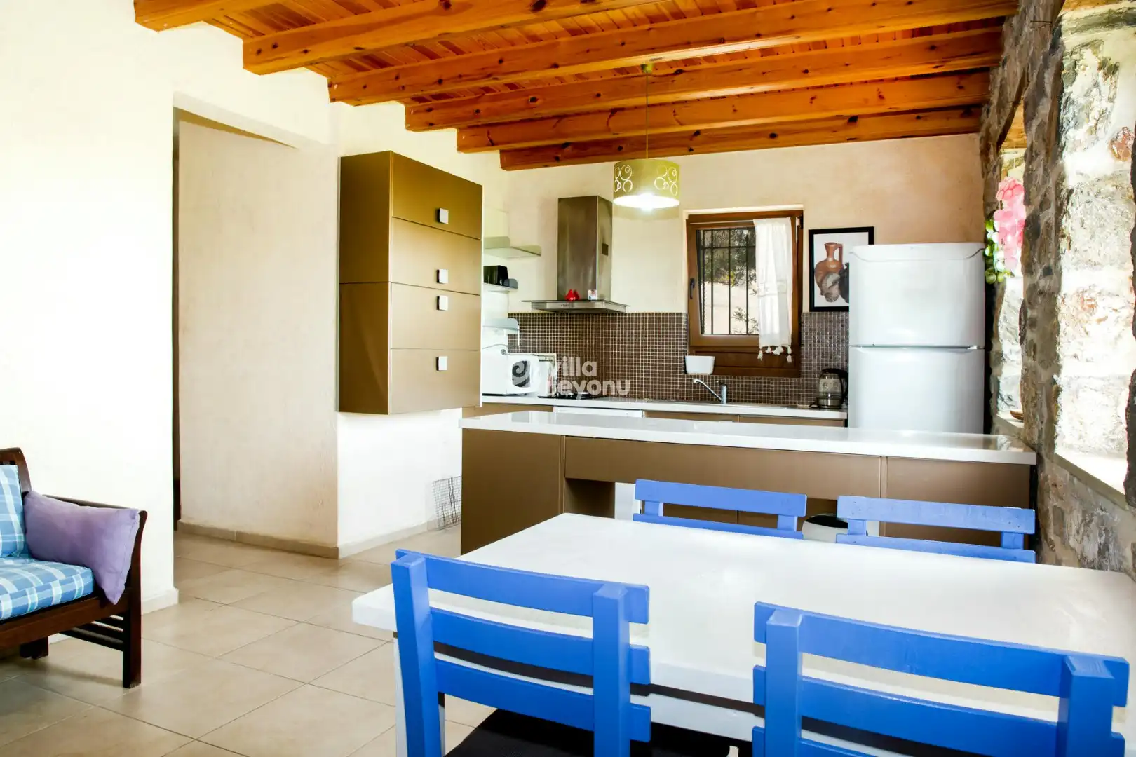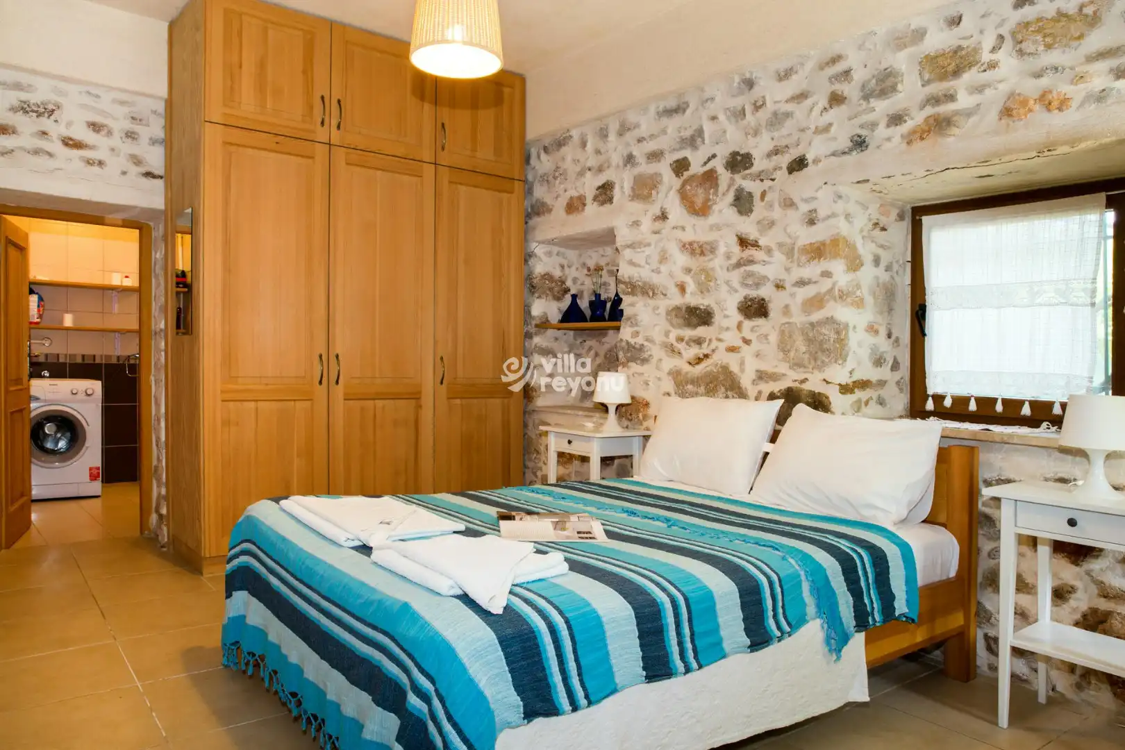 Villamızda 2 yatak odası ve 1 geniş salon bulunmaktadır. Ana yatak odasında çift kişilik bir yatak, diğer odada ise iki adet tek kişilik yatak yer almakta olup, salondaki açılabilir koltuk ile toplamda 5 kişiye kadar konaklama imkânı sunulmaktadır. Ayrıca bebek yatağı da mevcuttur.