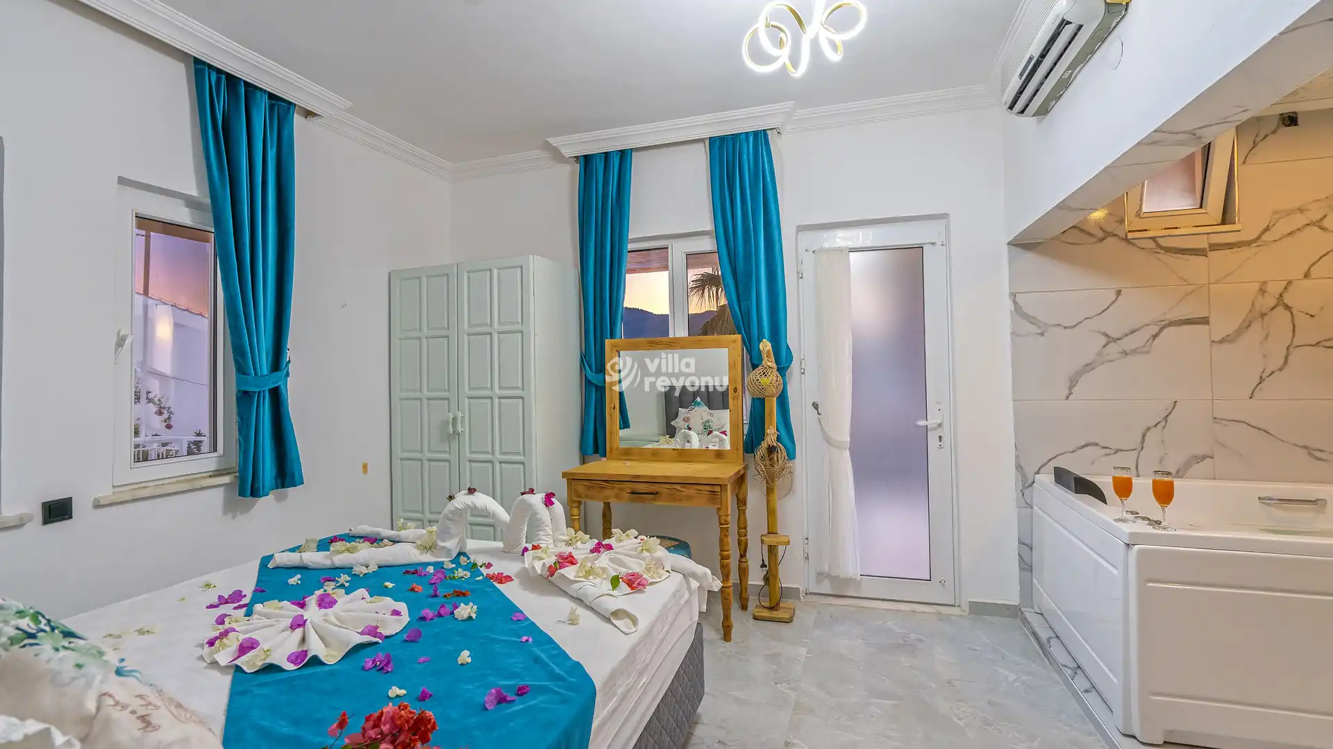 Villa Karla Kalkan Yeşilköy bölgesinde yer almaktadır.2 yatak odalı 5 kişi konaklama kapasitesine sahiptir.Havuz ve havuz terası korunaklı olup muhafazakar aileler için oldukça idealdir.