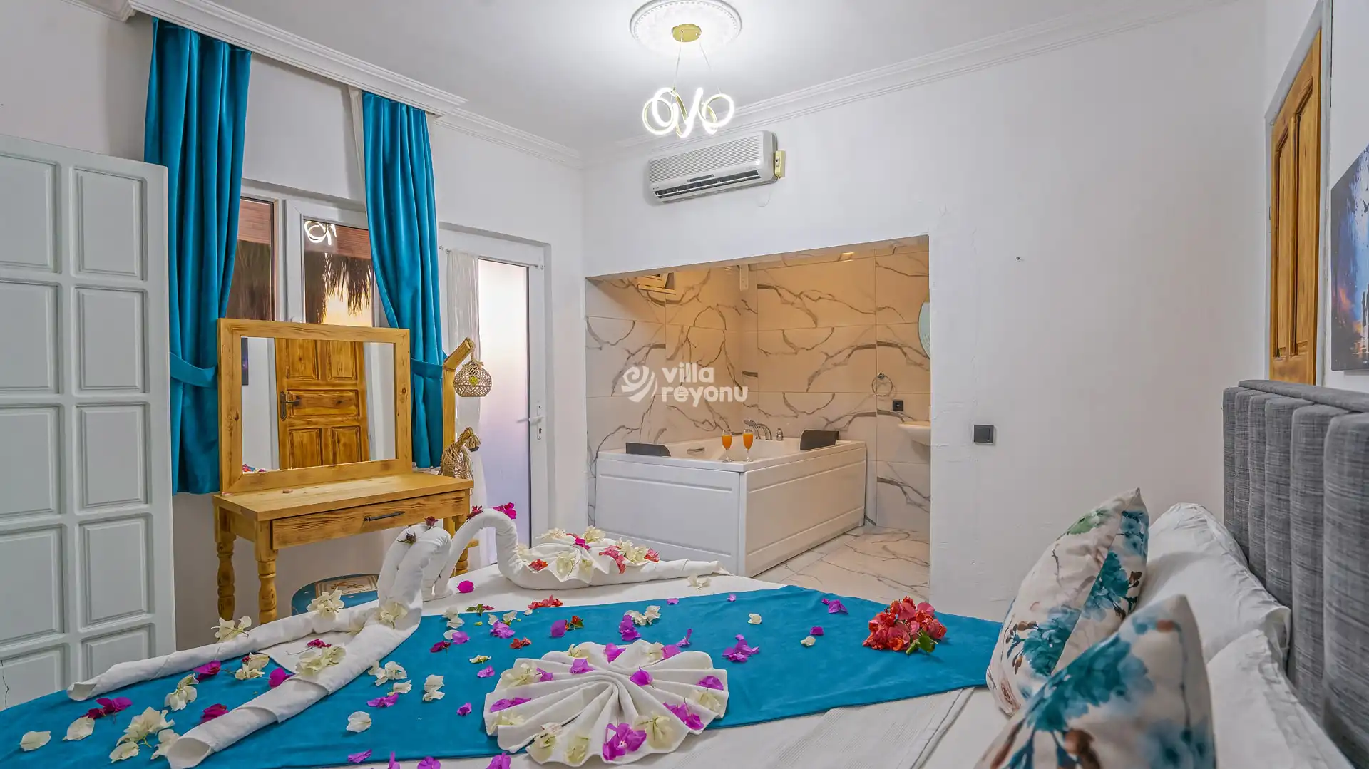 * Doğa içerisinde bulunan tüm villalarımızda düzenli olarak ilaçlama yapılmaktadır. Ancak yine de çevrede kelebek, böcek, sinek vb. bulunma ihtimali bulunmaktadır.
