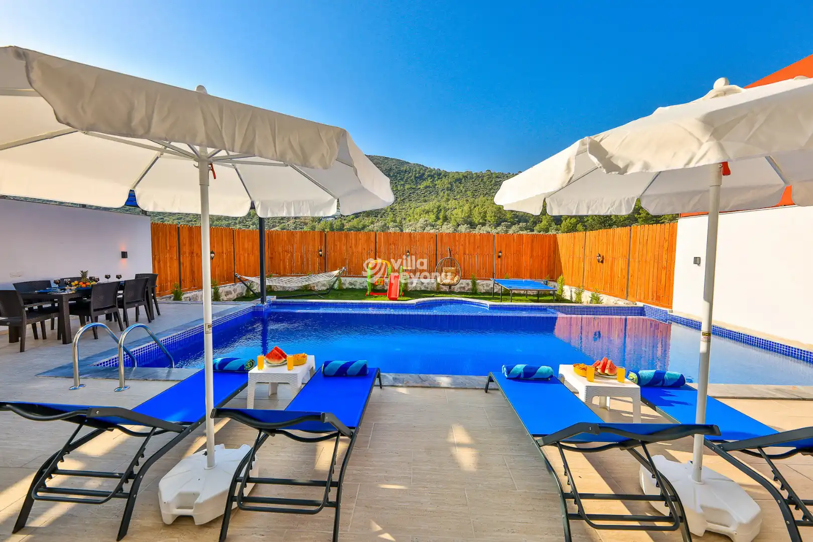 * Doğa içerisinde bulunan tüm villalarımızda düzenli olarak ilaçlama yapılmaktadır. Ancak yine de çevrede kelebek, böcek, sinek vb. bulunma ihtimali bulunmaktadır.