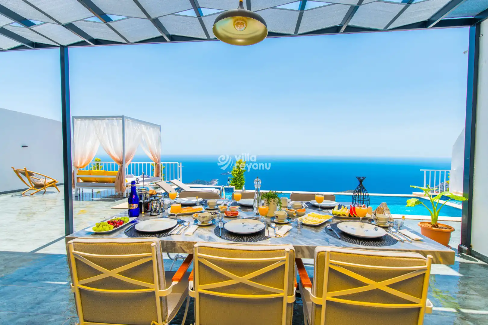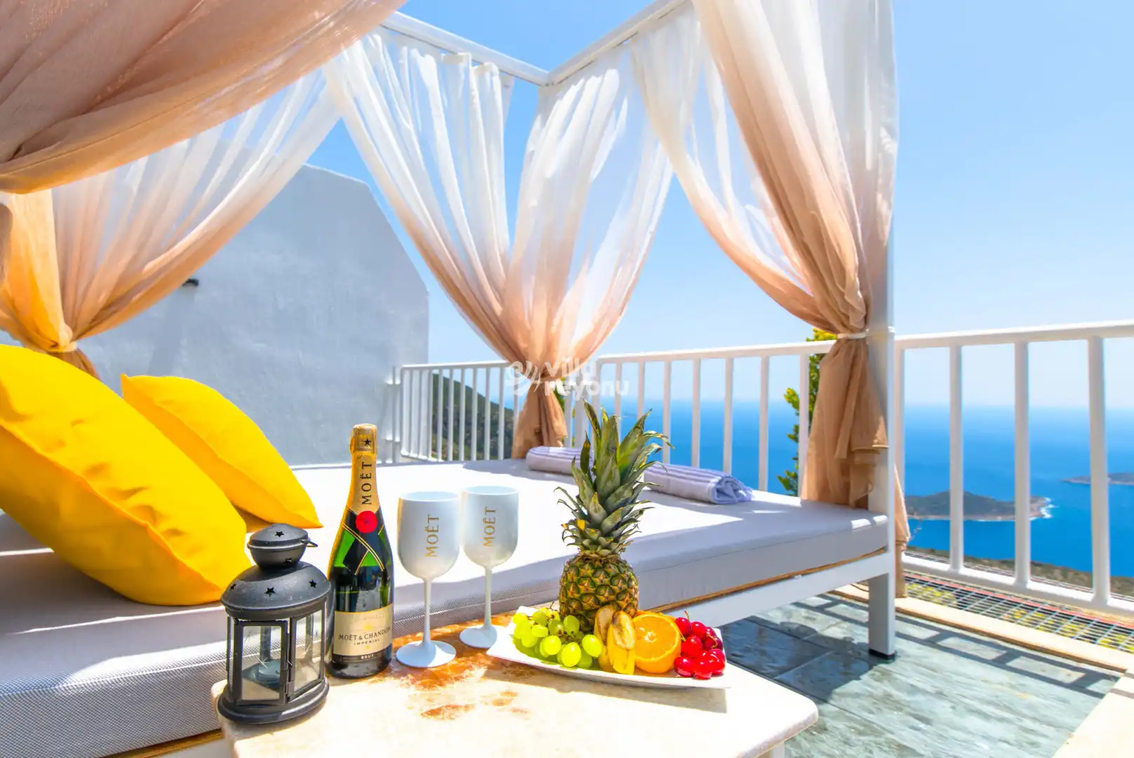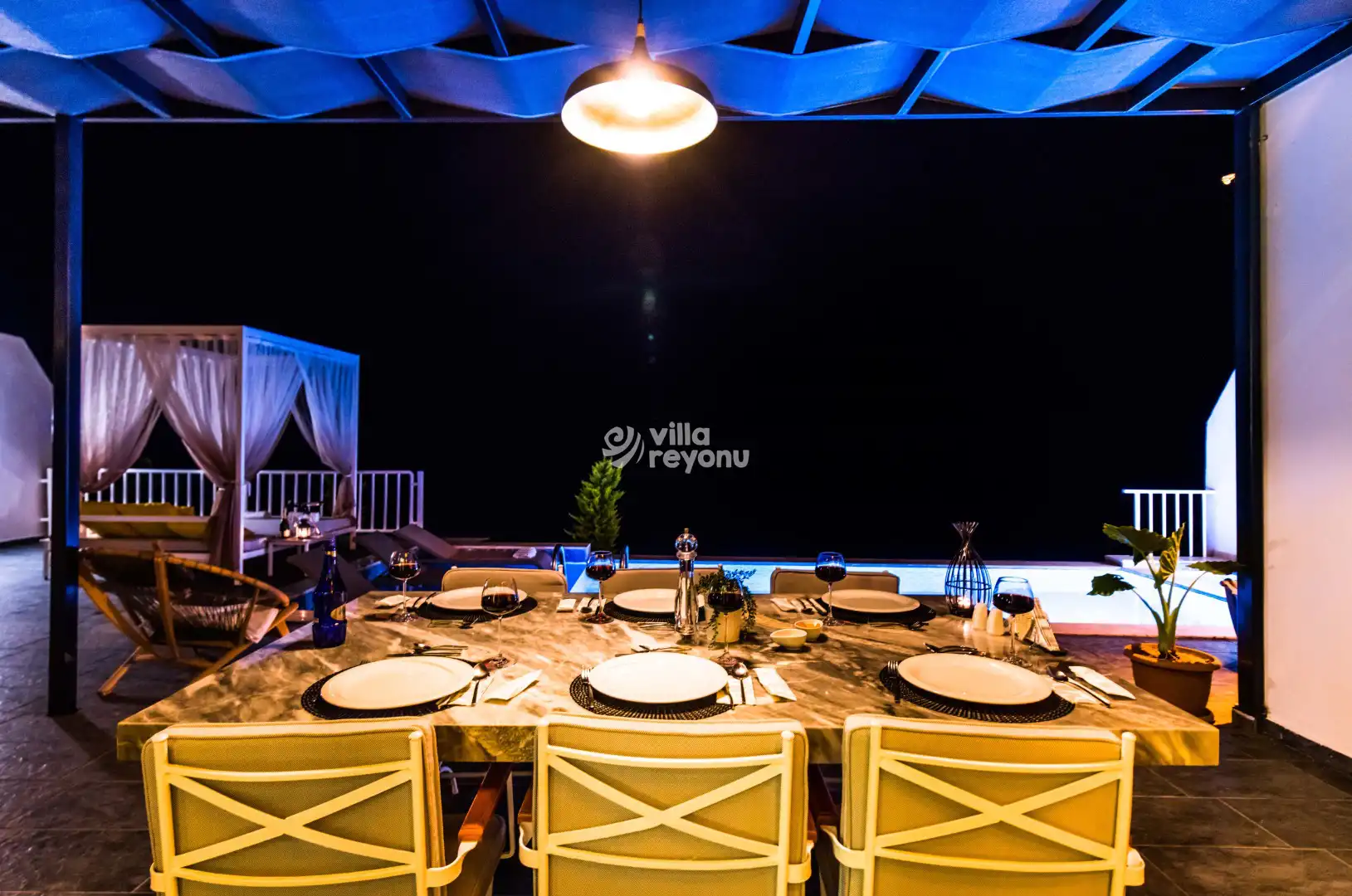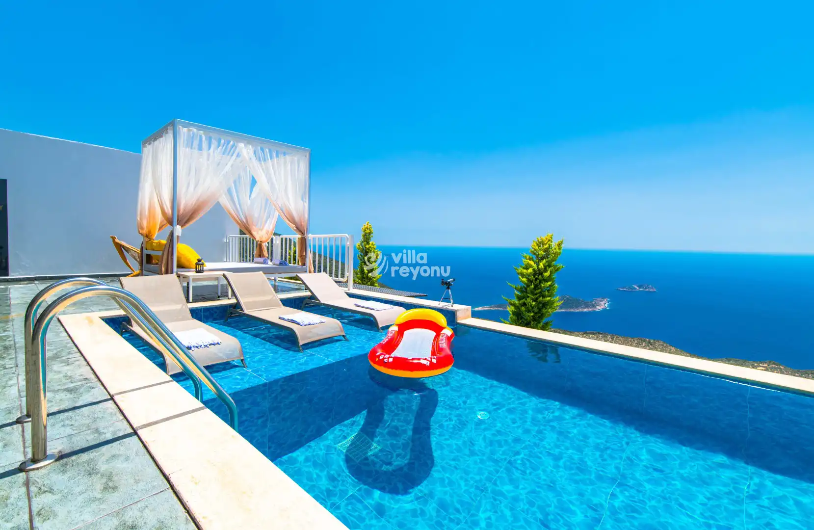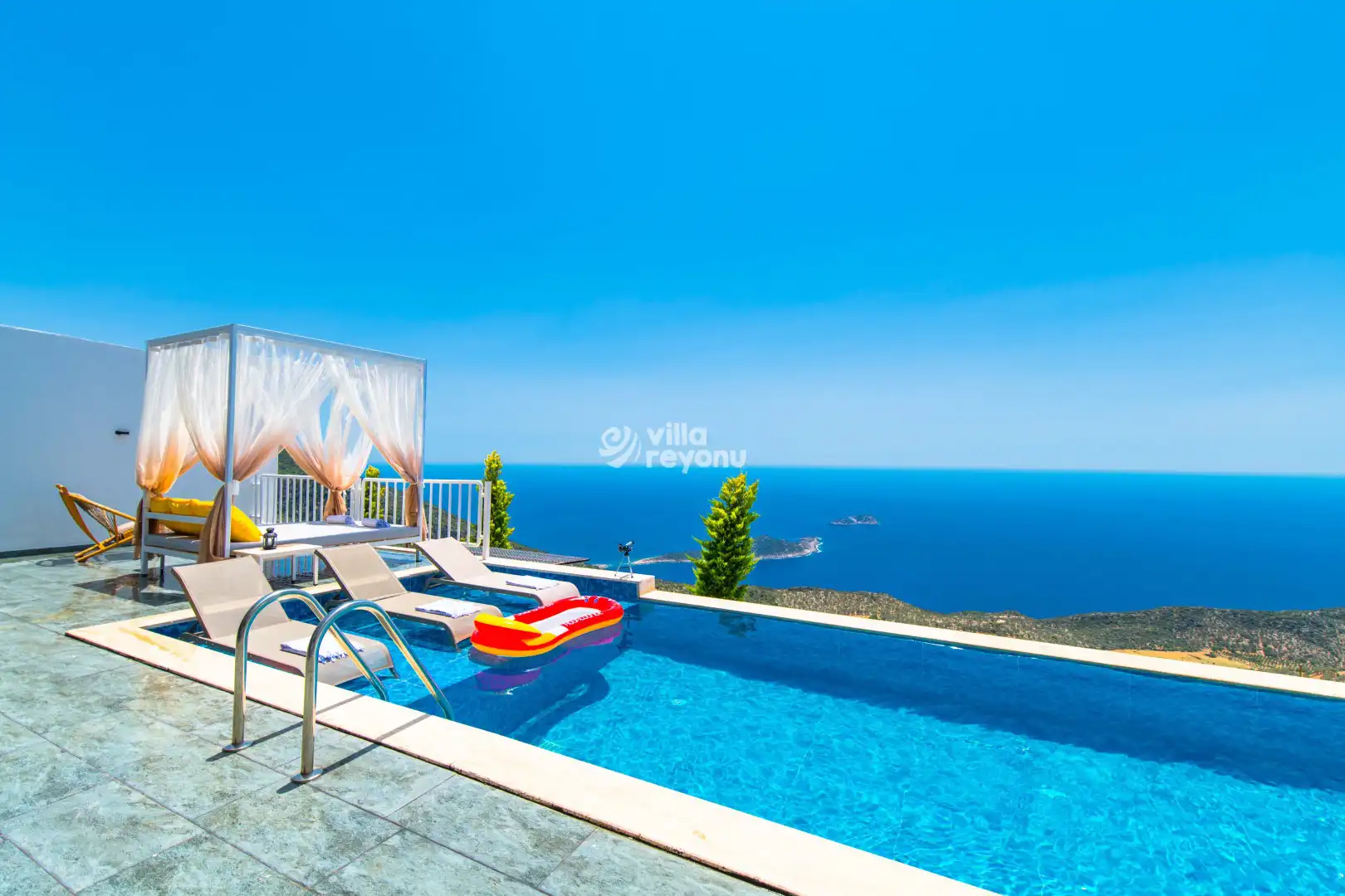Villa Kiraz 2, Kalkan Kördere mevkiinde konumlanan, eşsiz deniz manzarasına hakim konumu ve 6 kişilik konaklama kapasitesiyle aileler ve arkadaş grupları için lüks ve konforlu bir tatil deneyimi sunmaktadır; modern ve şık tasarıma sahip dubleks villamızda geniş özel yüzme havuzu ve çocuklar için sığ havuz, deniz manzaralı ferah teras alanı, barbekü, bahçede köşk ve salıncak ile keyifli vakit geçirebileceğiniz alanlar yer alırken, jakuzi sayesinde günün yorgunluğunu konforla atabilirsiniz. Tam donanımlı mutfağı ve özenle tasarlanmış yaşam alanlarıyla tüm ihtiyaçlarınıza cevap veren Villa Kiraz 2, yeni sezonda da siz değerli misafirlerini ayrıcalıklı ve huzur dolu bir Akdeniz tatiline davet etmektedir.