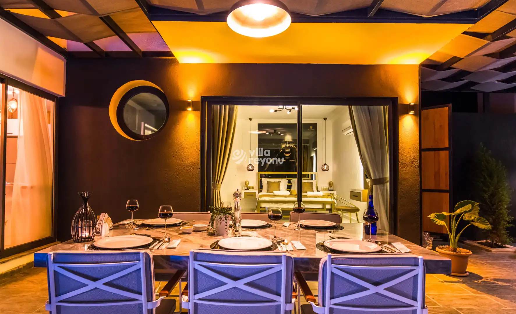 * Doğa içerisinde bulunan tüm villalarımızda düzenli olarak ilaçlama yapılmaktadır. Ancak yine de çevrede kelebek, böcek, sinek vb. bulunma ihtimali bulunmaktadır.
