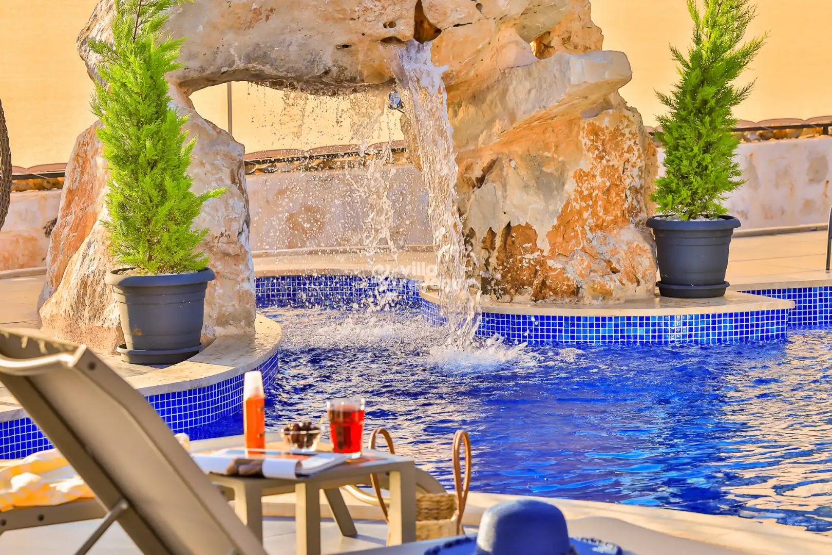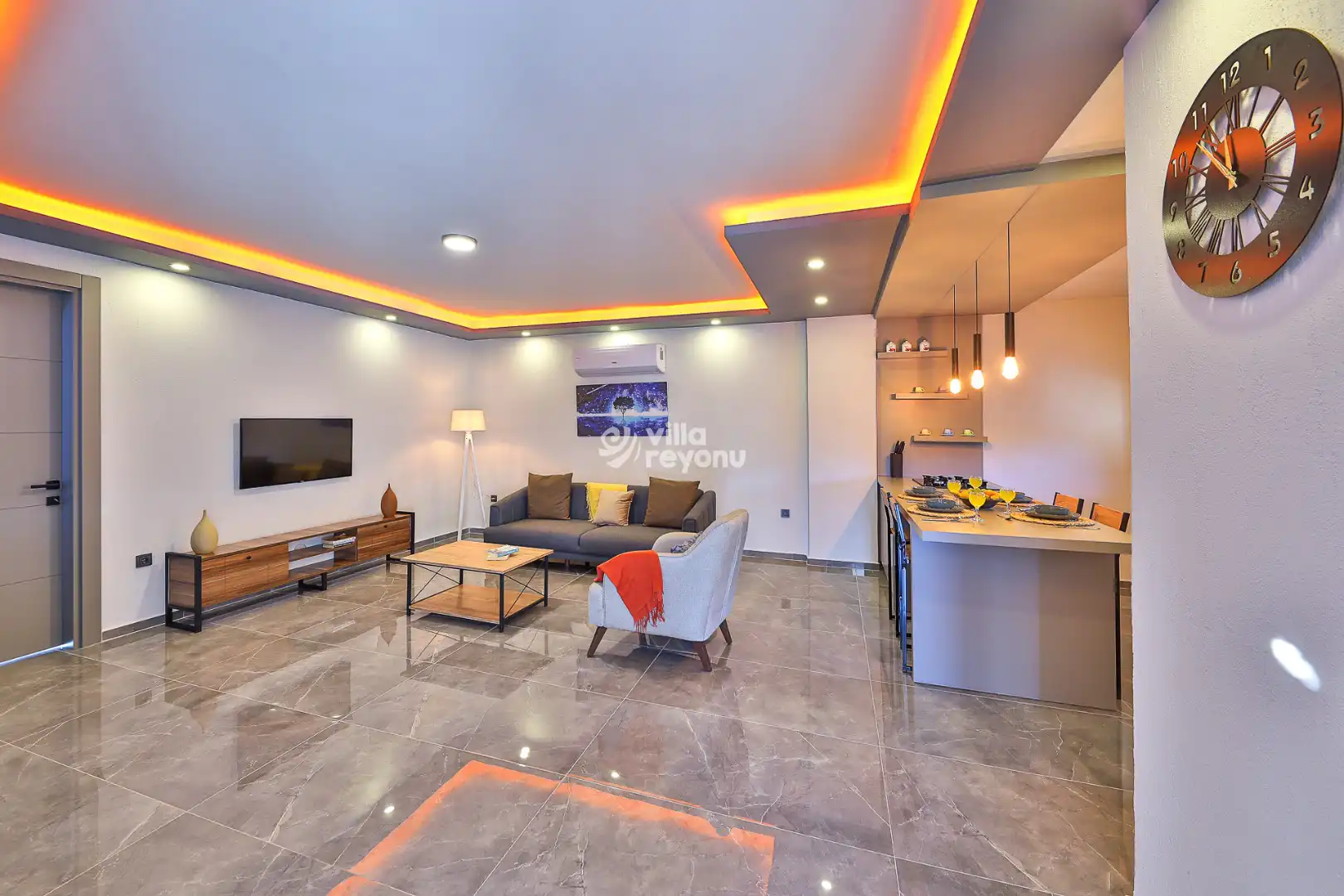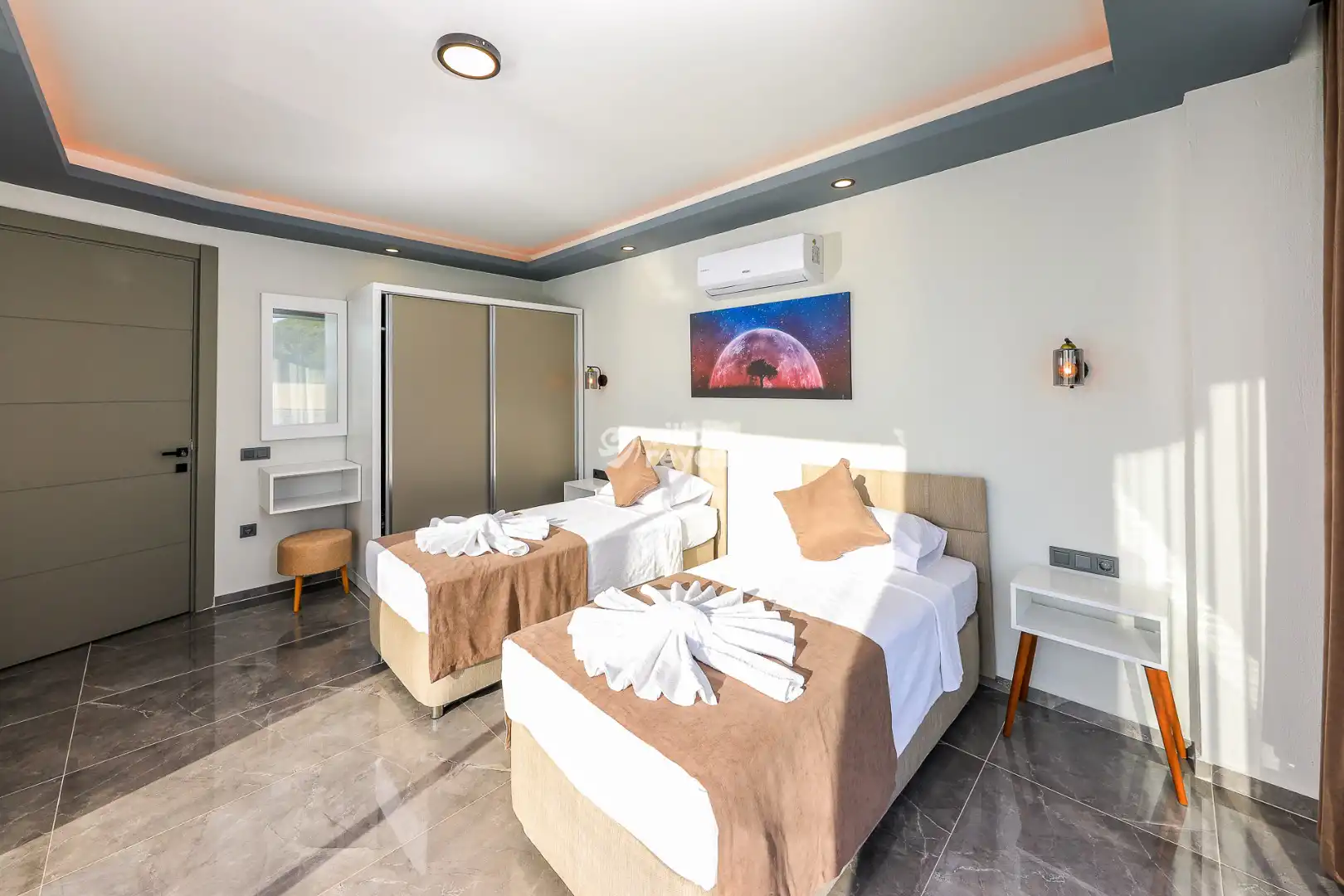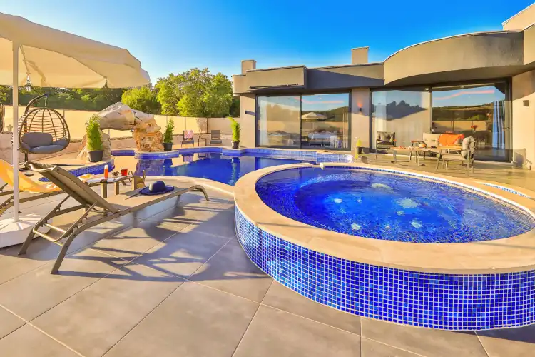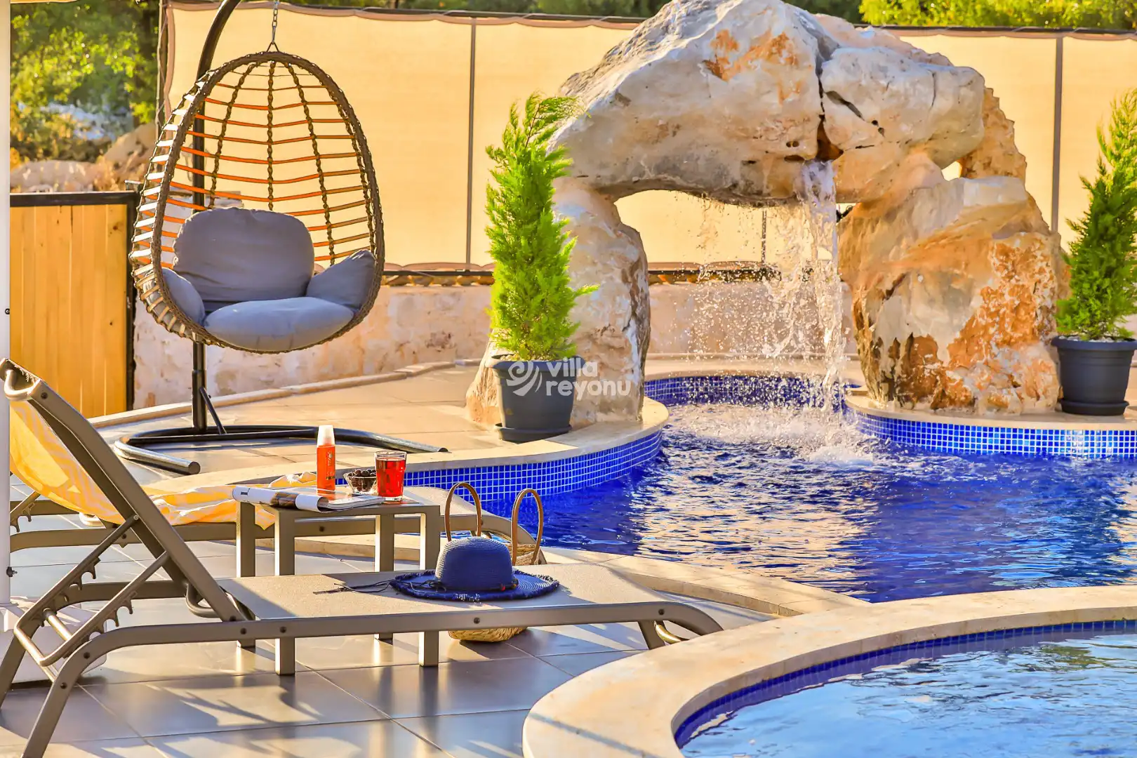 Geniş bahçesinde özel yüzme havuzu, çocuk havuzu, şezlonglar, yemek alanı, barbekü, oturma köşesi, salıncak ve mini çocuk oyun alanı bulunmaktadır. Yatak odalarından birinde jakuzi yer alan villa, sakin ve huzurlu bir tatil arayan misafirler için şehir kalabalığından uzak keyifli bir konaklama sunar.
