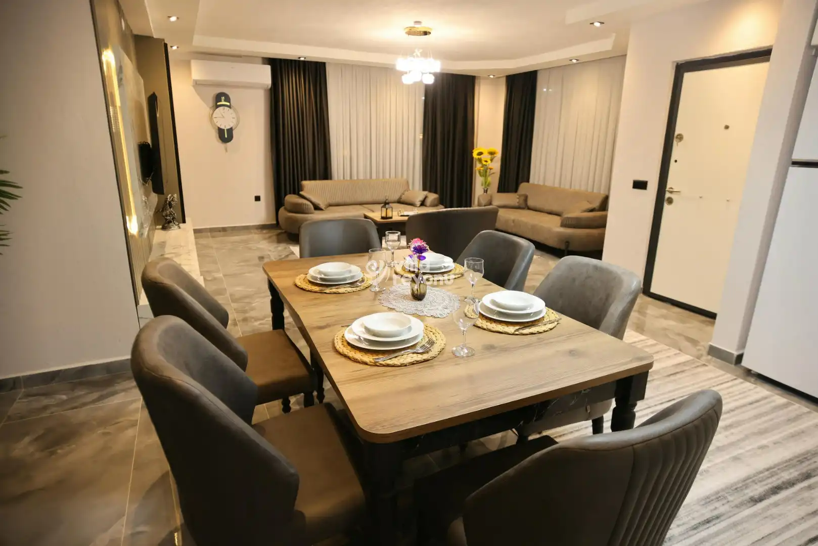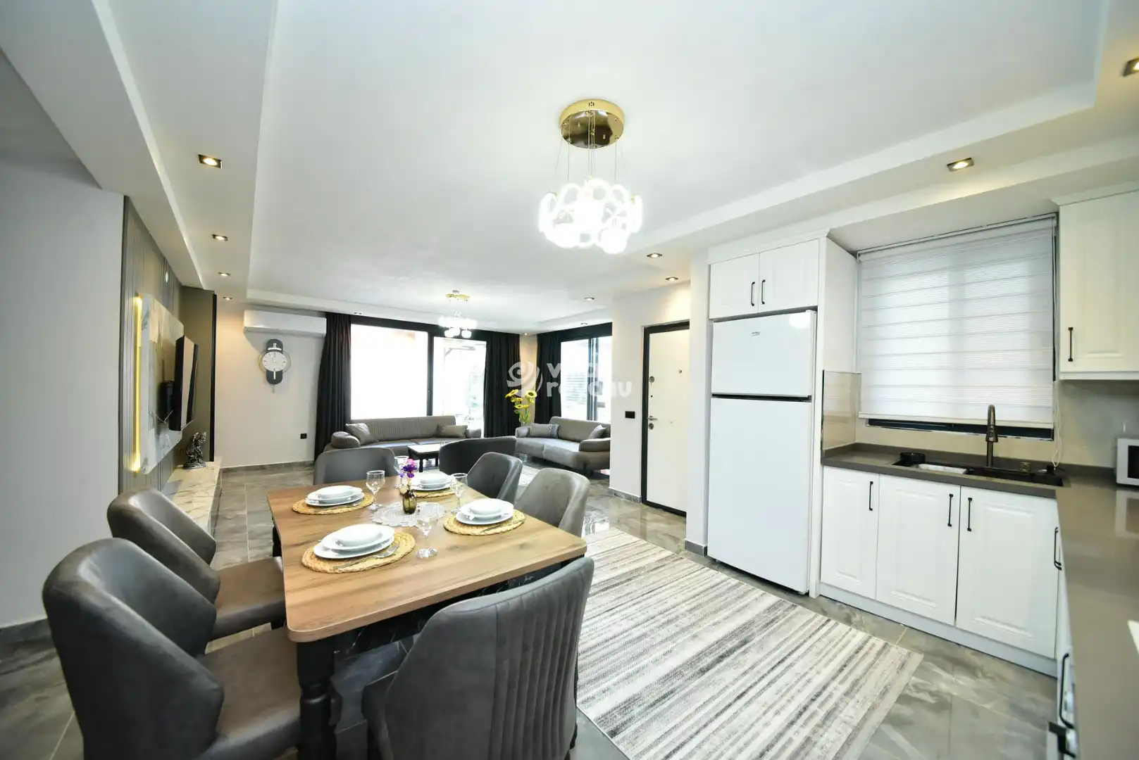 Bu evin resimleri sitemizde yer alan diğer evlerin resimleri gibi görüntüyü ekrana sığdırmak amacıyla, geniş açılı lens ve profesyonel fotoğraf makinaları ile çekilmektedir. Bu nedenle resimler üzerinde yer alan objeler gerçeğinden daha büyük olarak görülebilmektedir.