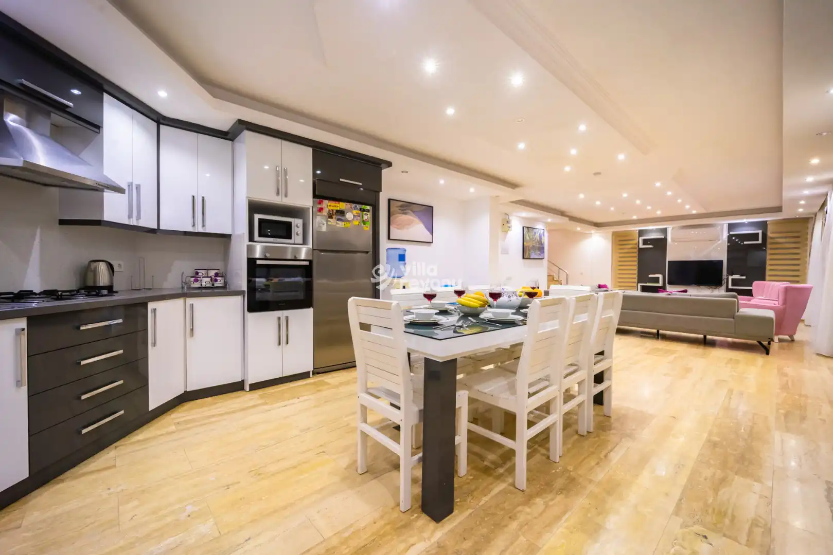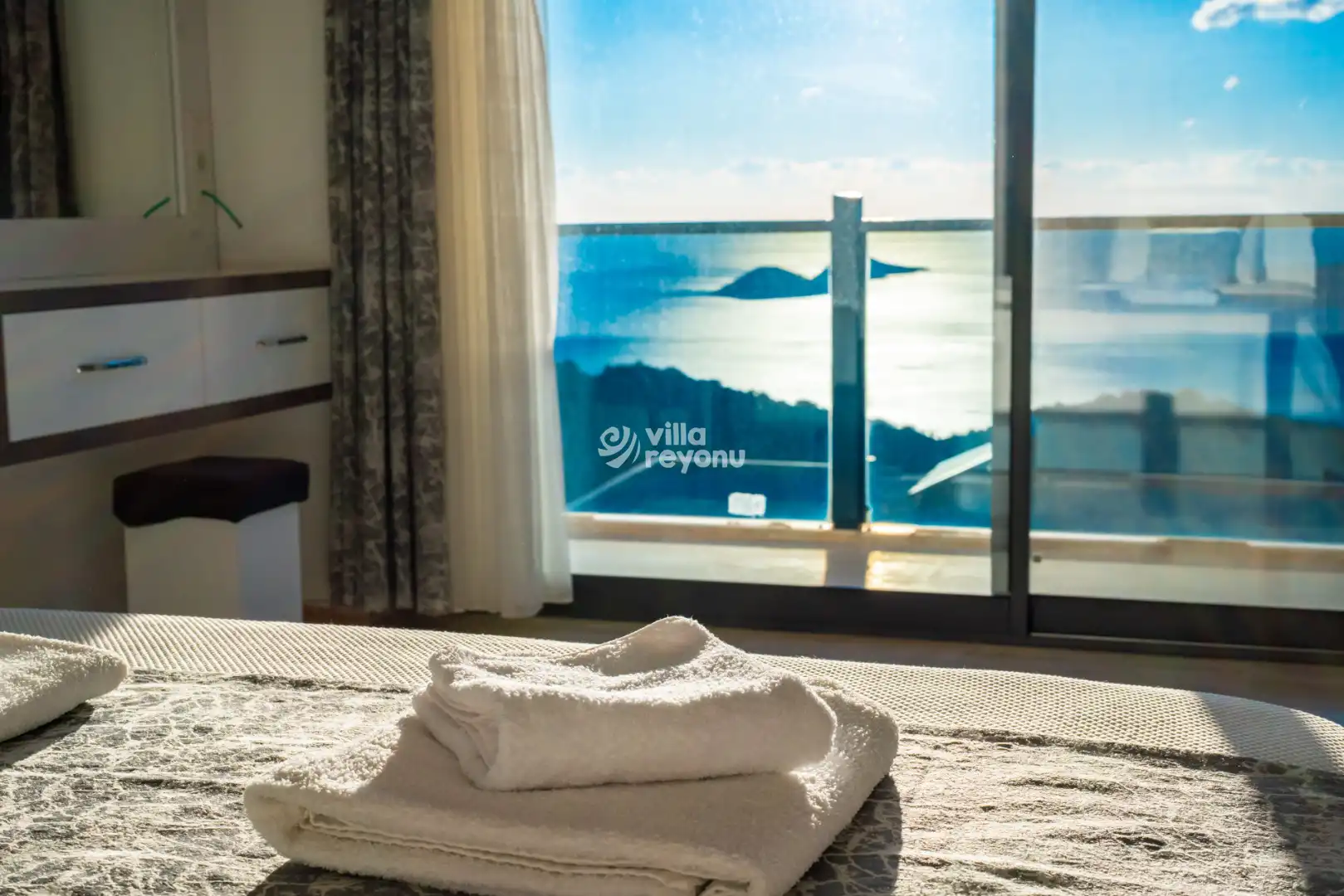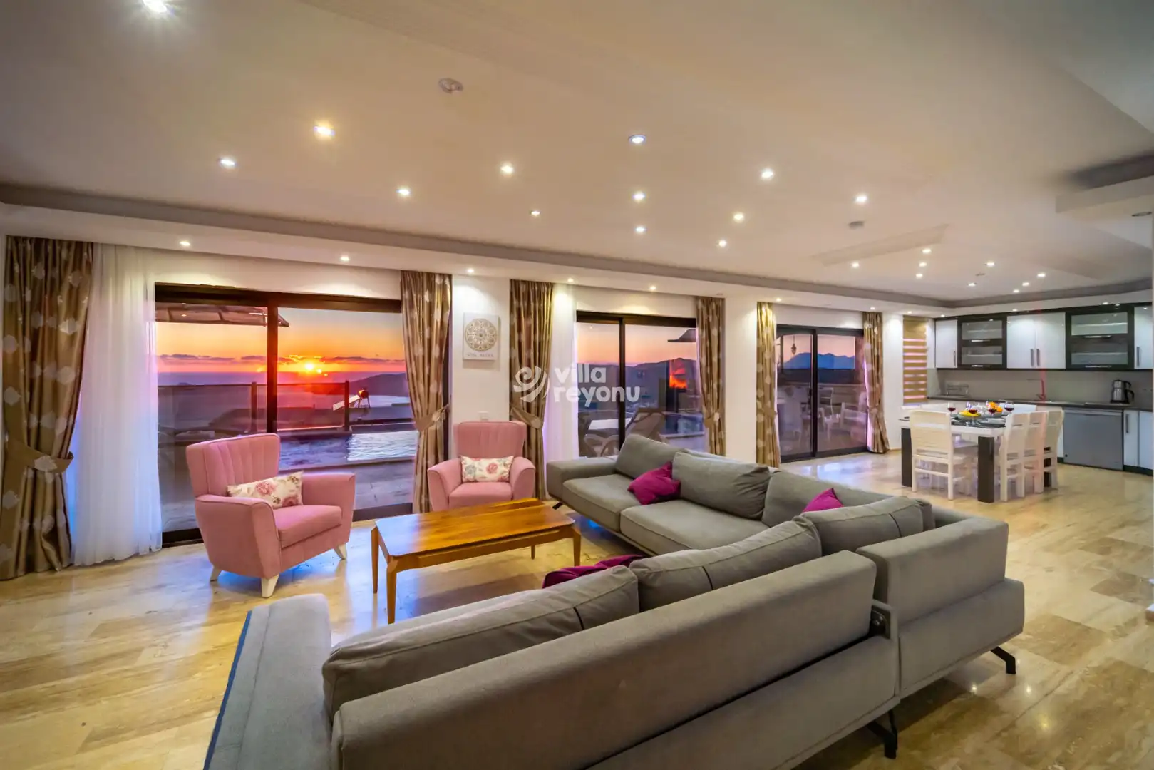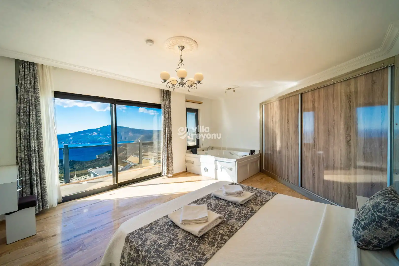 Geniş ve ferah Amerikan mutfak–salon alanı, konforlu bir konaklama için ihtiyaç duyulabilecek tüm donanımlarla eksiksiz şekilde hazırlanmıştır. Villanın tüm yatak odaları deniz manzarasına sahip olup, yatak odalarından birinde yer alan jakuzi, misafirlerin günün yorgunluğunu keyifle atabilmesi için özel olarak düşünülmüştür.