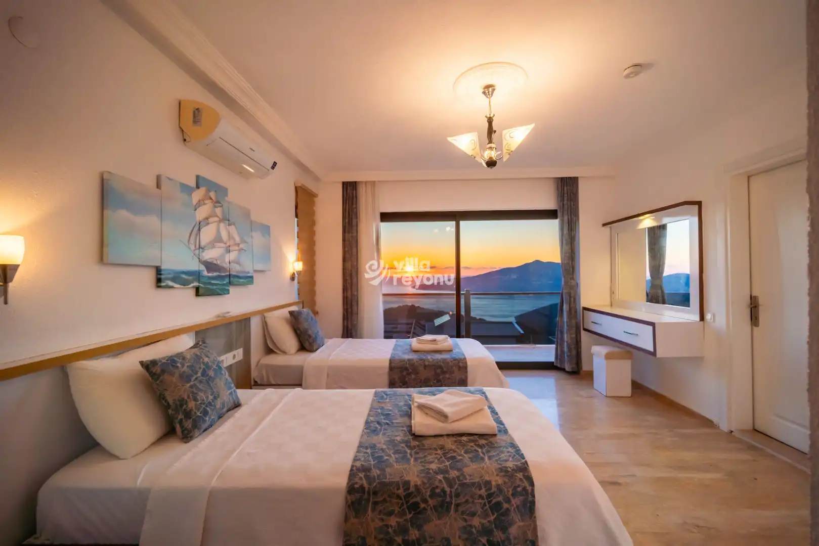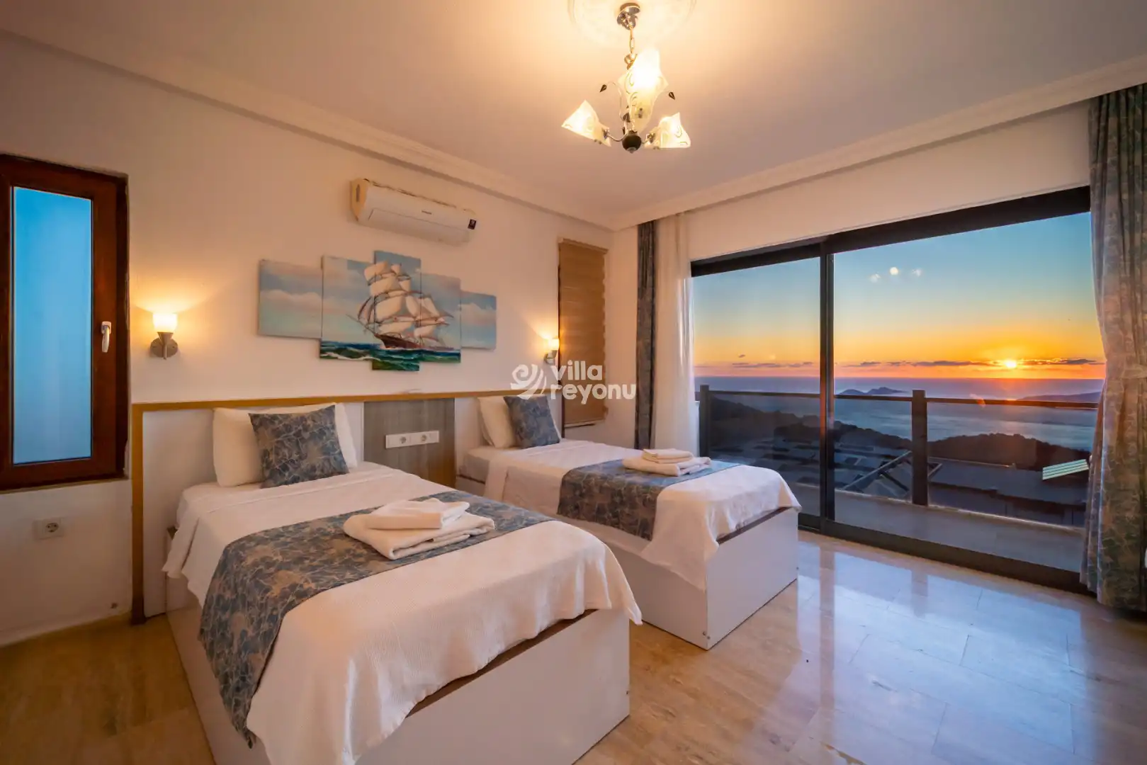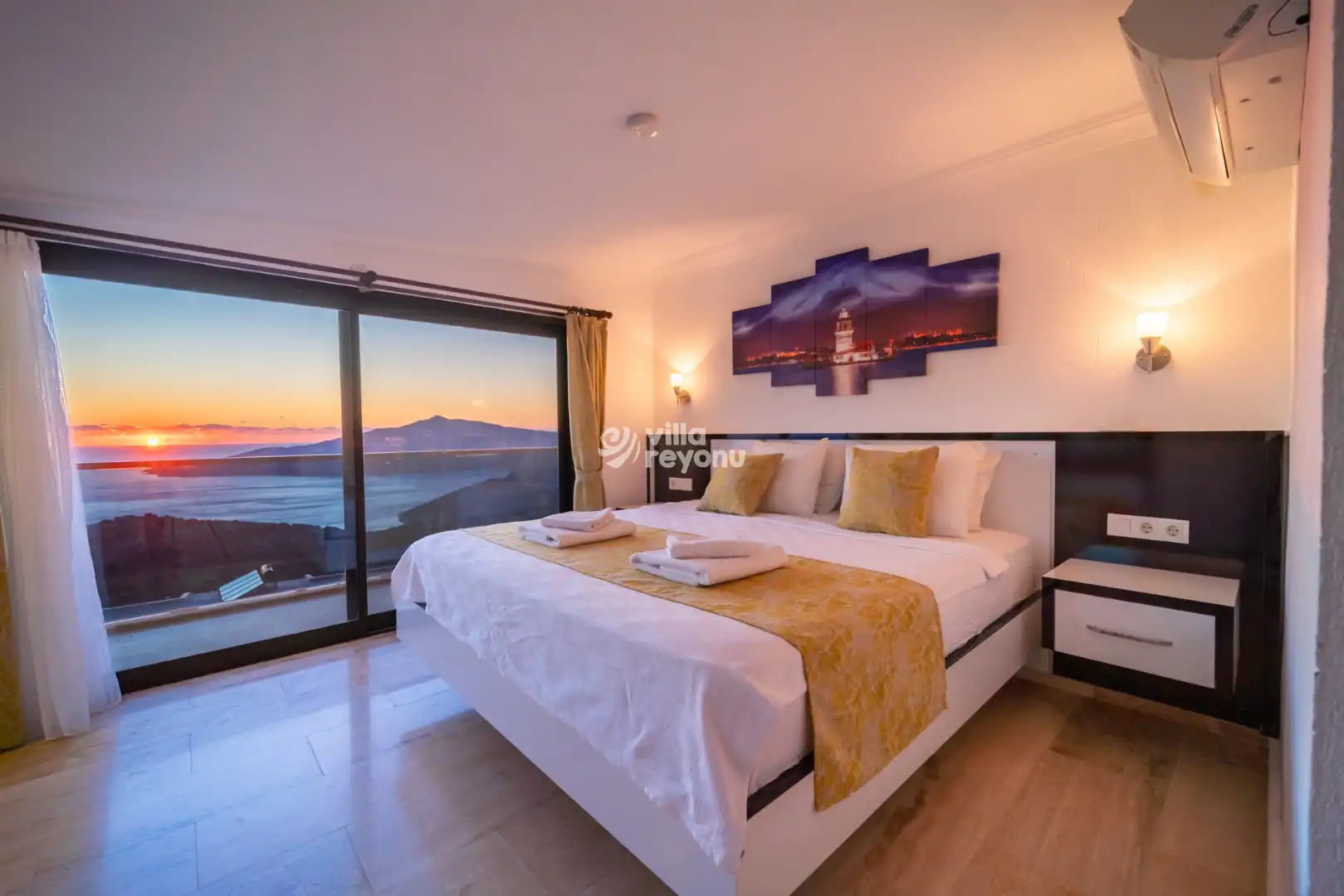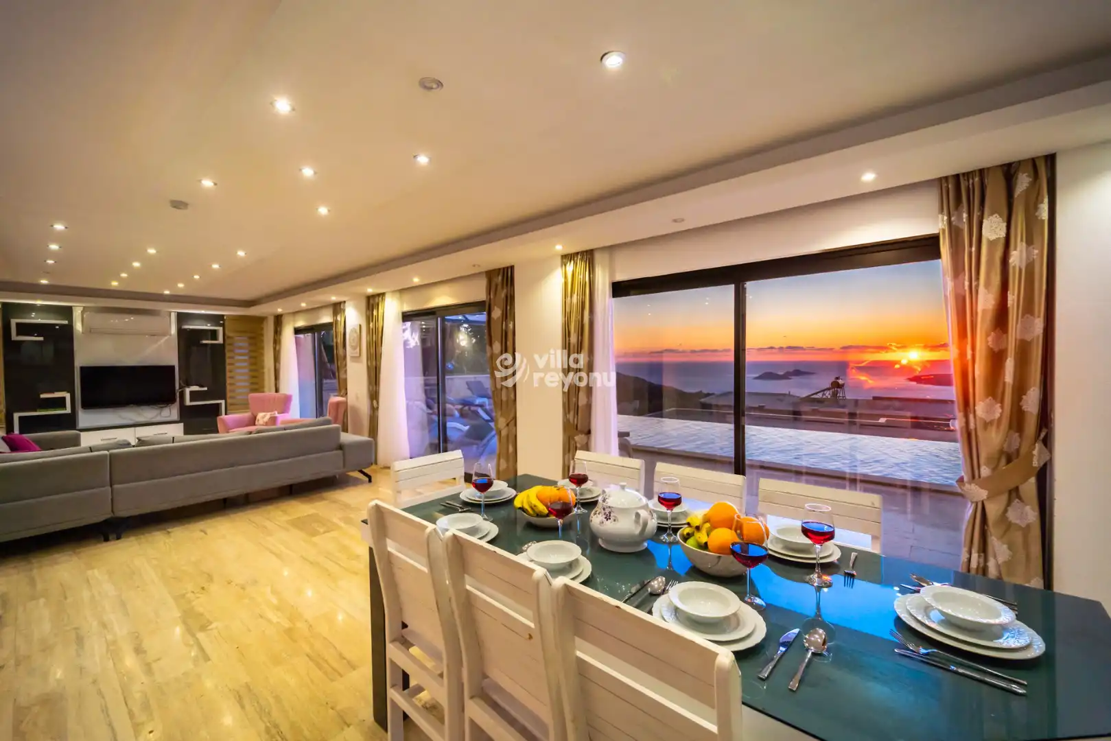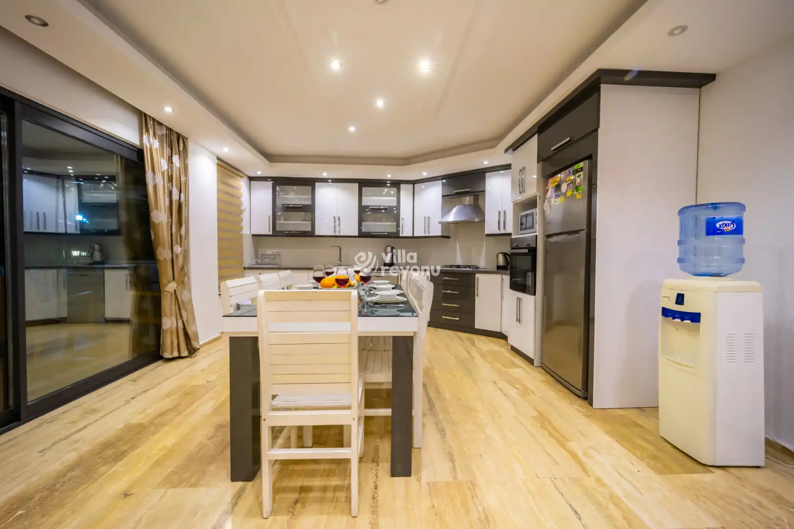 Geniş ve ferah Amerikan mutfak–salon alanı, konforlu bir konaklama için ihtiyaç duyulabilecek tüm donanımlarla eksiksiz şekilde hazırlanmıştır. Villanın tüm yatak odaları deniz manzarasına sahip olup, yatak odalarından birinde yer alan jakuzi, misafirlerin günün yorgunluğunu keyifle atabilmesi için özel olarak düşünülmüştür.