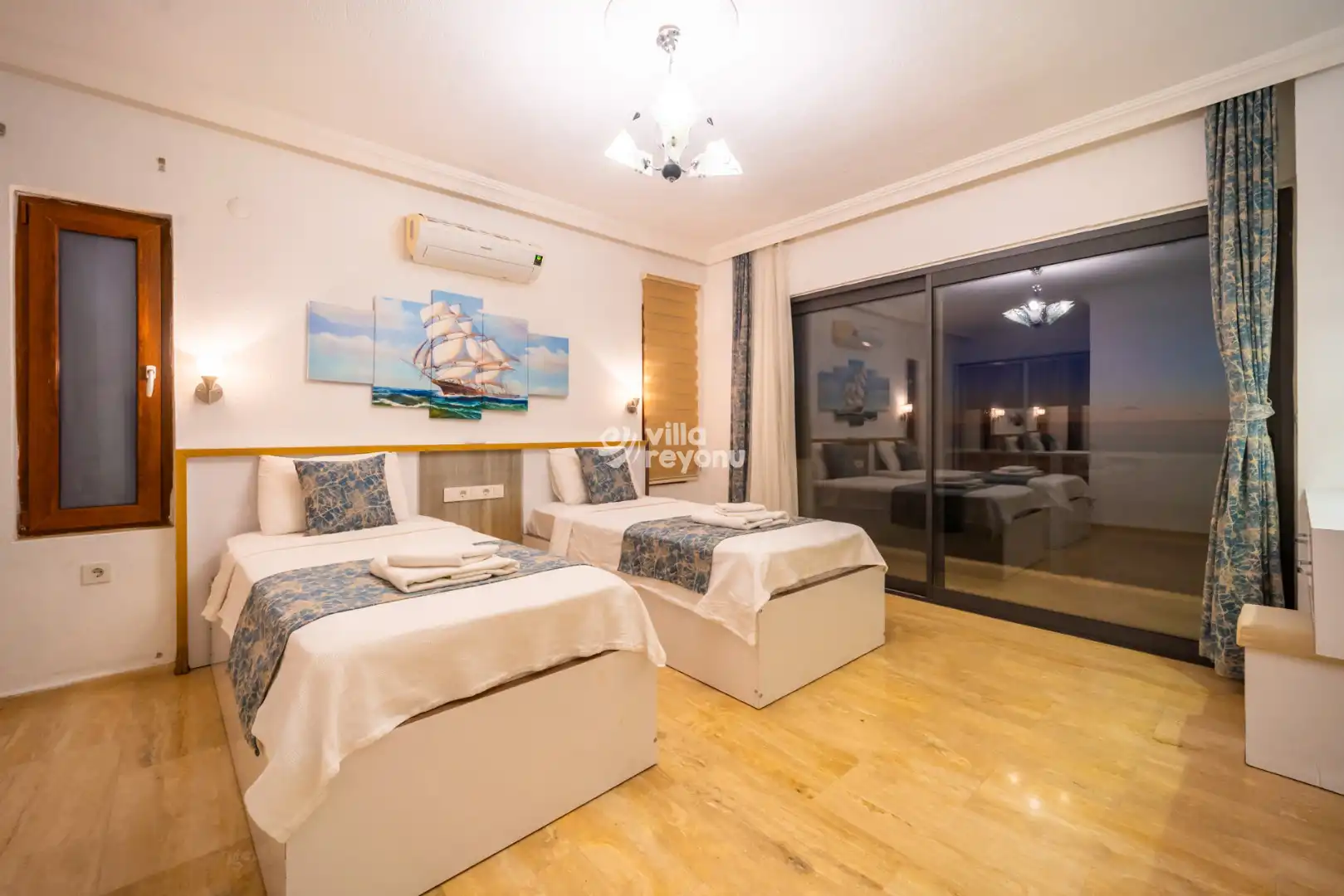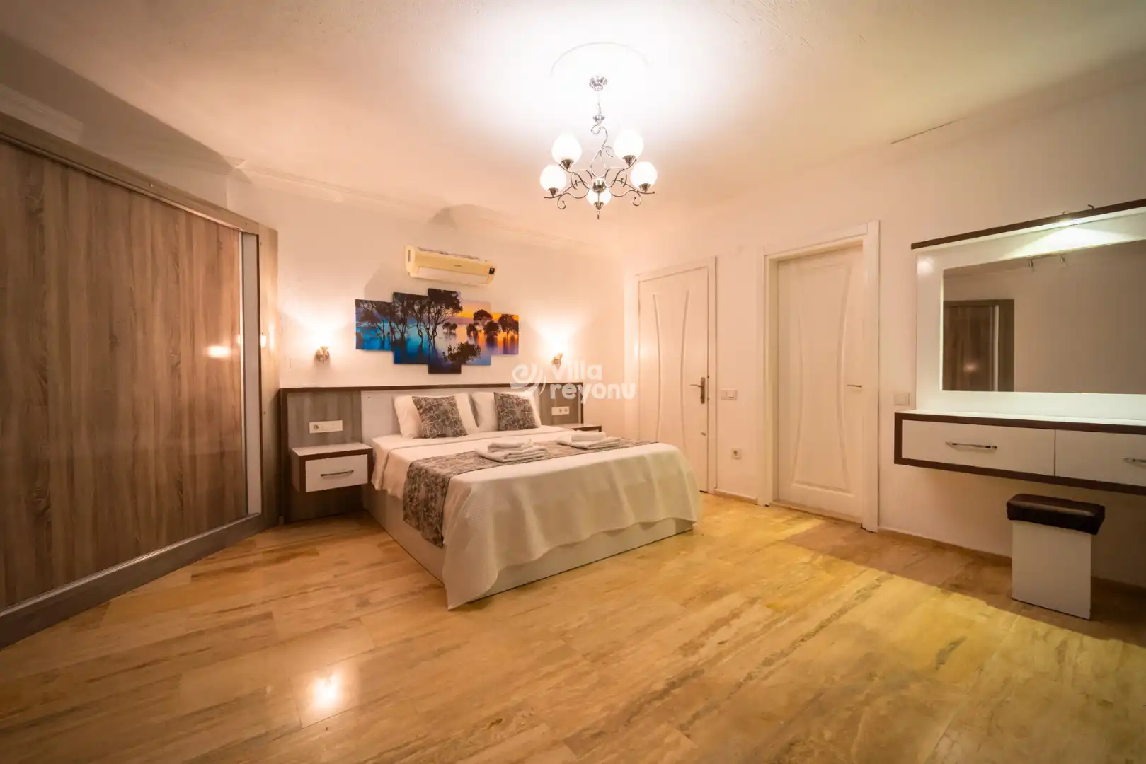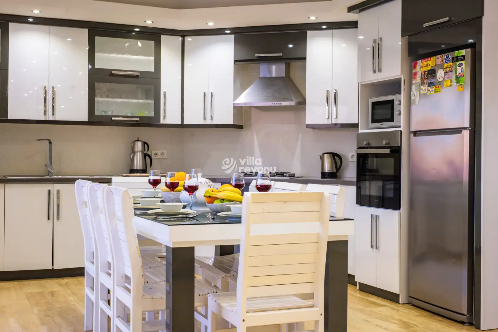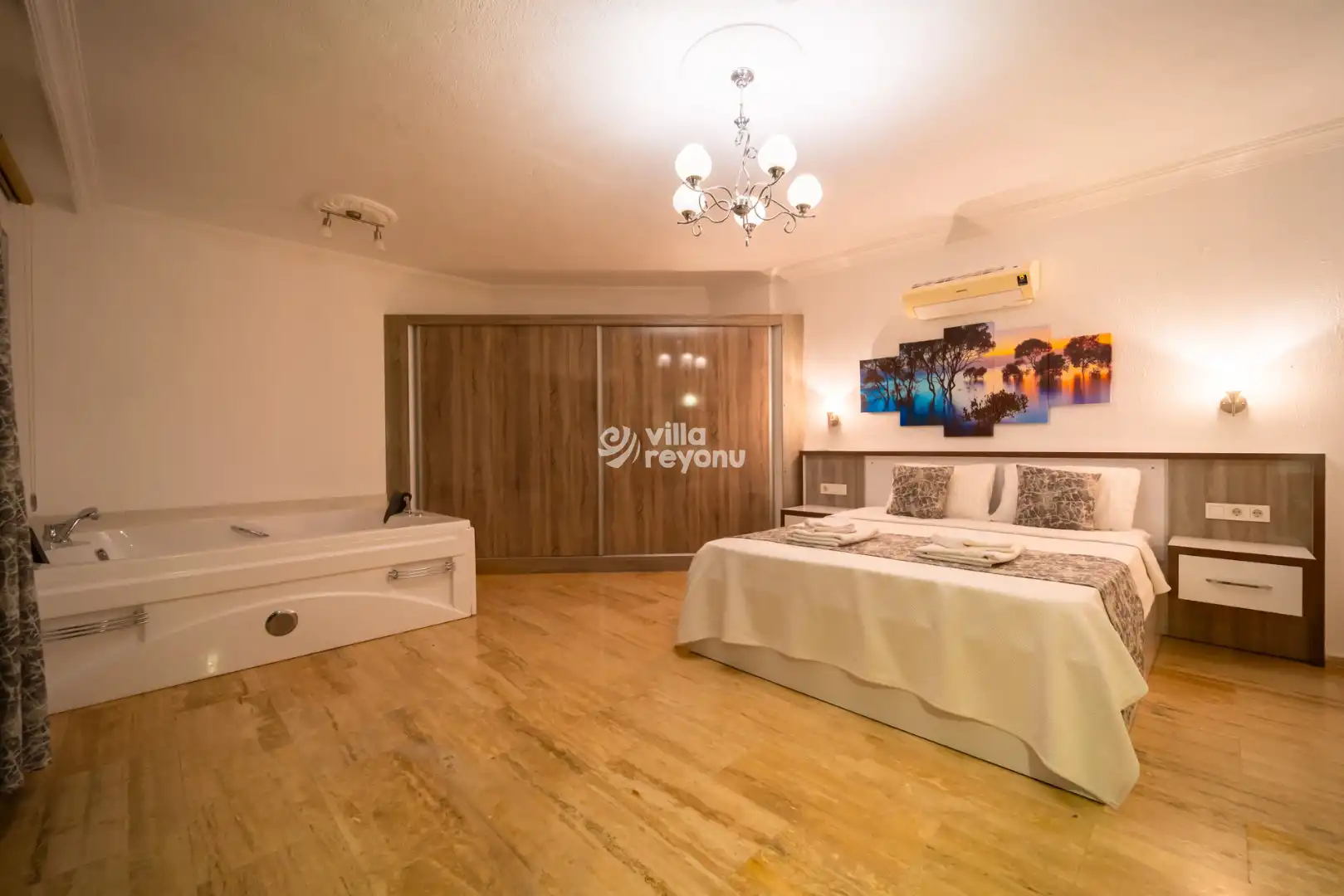 Geniş ve ferah Amerikan mutfak–salon alanı, konforlu bir konaklama için ihtiyaç duyulabilecek tüm donanımlarla eksiksiz şekilde hazırlanmıştır. Villanın tüm yatak odaları deniz manzarasına sahip olup, yatak odalarından birinde yer alan jakuzi, misafirlerin günün yorgunluğunu keyifle atabilmesi için özel olarak düşünülmüştür.