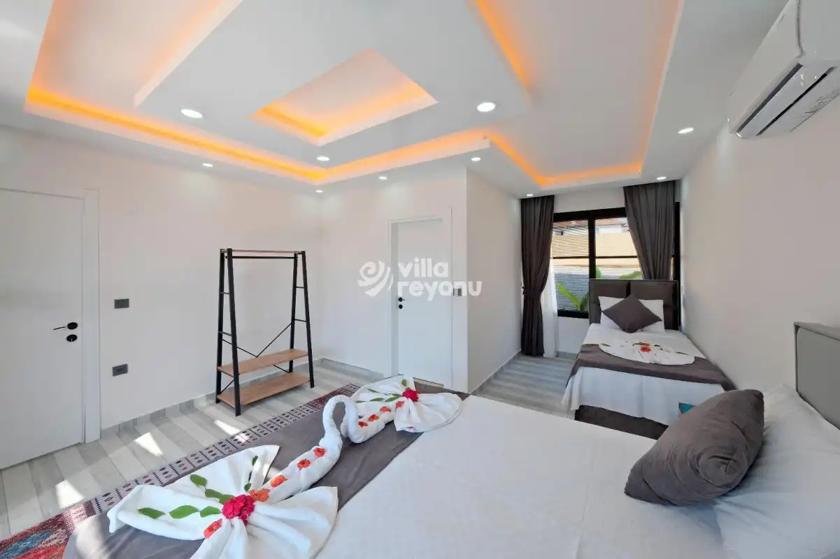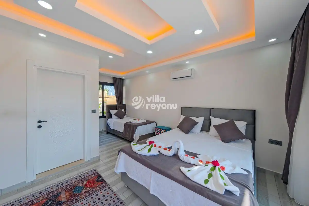 Fethiye tatiliniz boyunca ihtiyaç duyacağınız her detayı barındıran villamız, şehir gürültüsünden uzak konumu ve kolay ulaşım imkanı ile öne çıkmaktadır. Doğanın huzurunu ve modern konforu bir arada sunan bu özel villa, unutulmaz bir tatil deneyimi yaşamanız için en ideal seçeneklerden biridir.