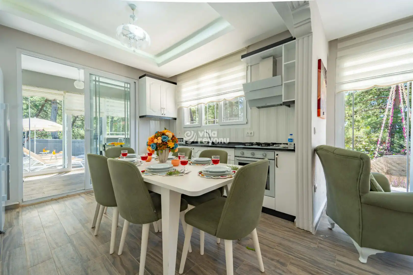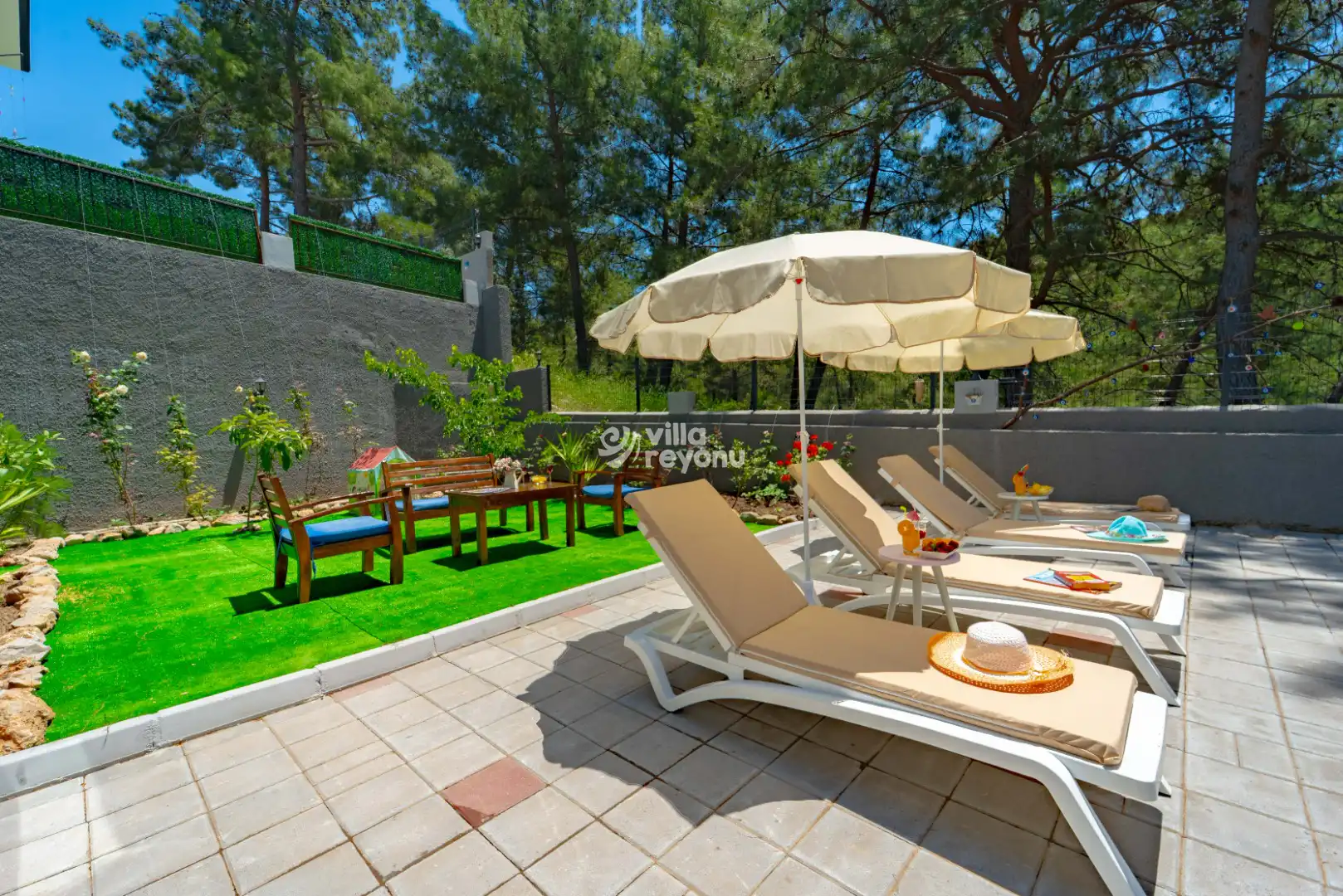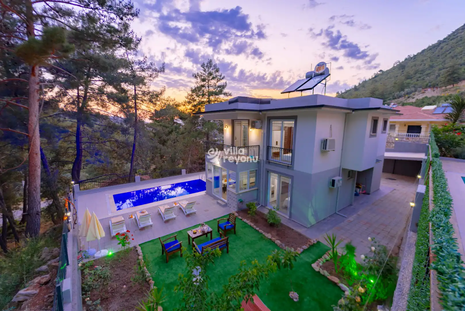 * Doğa içerisinde bulunan tüm villalarımızda düzenli olarak ilaçlama yapılmaktadır. Ancak yine de çevrede kelebek, böcek, sinek vb. bulunma ihtimali bulunmaktadır.
