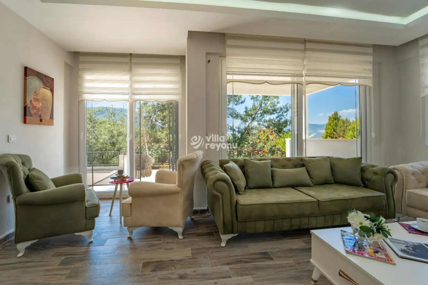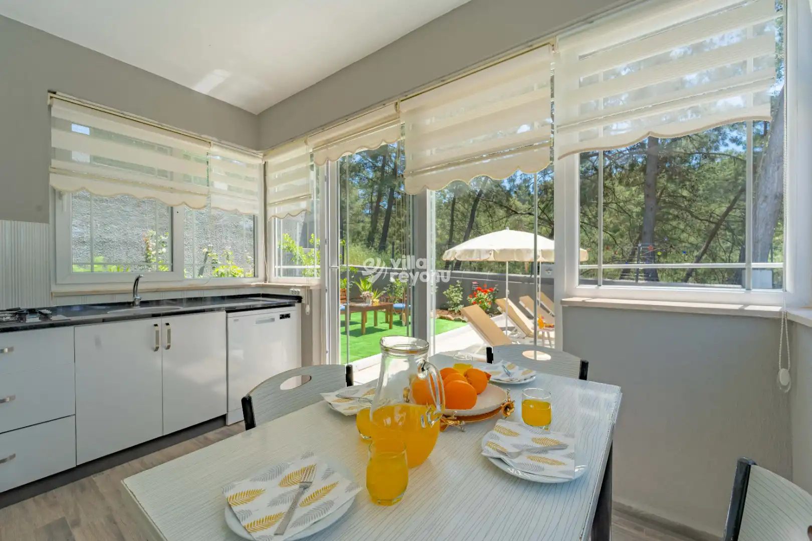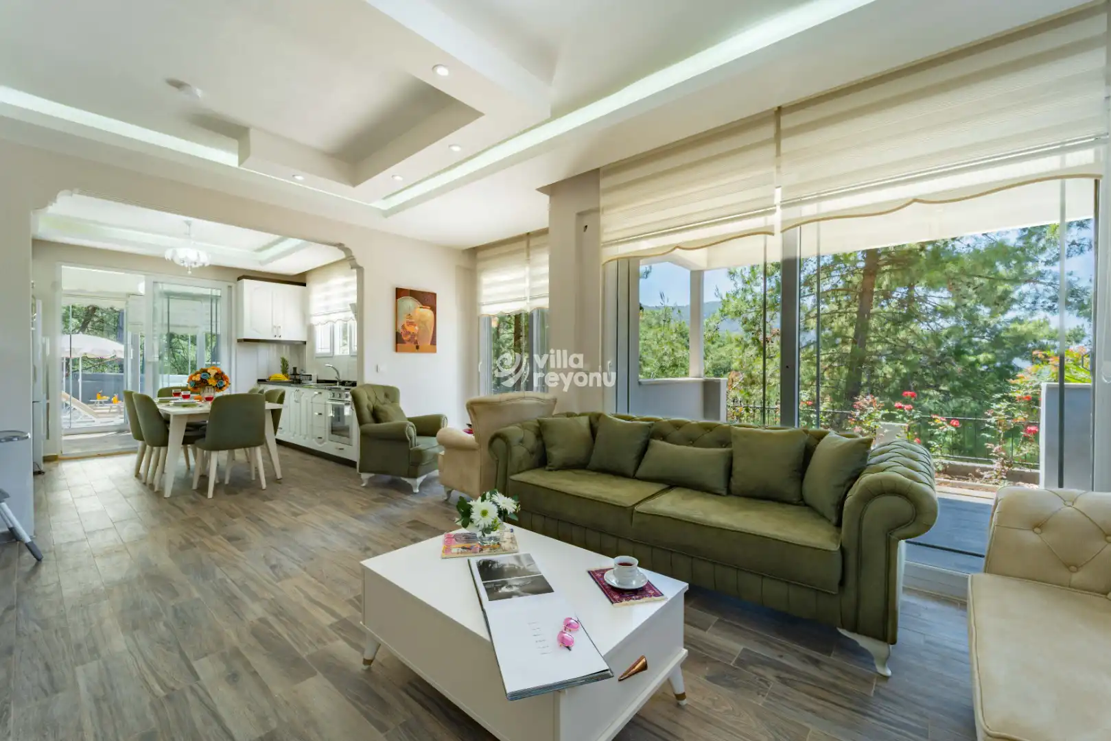 * Doğa içerisinde bulunan tüm villalarımızda düzenli olarak ilaçlama yapılmaktadır. Ancak yine de çevrede kelebek, böcek, sinek vb. bulunma ihtimali bulunmaktadır.
