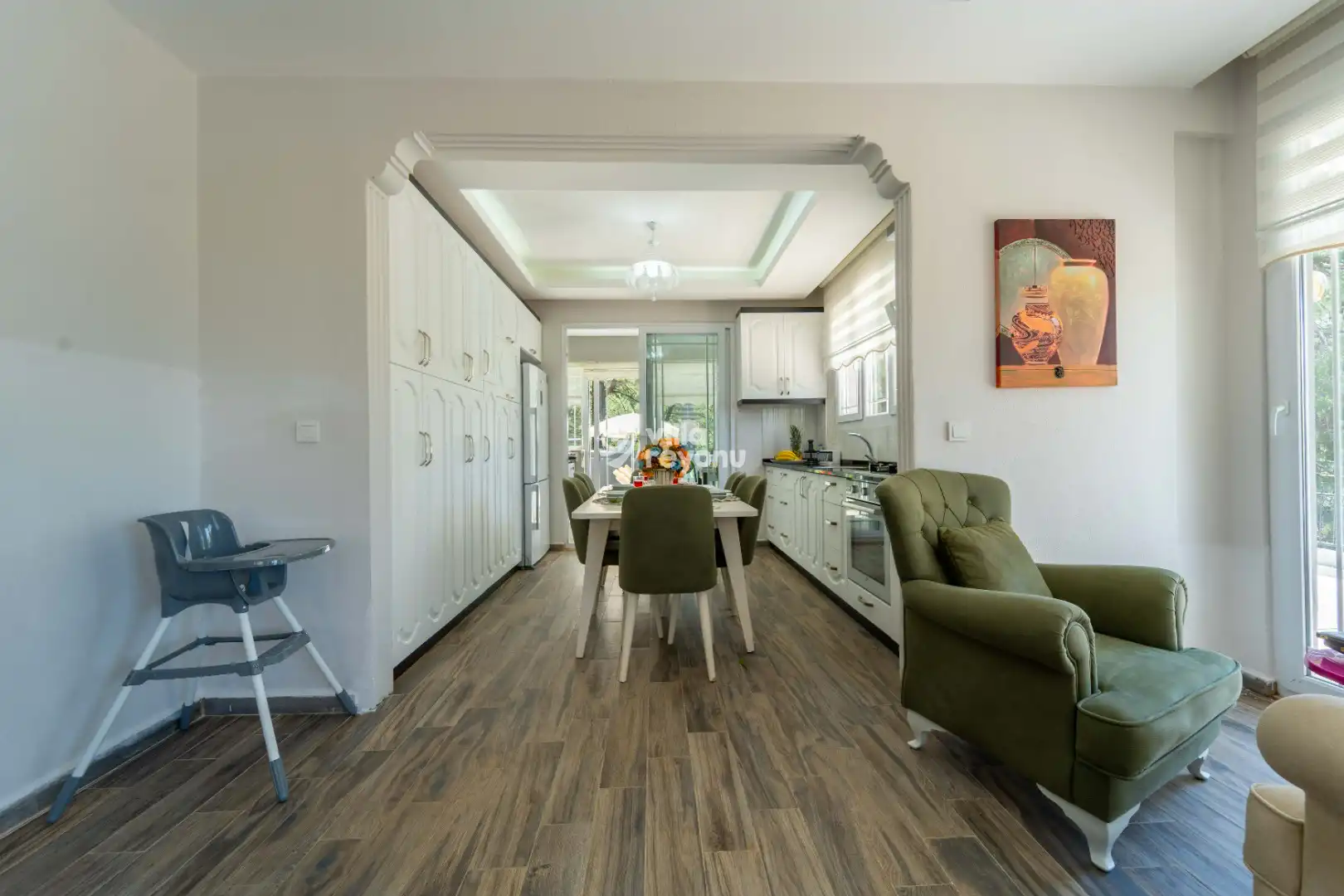 Bu evin resimleri sitemizde yer alan diğer evlerin resimleri gibi görüntüyü ekrana sığdırmak amacıyla, geniş açılı lens ve profesyonel fotoğraf makinaları ile çekilmektedir. Bu nedenle resimler üzerinde yer alan objeler gerçeğinden daha büyük olarak görülebilmektedir.