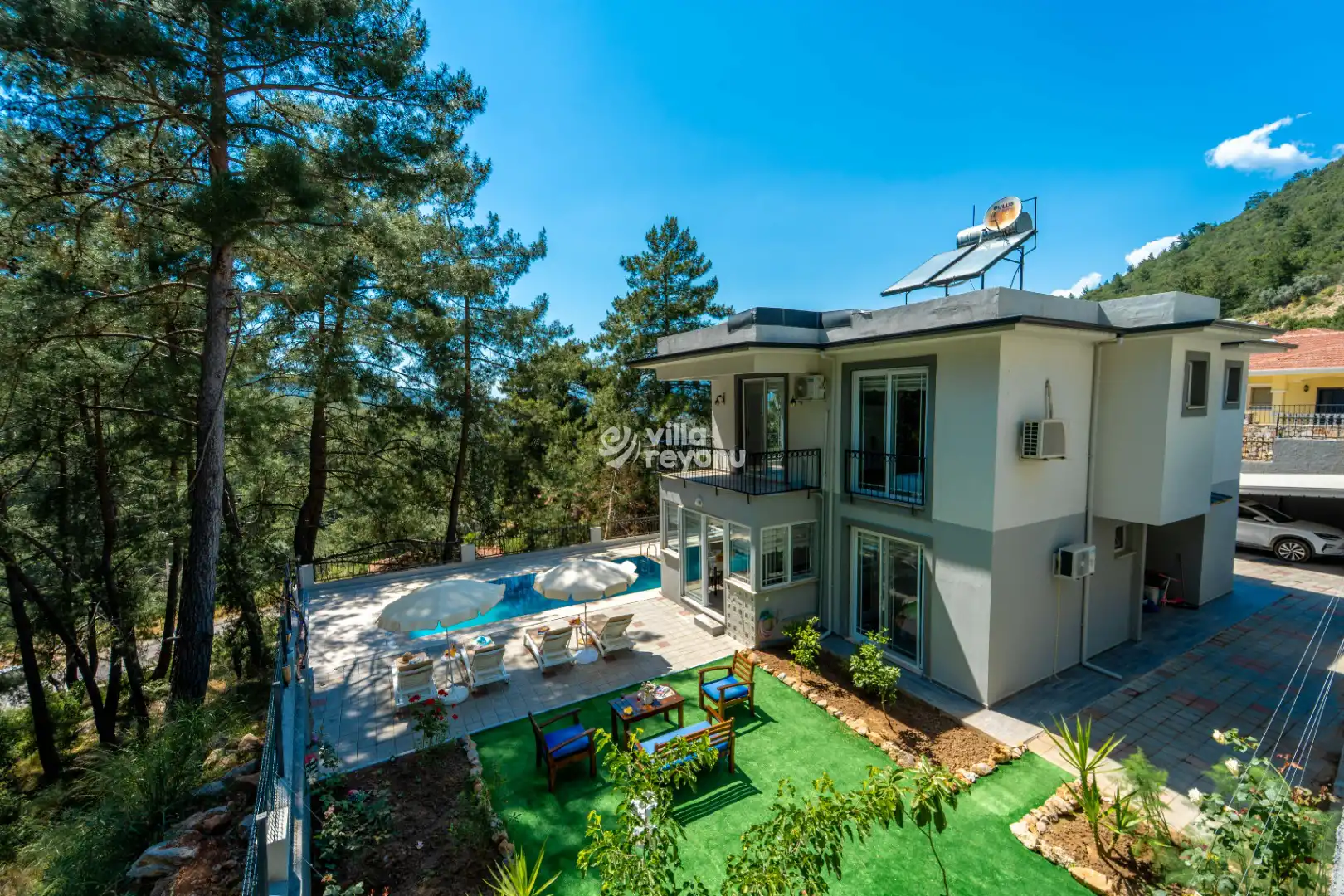 Fethiye Yeşilüzümlü mevkisinde, kalabalık aileler için ideal olan villamızda 4 yatak odası bulunmakta ve 8 kişilik konaklama imkânı sunmaktadır. Geniş bahçesiyle öne çıkan villamız, sevdiklerinizle huzurlu ve rahat vakit geçirmek isteyen aileler için özel olarak tercih edilmektedir. Konforunuz düşünülerek tasarlanan villamız, tatilin keyfini sonuna kadar çıkarmanız için tüm detaylar gözetilerek dizayn edilmiştir.