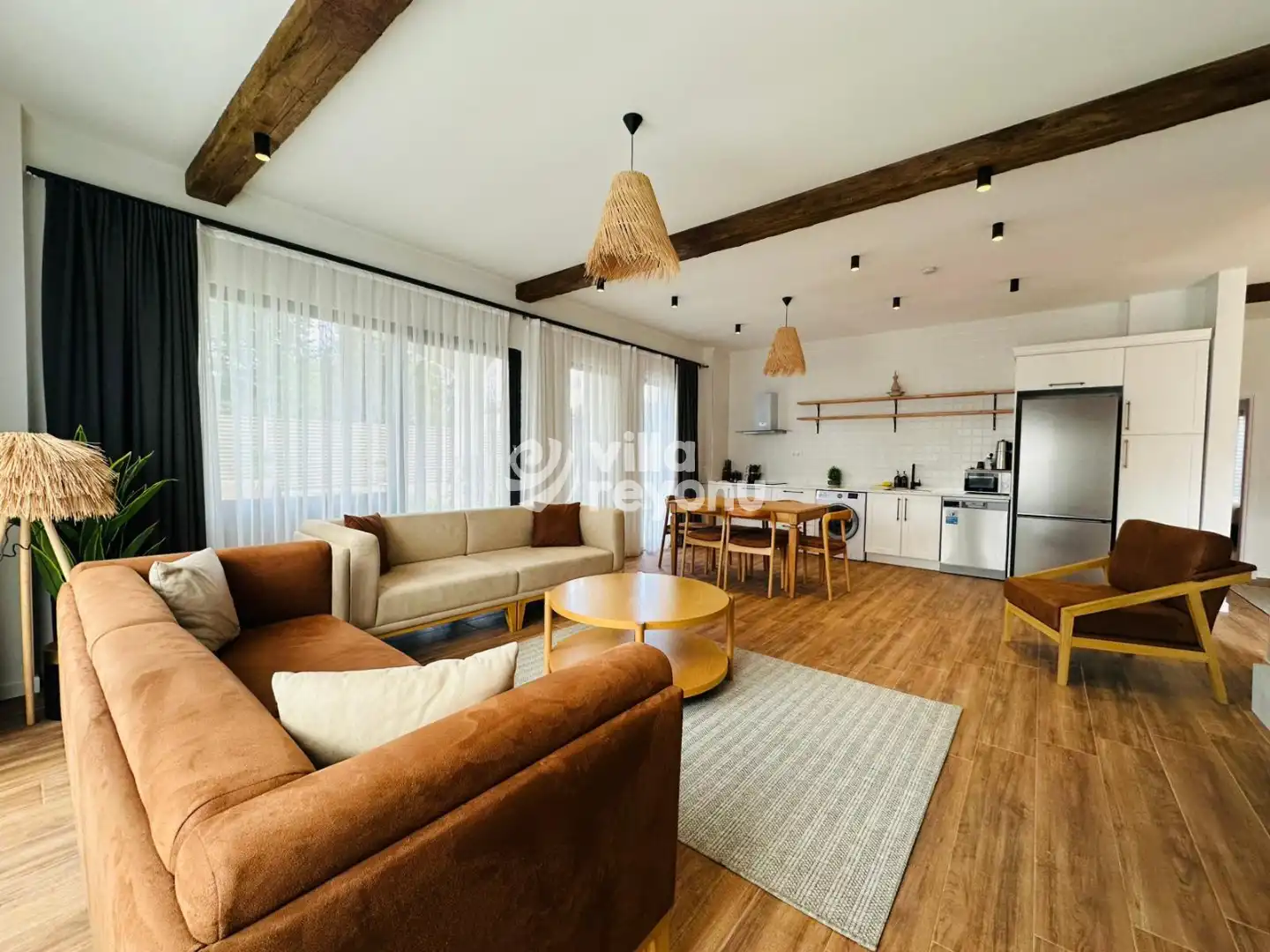 * Bu evin resimleri sitemizde yer alan diğer evlerin resimleri gibi görüntüyü ekrana sığdırmak amacıyla, geniş açılı lens ve profesyonel fotoğraf makinaları ile çekilmektedir. Bu nedenle resimler üzerinde yer alan objeler gerçeğinden daha büyük olarak görülebilmektedir.