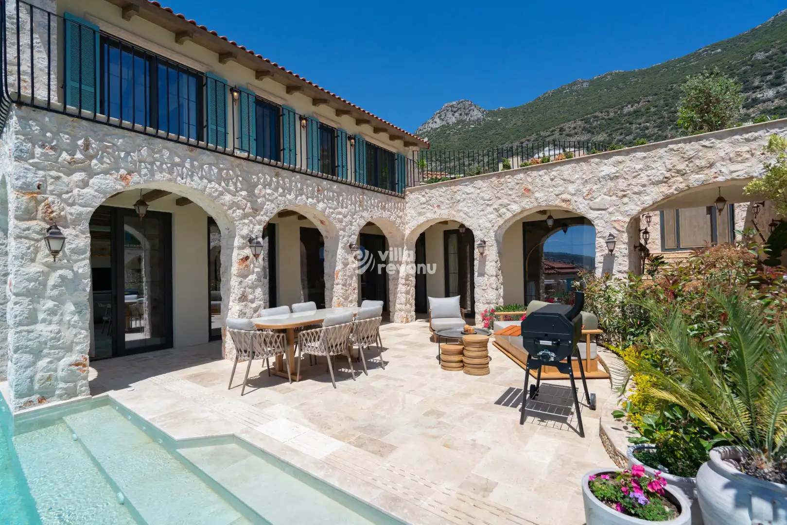 Likya mimarisinden ilham alınarak tasarlanmış, lüks bir konaklama seçeneği olan Villa Luxera 5 hoş geldiniz. Kalkan merkezine yakın konumlanan bu eşsiz villa, doğanın huzurunu dağların zirvesinden, denizin ferahlığını ise maviliklerinden sunuyor. Her detayında zarafet ve konforu harmanlayan Villa Luxera 5, misafirlerine unutulmaz bir tatil deneyimi vaat ediyor. Geniş ve ferah odaları, modern tasarımlı mobilyaları ve zarif dekorasyonuyla, her anı şıklık içinde geçireceğiniz bir ortam sunar. Villa Luxera 5, Likya Antik Kentlerinden ilham alınarak inşa edilmiştir. Taş kaplama duvarları, sütunları ve kemerleriyle tarihi bir atmosfer yaratırken, etkileyici havuzları ve sofistike detaylarıyla da göz kamaştırır. Antik Likya dönemini hissettiren bu benzersiz villa, her köşesinde geçmişin izlerini barındırarak, sizi tarihin derinliklerine götürür. Ziyaretiniz boyunca, bu tarihi dokuyla iç içe geçecek ve Likya'nın büyülü kıyılarında, zamansız bir tatilin keyfini çıkaracaksınız.