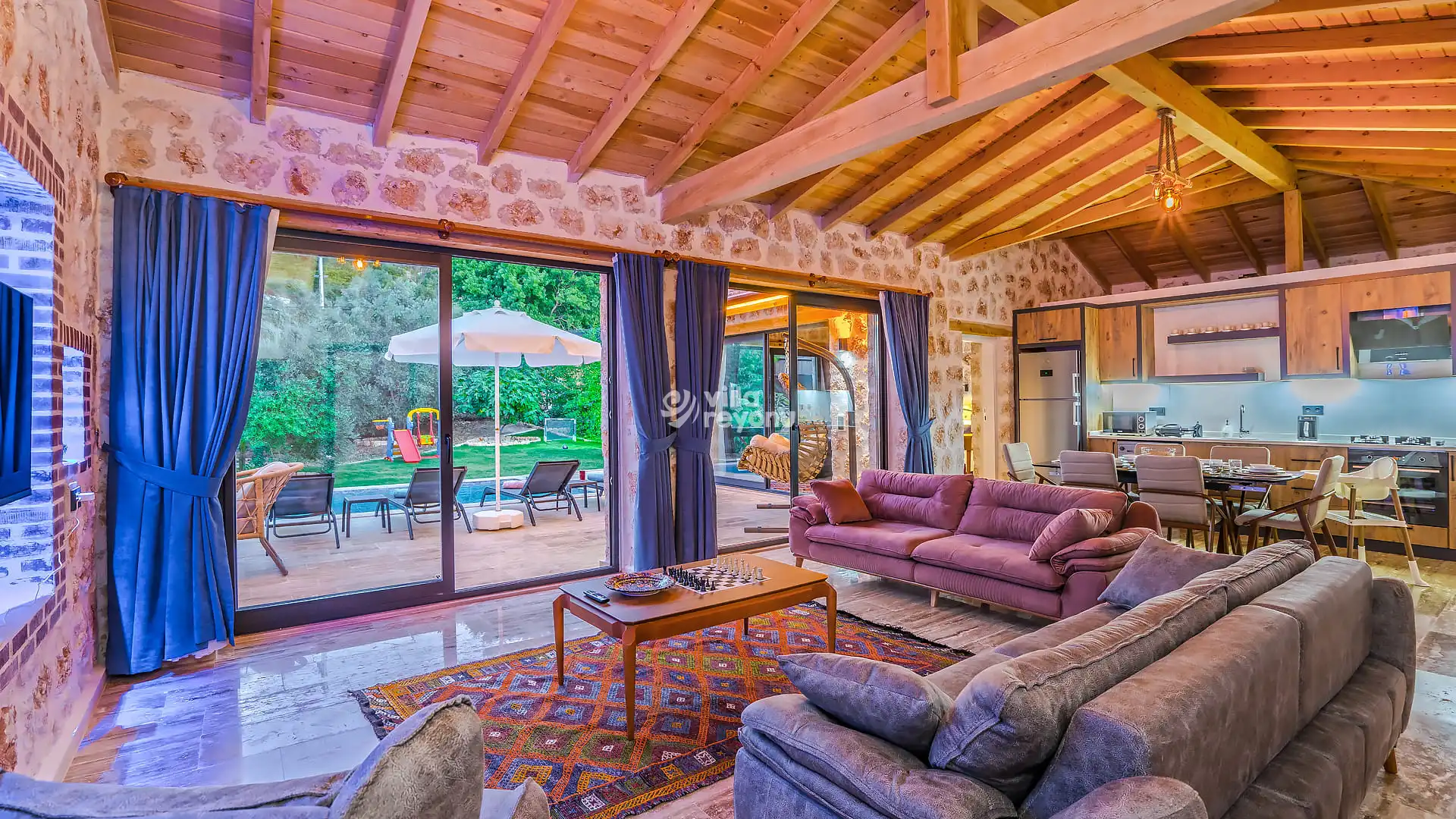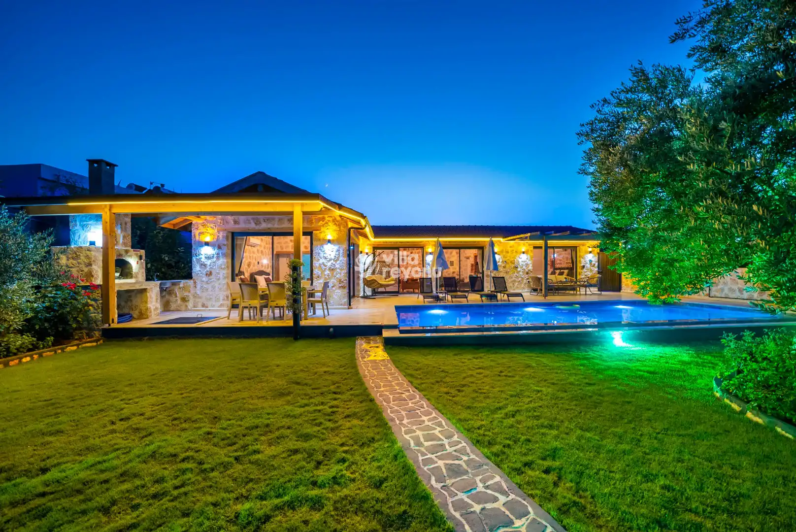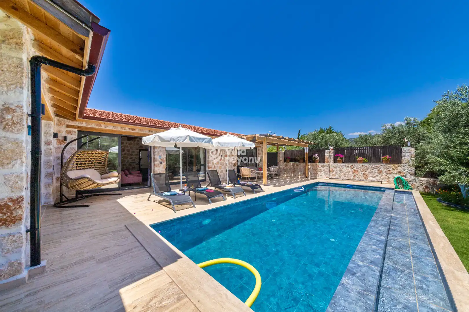 * Doğa içerisinde bulunan tüm villalarımızda düzenli olarak ilaçlama yapılmaktadır. Ancak yine de çevrede kelebek, böcek, sinek vb. bulunma ihtimali bulunmaktadır.