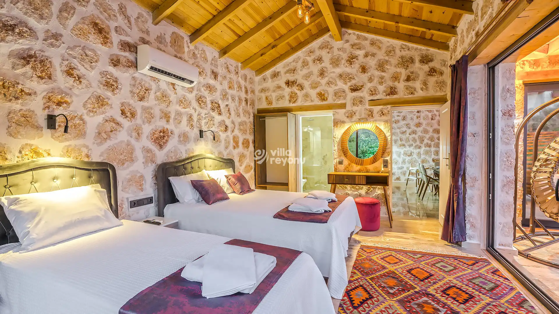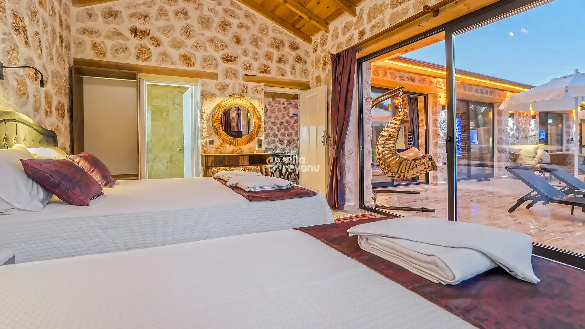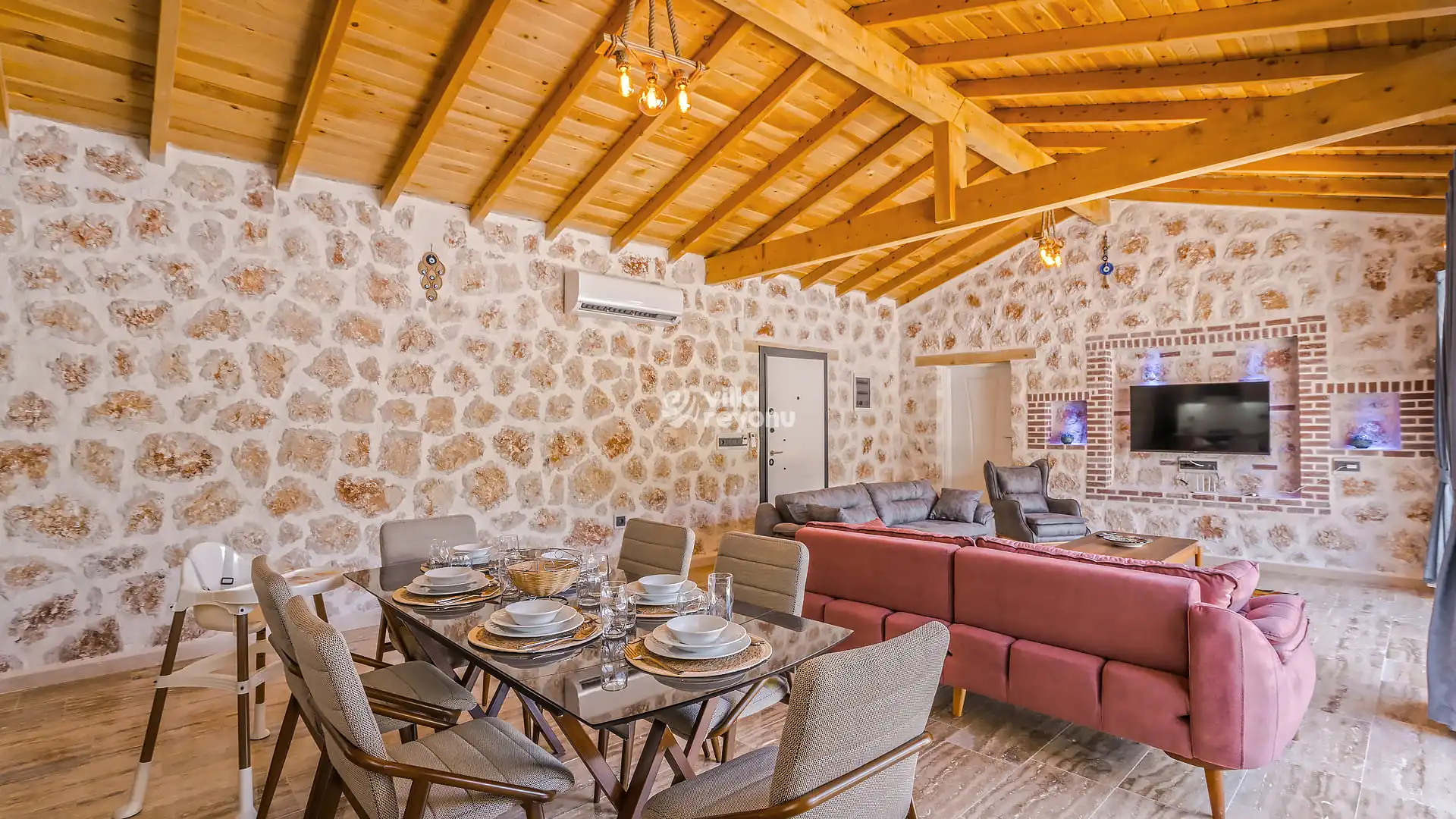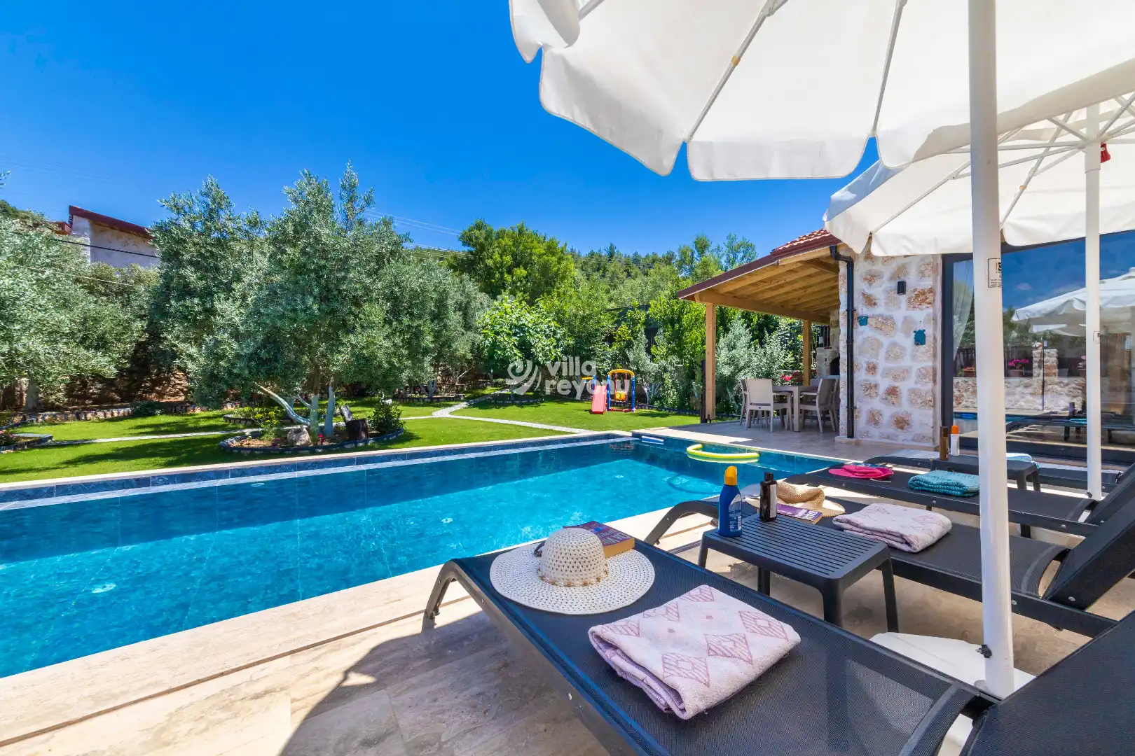 * Doğa içerisinde bulunan tüm villalarımızda düzenli olarak ilaçlama yapılmaktadır. Ancak yine de çevrede kelebek, böcek, sinek vb. bulunma ihtimali bulunmaktadır.