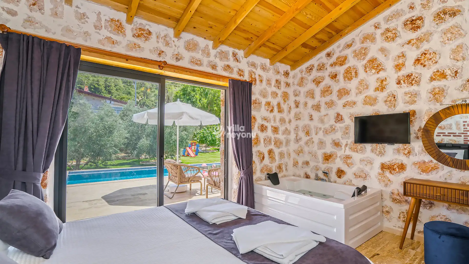 Villamızın özel yatak odasında bulunan jakuzi, konuklarımıza ekstra bir rahatlama imkanı sağlarken, doğanın kucağında huzurlu bir tatil geçirmek isteyen misafirlerimizin tercihleri arasında yer alıyor. Doğayla iç içe olan Villa Madison, keyifli anlar ve unutulmaz anılar biriktirmek isteyen misafirlerimiz için mükemmel bir seçenek sunuyor.