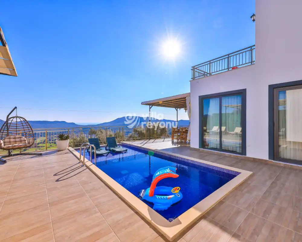 2 yatak odası , 3 banyo tuvalet bulunan villamız 4 kişilik konaklama imkanı sunmaktadır. 13 m2  havuz, geniş bahçe alanı, bahçe oturma takımı, yemek masası, şezlong ve barbekü bulunmaktadır. Kusursuz doğa manzarasıyla, dünyada nadir bulunan bir günbatımı manzarasının tadına her akşam varabileceğiniz modern konseptli villamız, misafirlerine unutulmaz bir tatil deneyimi yaşatmak için tasarlandı.