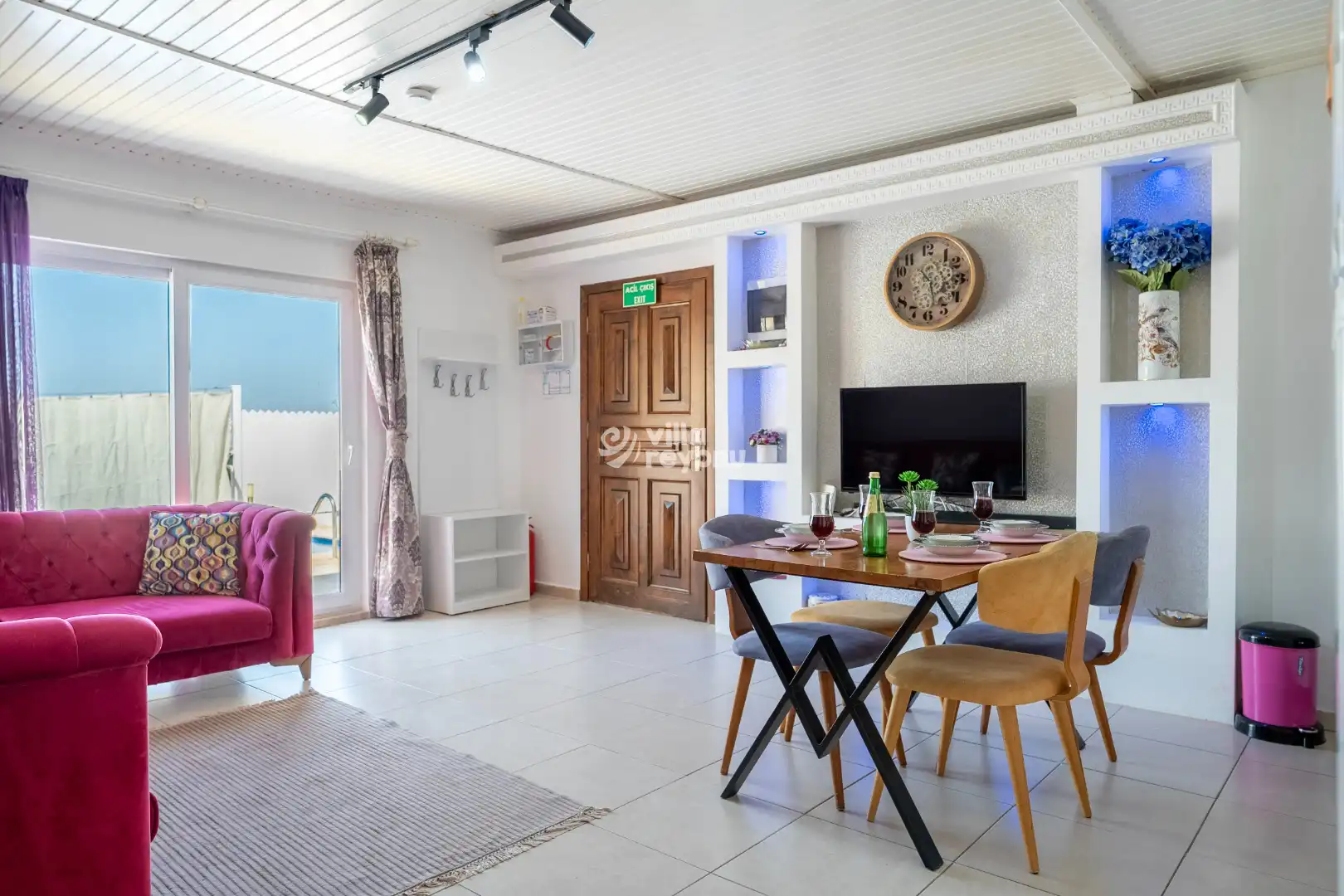* Doğa içerisinde bulunan tüm villalarımızda düzenli olarak ilaçlama yapılmaktadır. Ancak yine de çevrede kelebek, böcek, sinek vb. bulunma ihtimali bulunmaktadır.