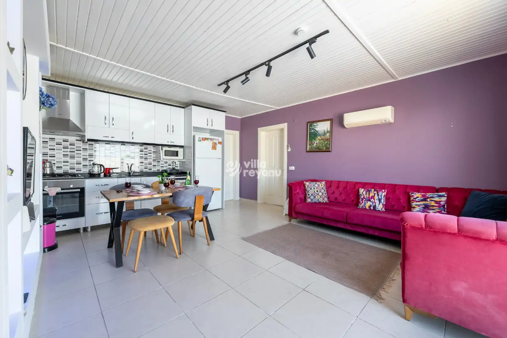 * Bu evin resimleri sitemizde yer alan diğer evlerin resimleri gibi görüntüyü ekrana sığdırmak amacıyla, geniş açılı lens ve profesyonel fotoğraf makinaları ile çekilmektedir. Bu nedenle resimler üzerinde yer alan objeler gerçeğinden daha büyük olarak görülebilmektedir.