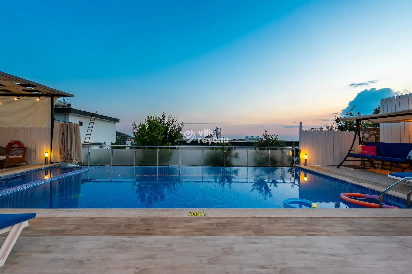 Not: Havuz ısıtma hizmeti talep edilmesi durumunda, günlük 1.500 TL ek ücret karşılığında sunulmaktadır. Hizmet bedeli, konaklama süresindeki toplam gün sayısı üzerinden hesaplanmaktadır.Havuz ısıtması talep eden misafirlerin, villaya girişlerinden en az 3 gün önce iletişim kişisiyle irtibata geçmeleri gerekmektedir.