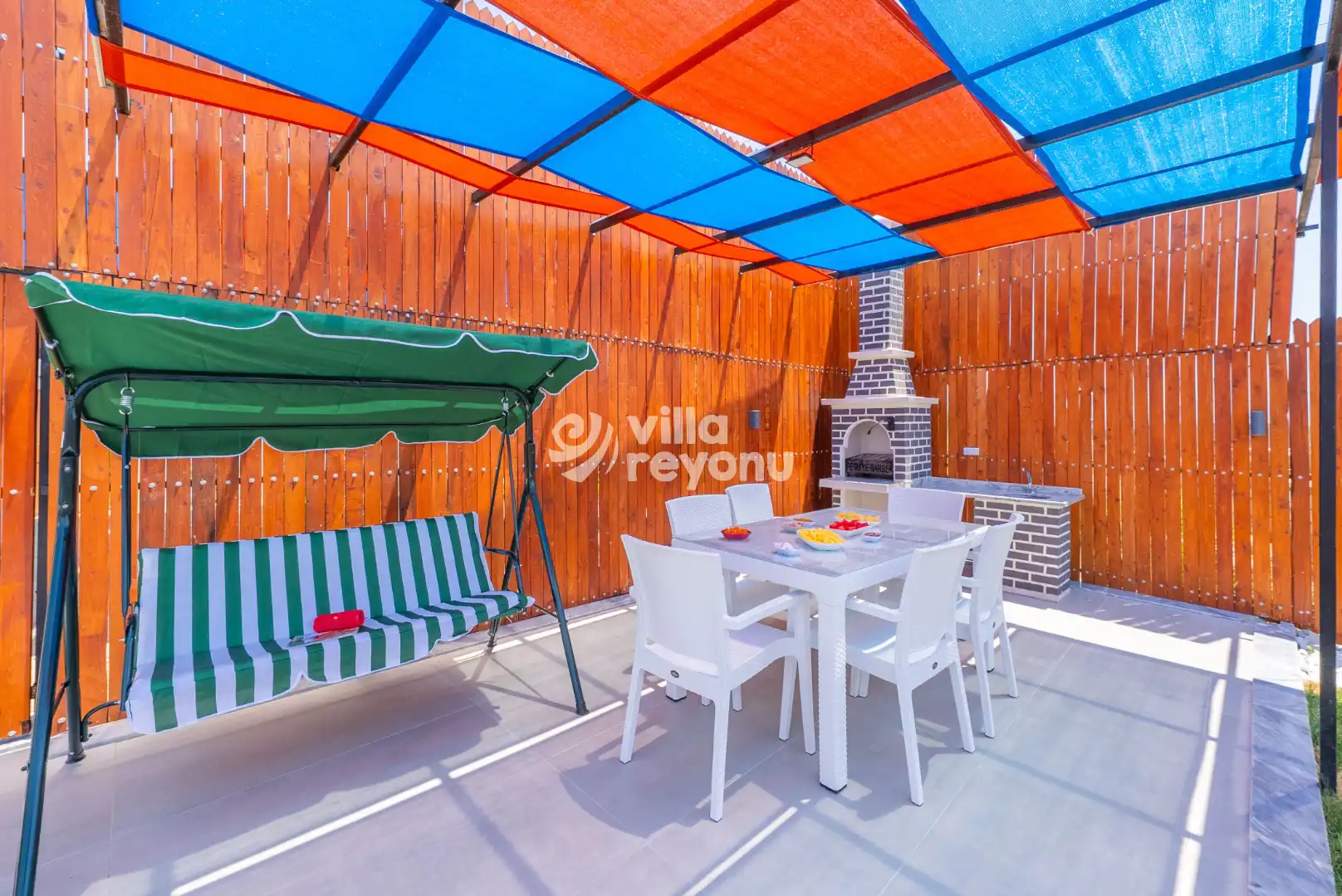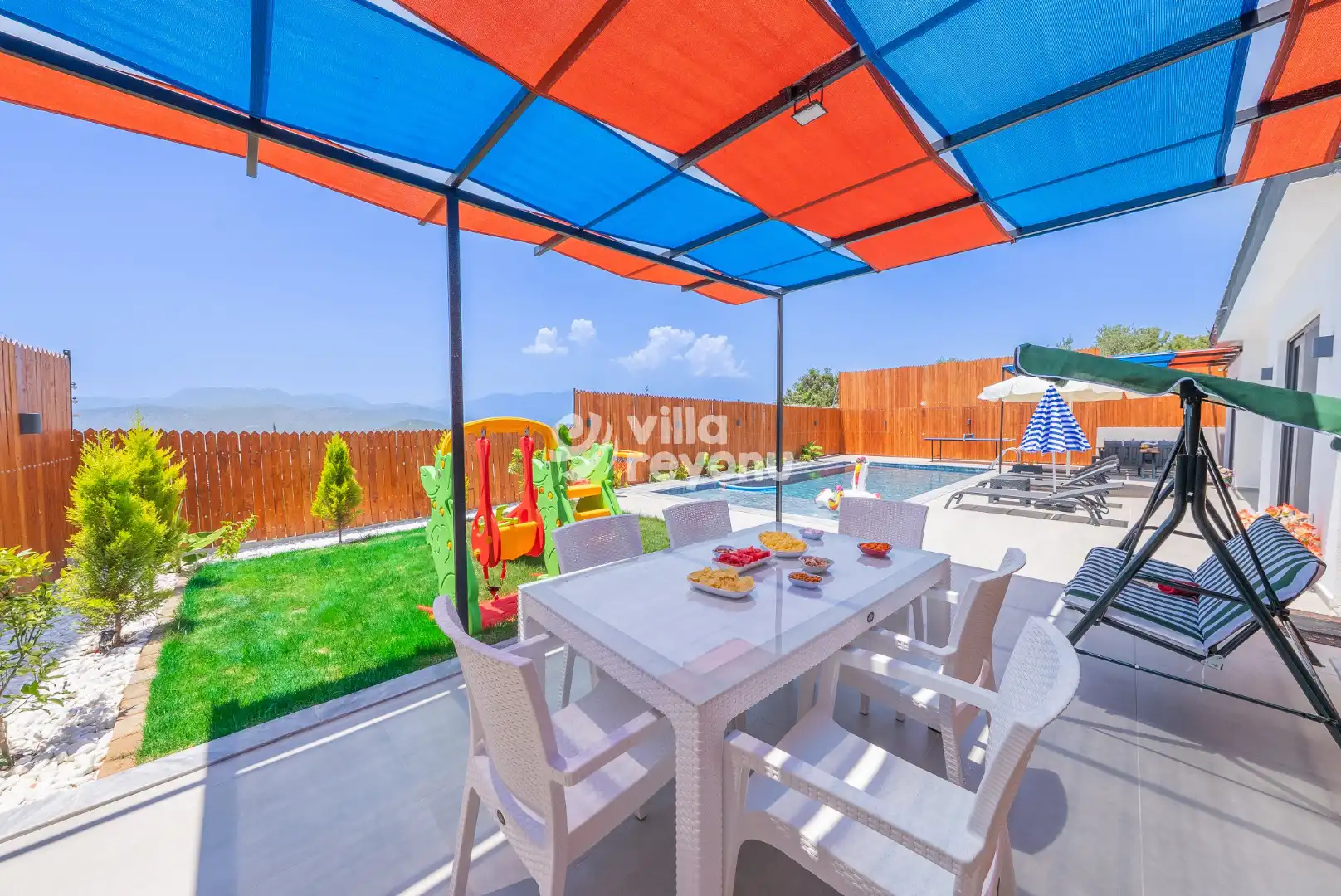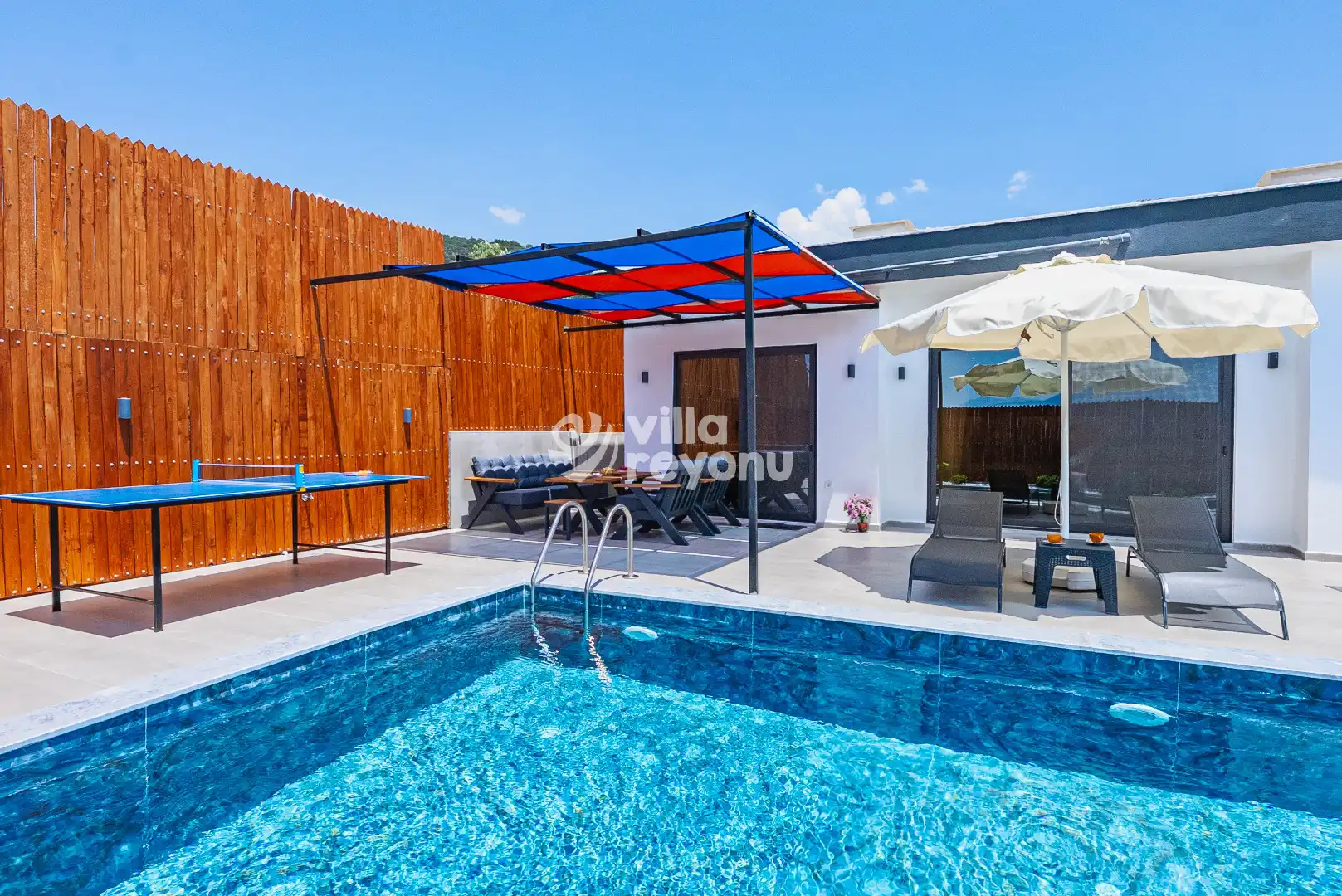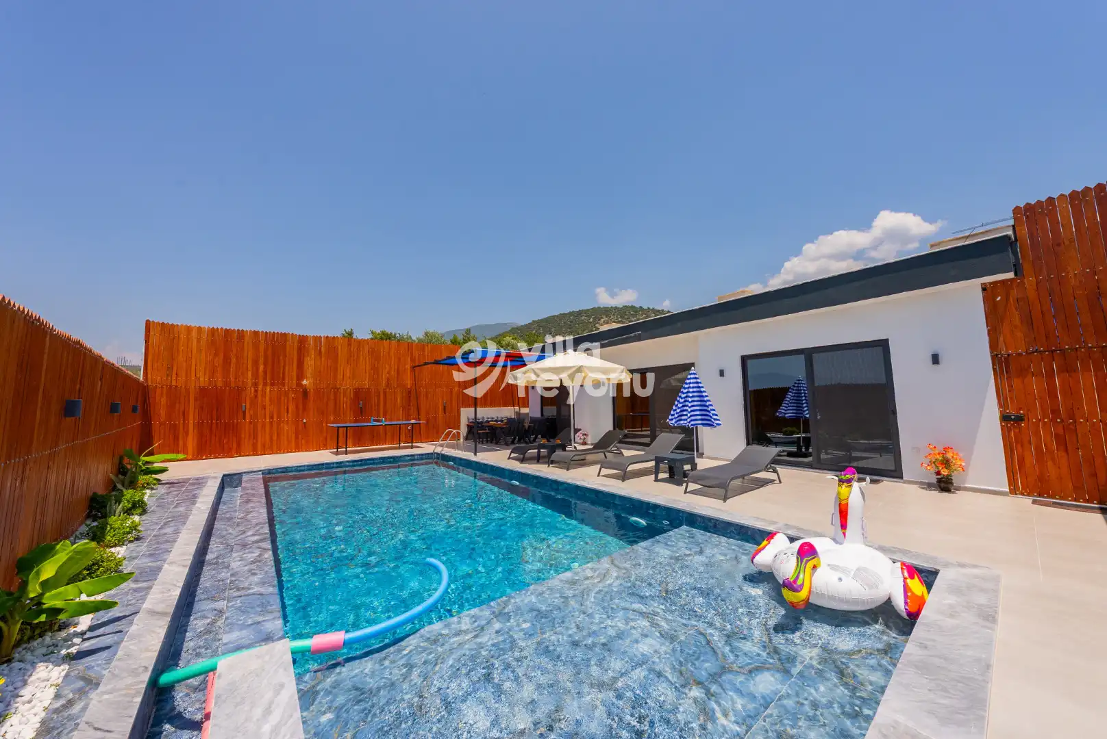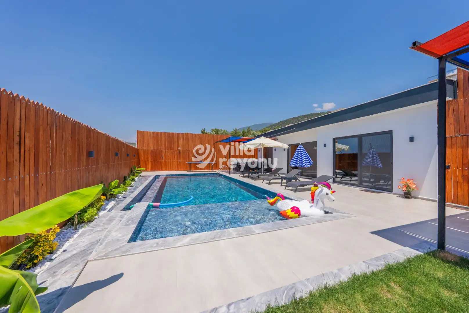Korunaklı havuz alanı sayesinde dış gözlerden uzakta yüzmenin tadını çıkarabilir, bahçedeki oturma gruplarında dilediğiniz gibi keyif yapabilirsiniz. Kendi içinde her ihtiyacı karşılayan bu villa, misafirlerine bağımsız bir yaşam alanı sunar. Bu da tatilinizi dilediğiniz gibi planlamanıza olanak verir.