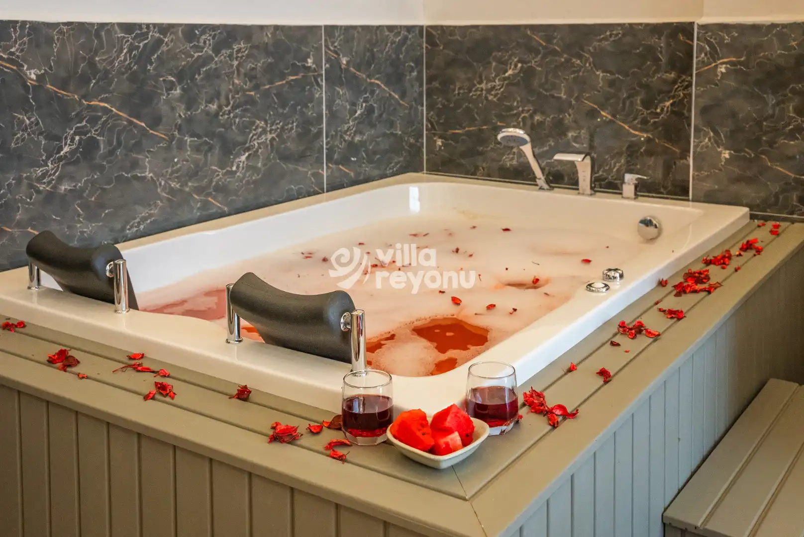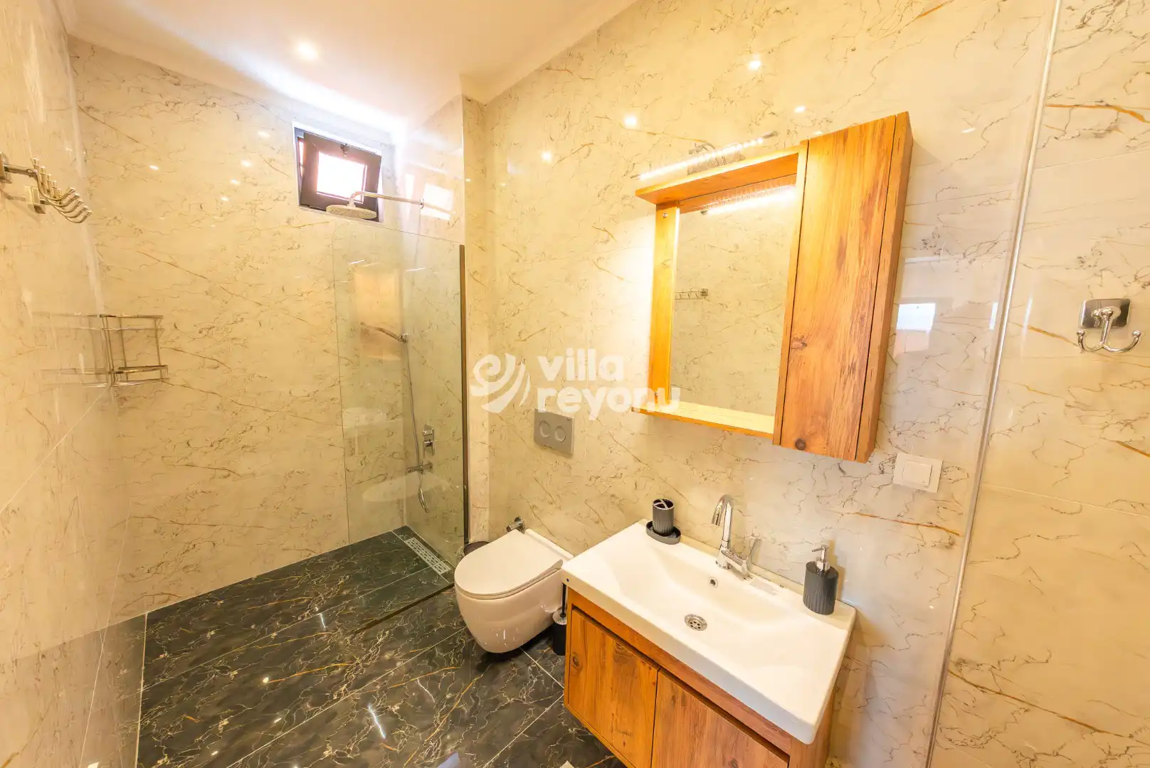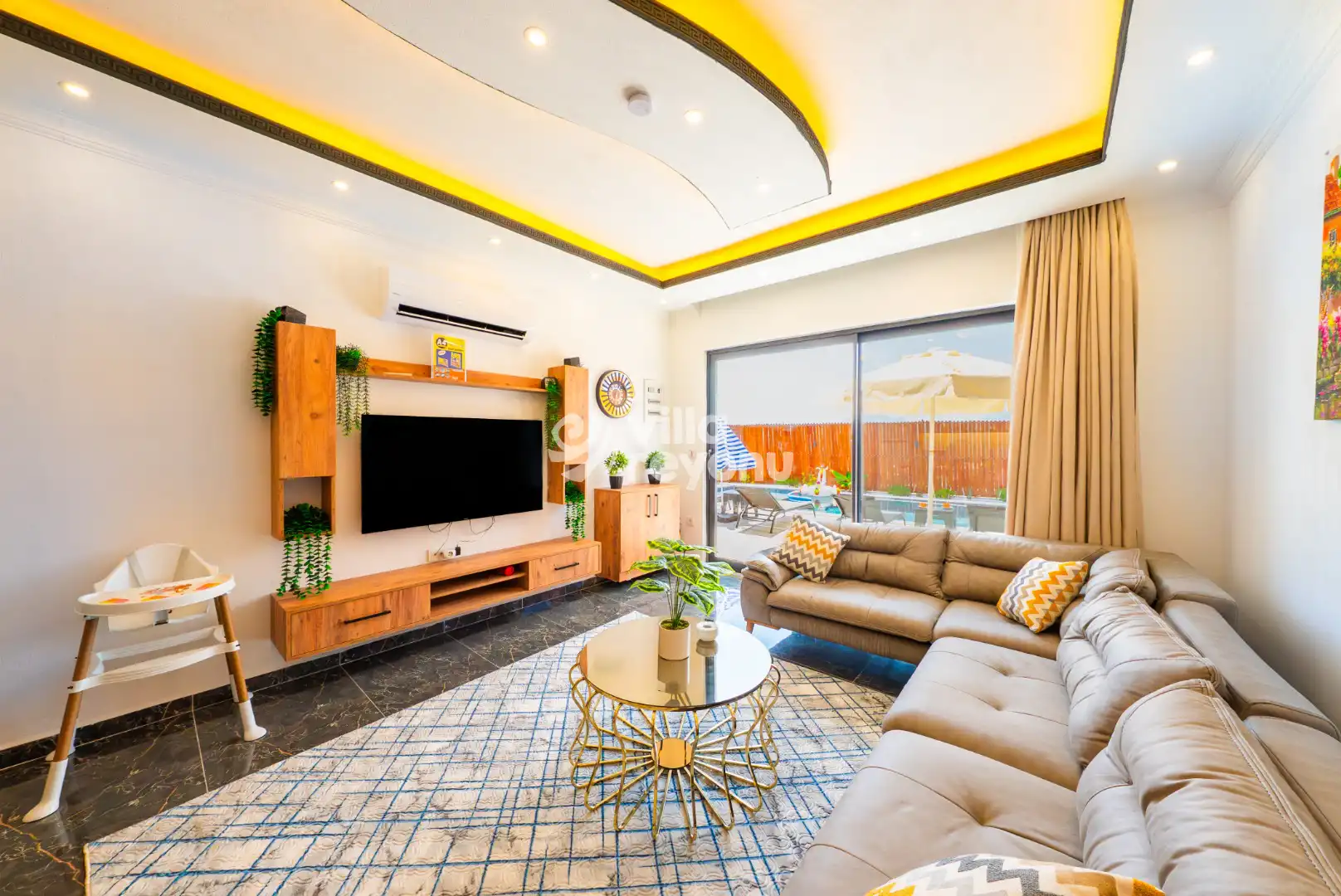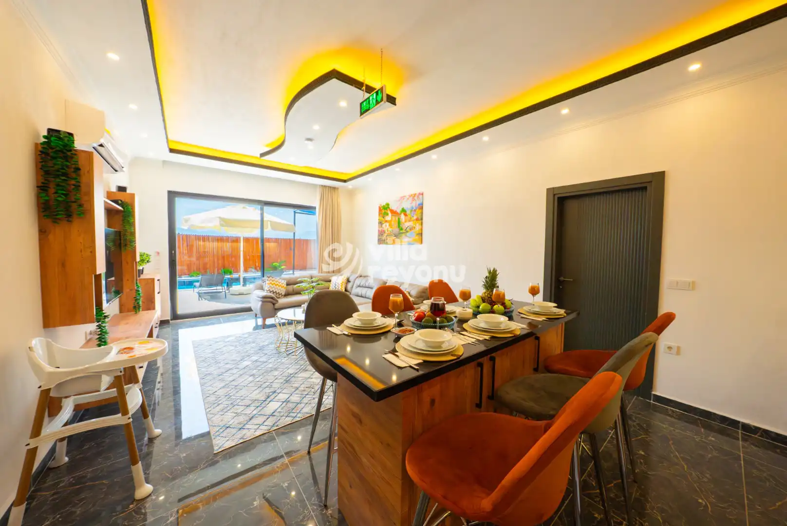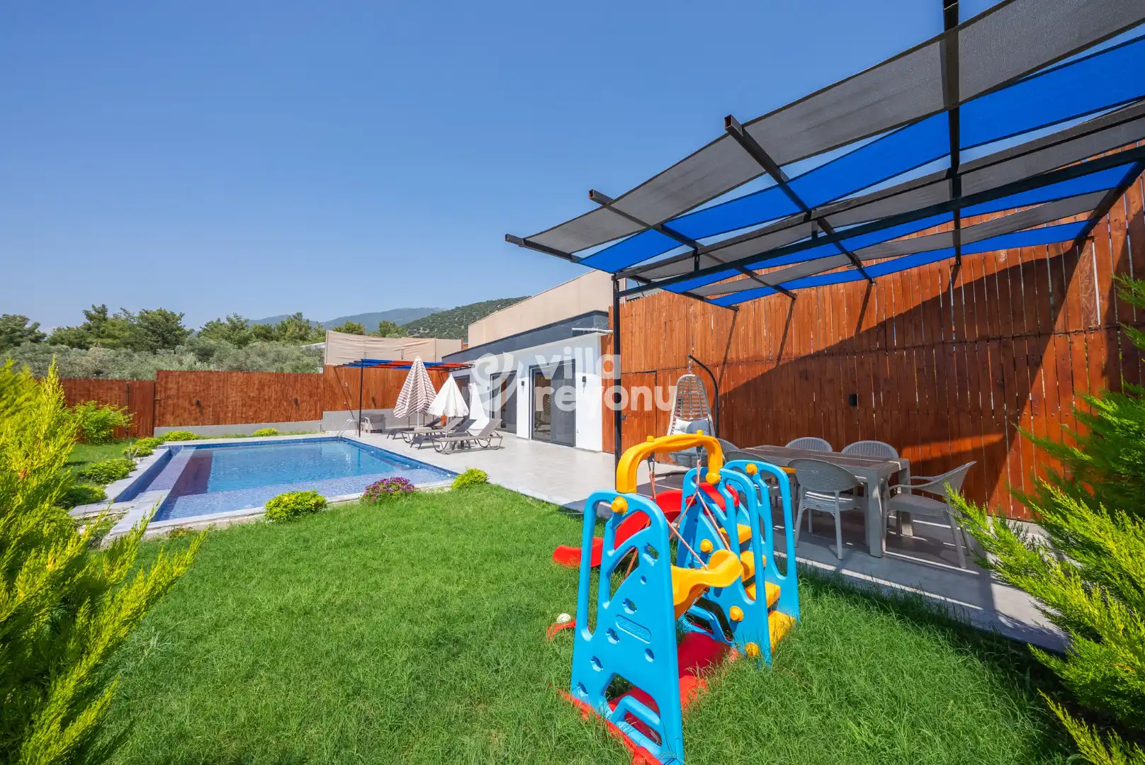 Korunaklı havuz alanı sayesinde dış gözlerden uzakta yüzmenin tadını çıkarabilir, bahçedeki oturma gruplarında dilediğiniz gibi keyif yapabilirsiniz. Kendi içinde her ihtiyacı karşılayan bu villa, misafirlerine bağımsız bir yaşam alanı sunar. Bu da tatilinizi dilediğiniz gibi planlamanıza olanak verir.