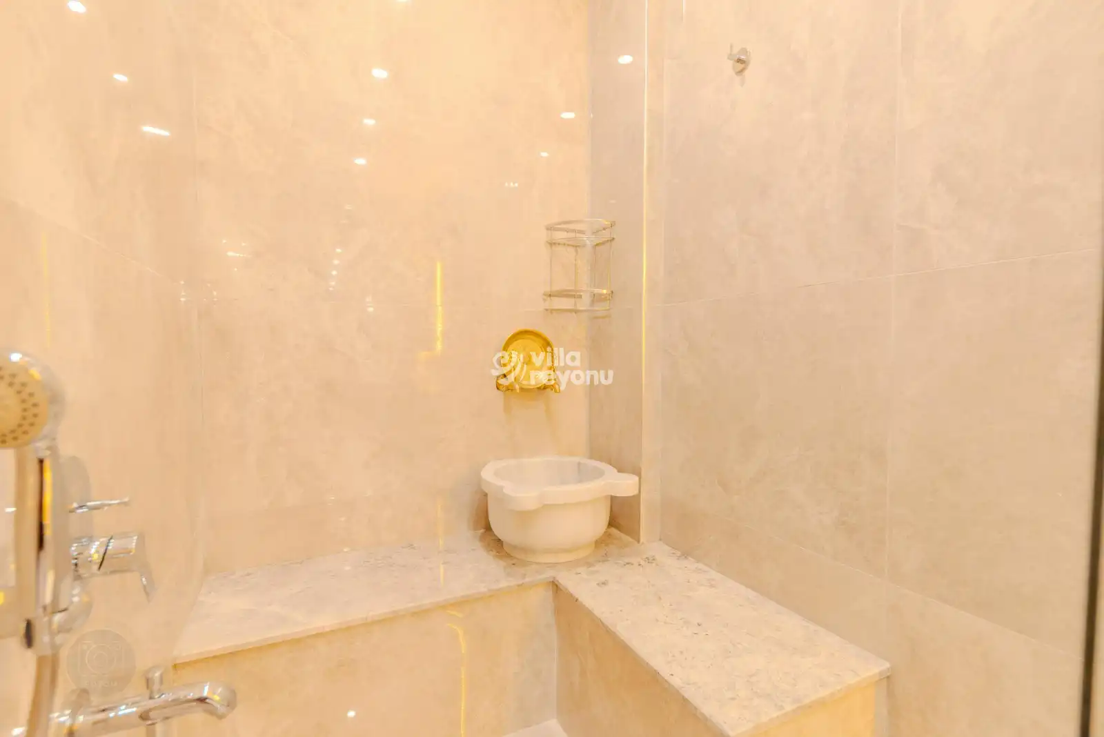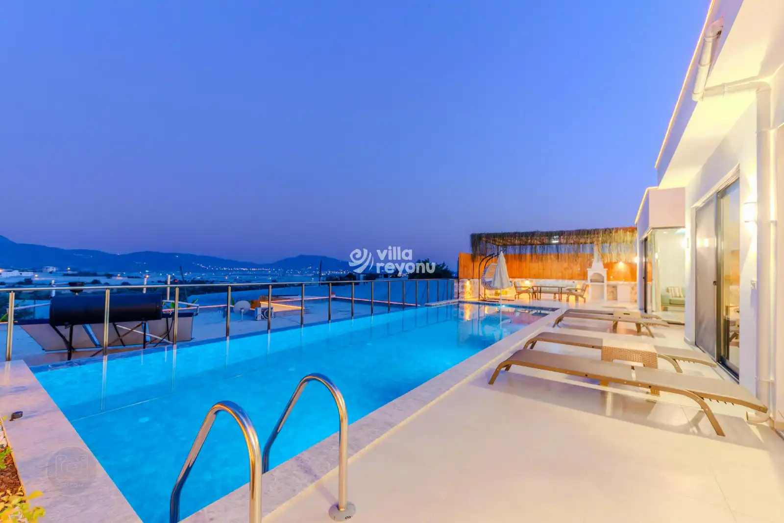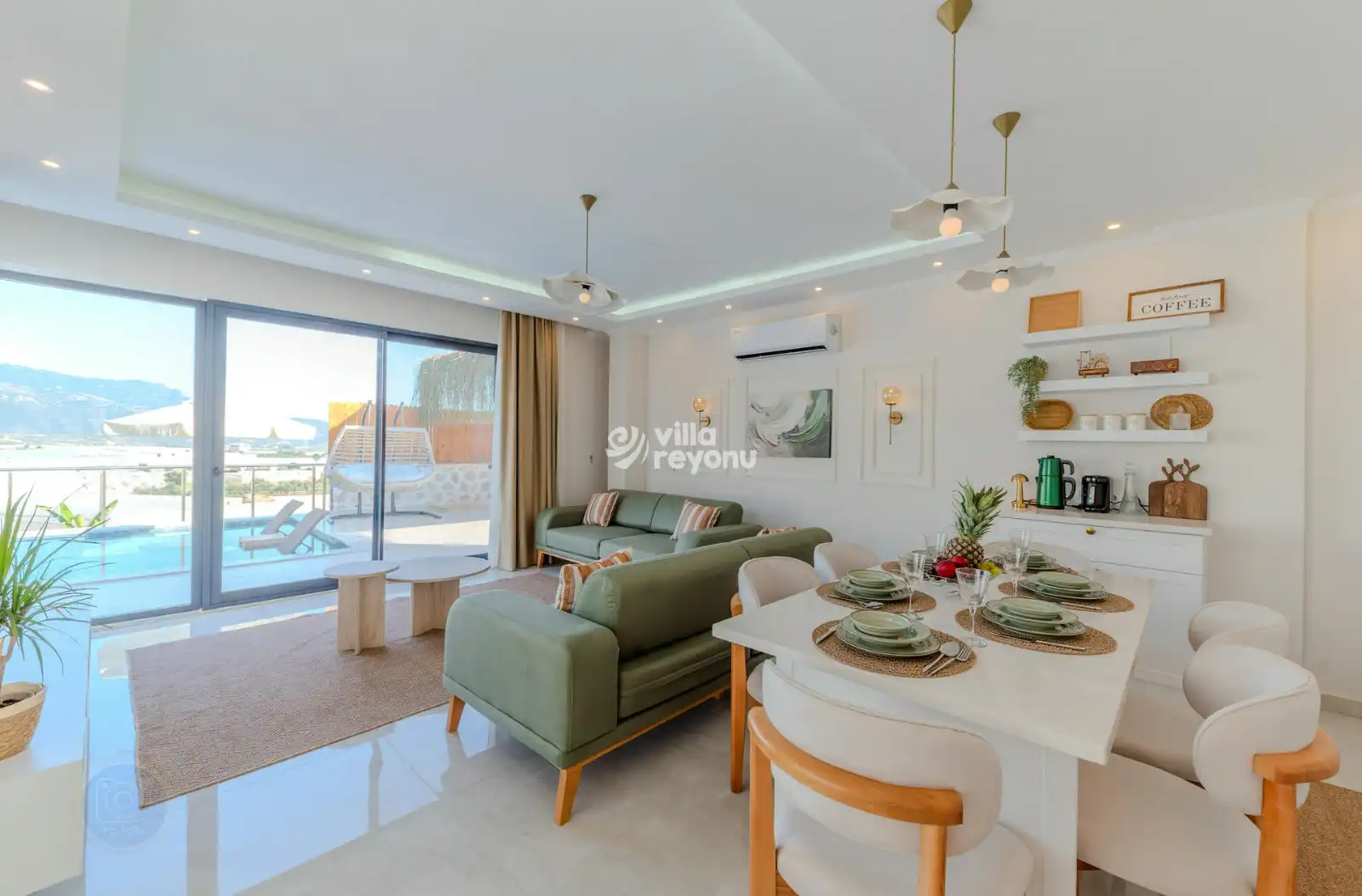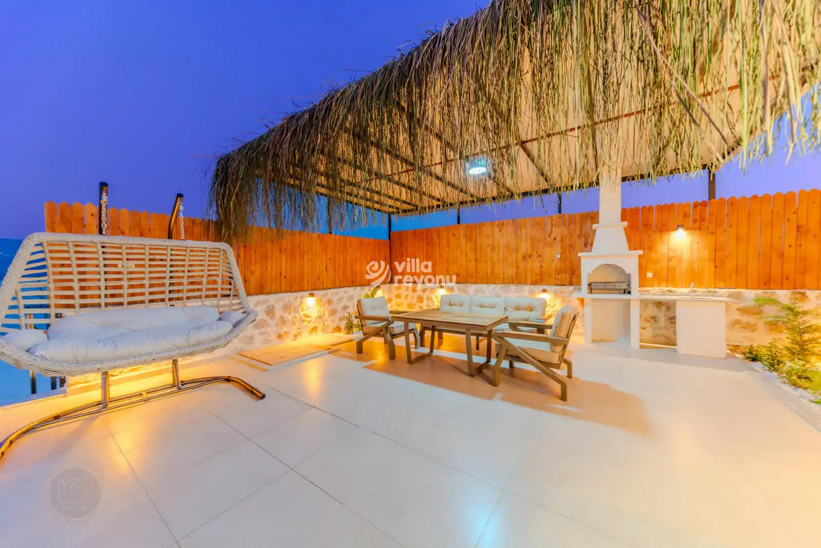 Modern ve zarif iç tasarımıyla dikkat çeken villada, iki adet çift kişilik yatak bulunan yatak odası ve üç banyo mevcuttur. Jakuzi ve yüksek kaliteli donanımlar, konaklamanızı daha da özel ve rahat hale getirir.