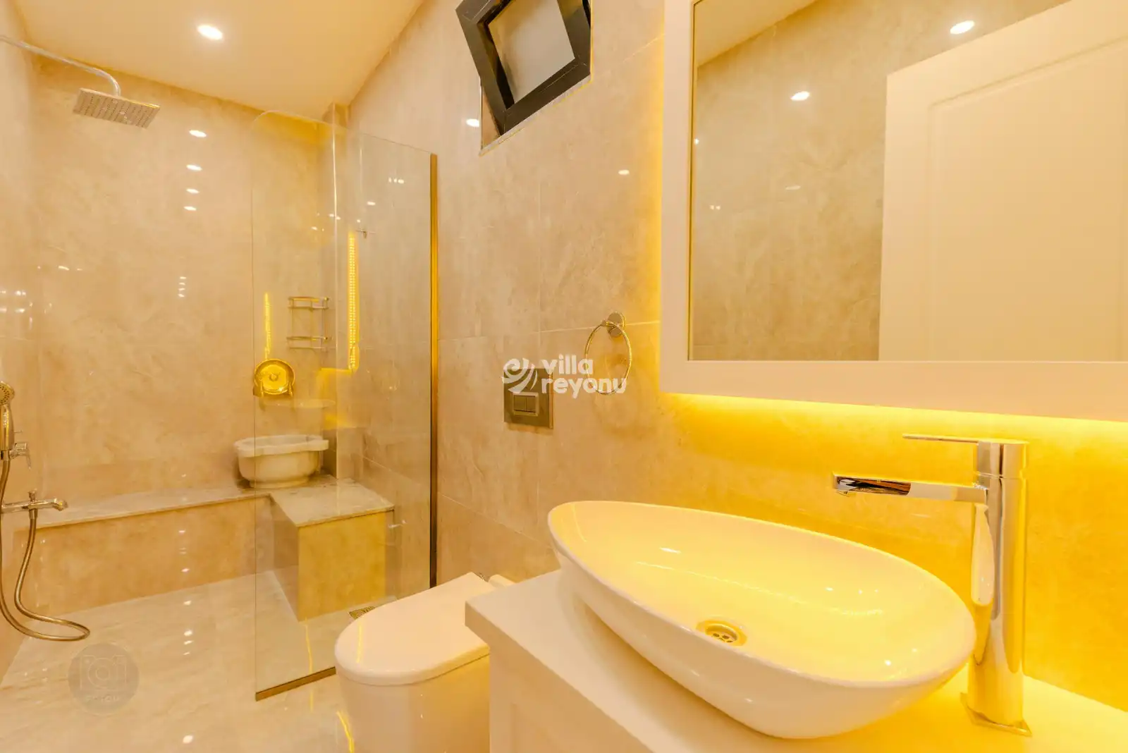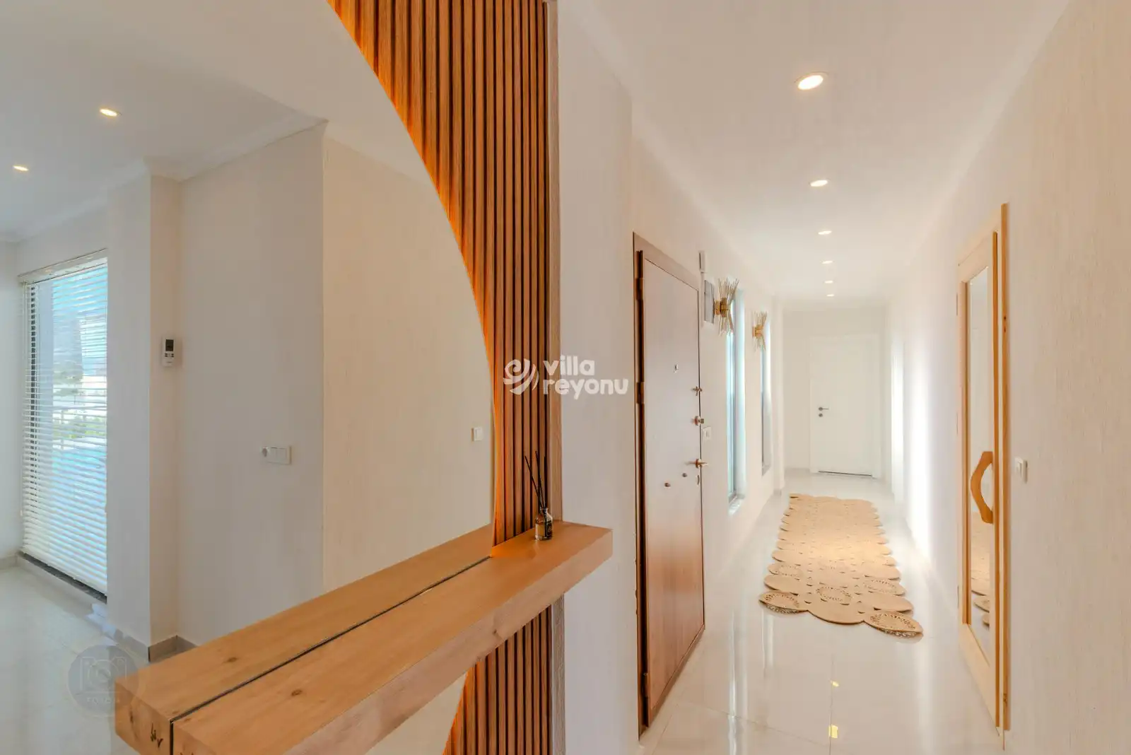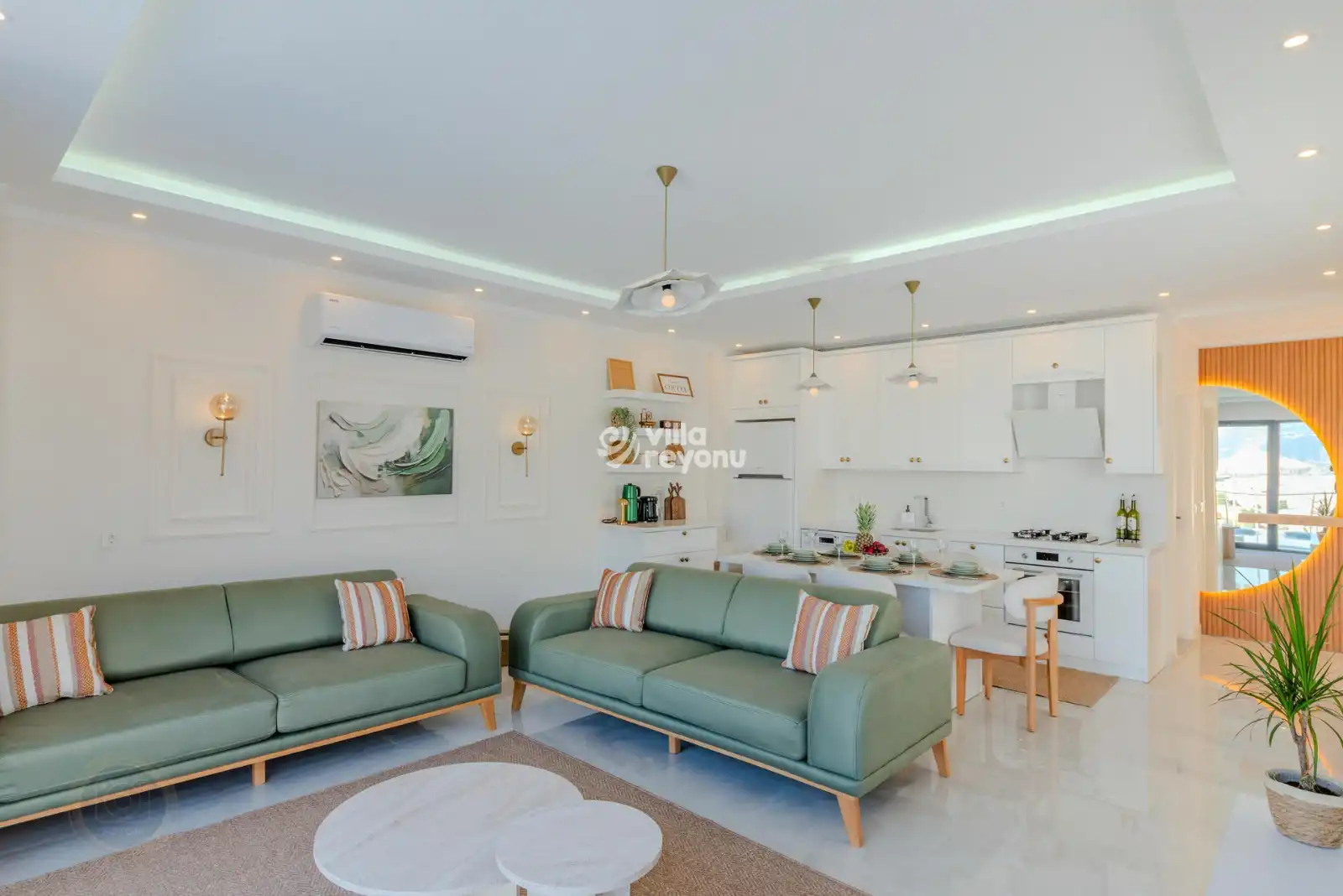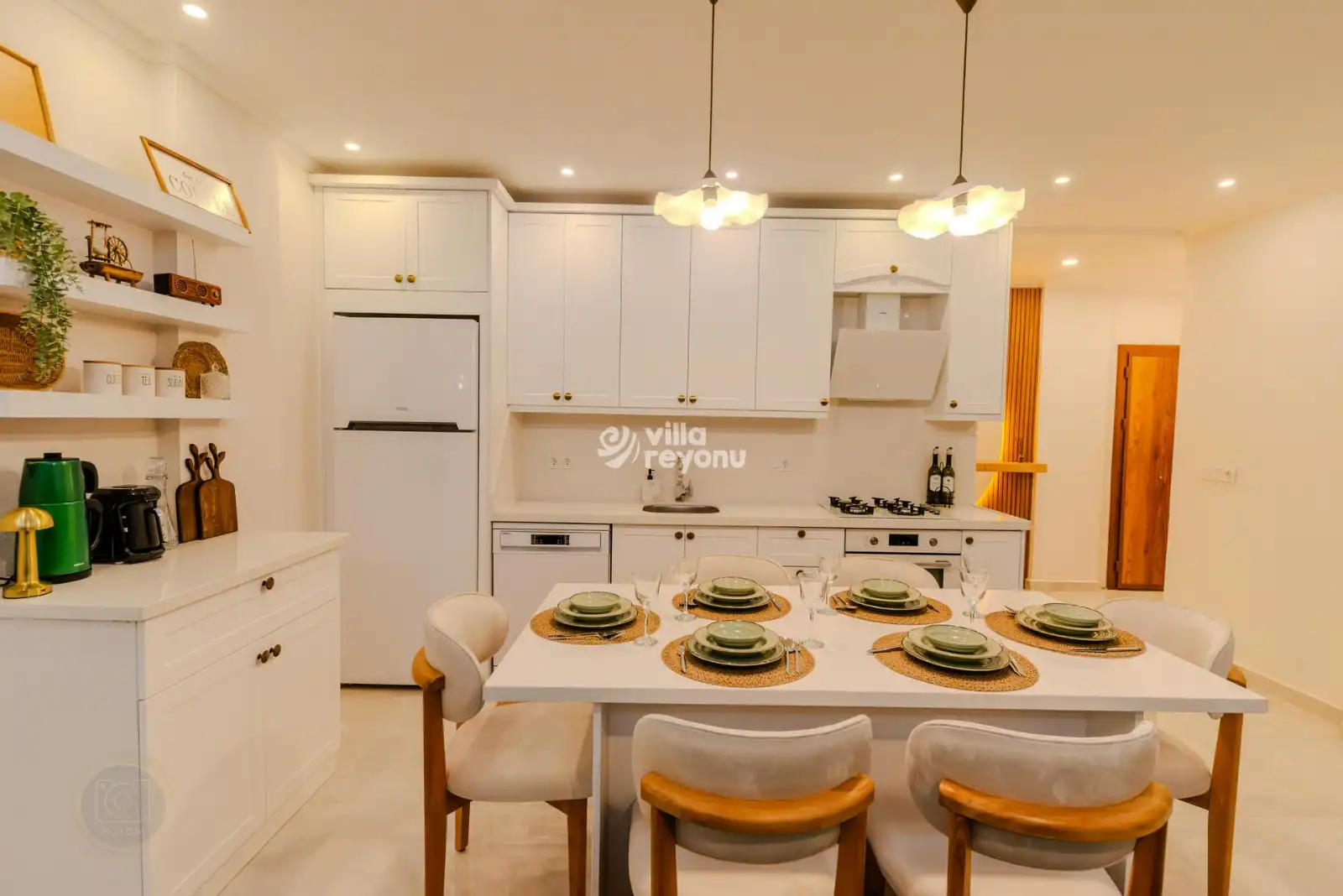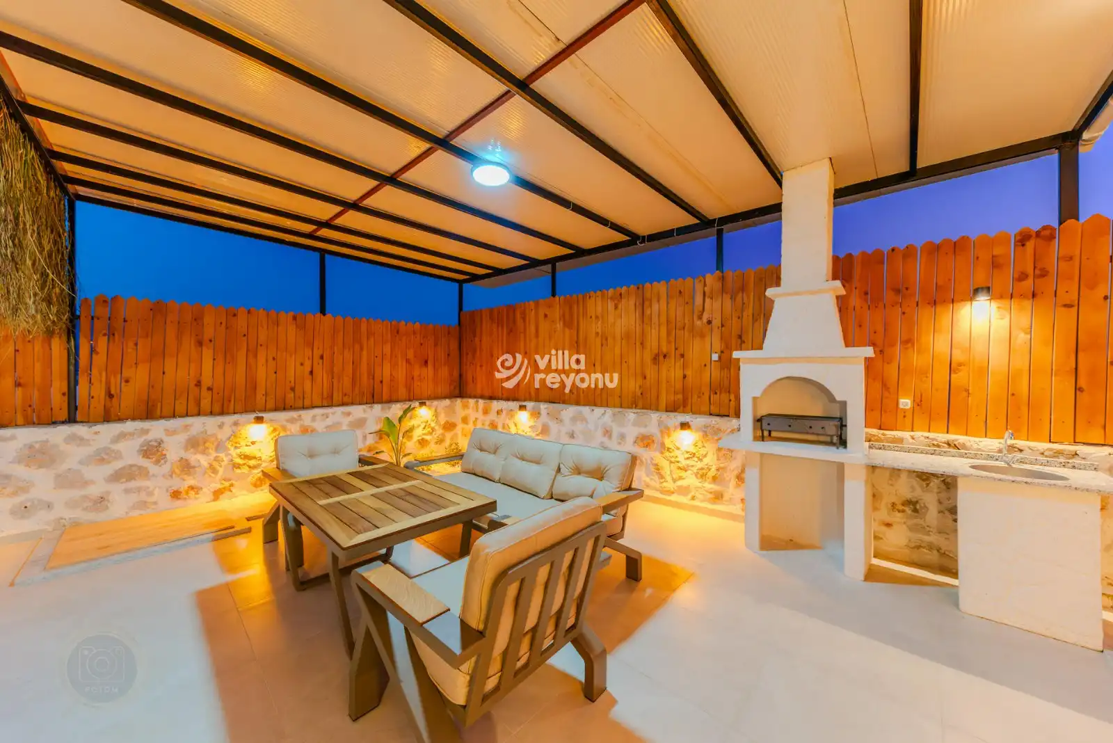 Modern ve zarif iç tasarımıyla dikkat çeken villada, iki adet çift kişilik yatak bulunan yatak odası ve üç banyo mevcuttur. Jakuzi ve yüksek kaliteli donanımlar, konaklamanızı daha da özel ve rahat hale getirir.