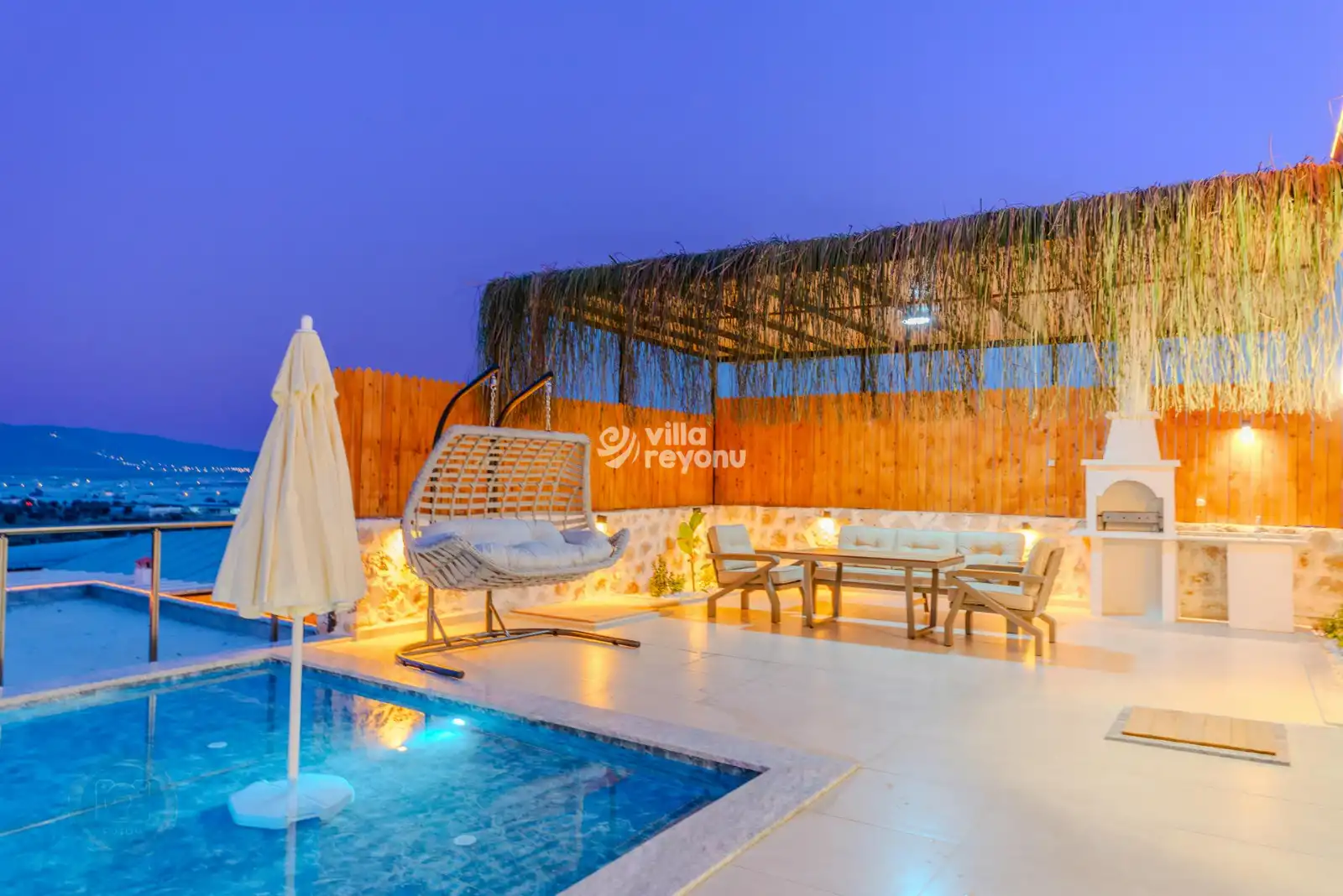 Çavdır’ın doğal güzellikleriyle çevrili sakin bir konumda yer alan bu lüks villa, özel ve korunaklı yapısıyla huzurlu bir tatil arayanlara mükemmel bir seçenek sunuyor. Geniş yüzme havuzu ve çocuk havuzu sayesinde her yaş grubundan misafir konforlu bir şekilde keyifli vakit geçirebilir.