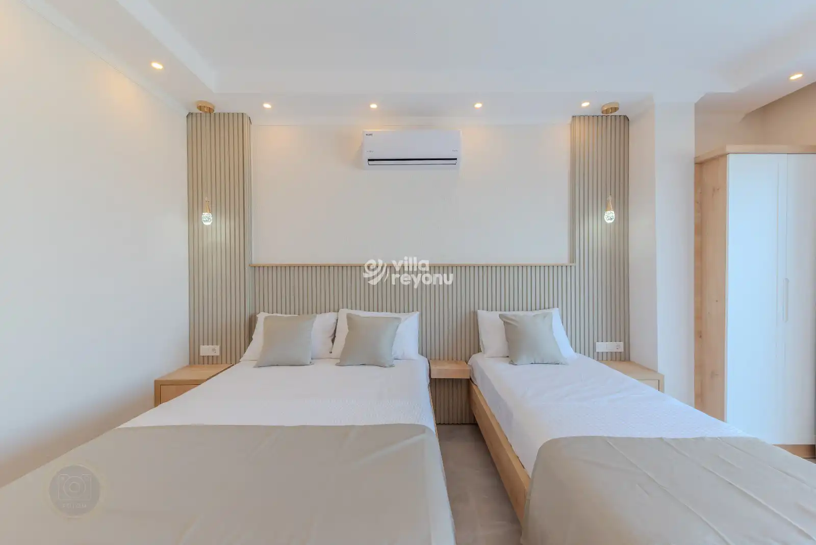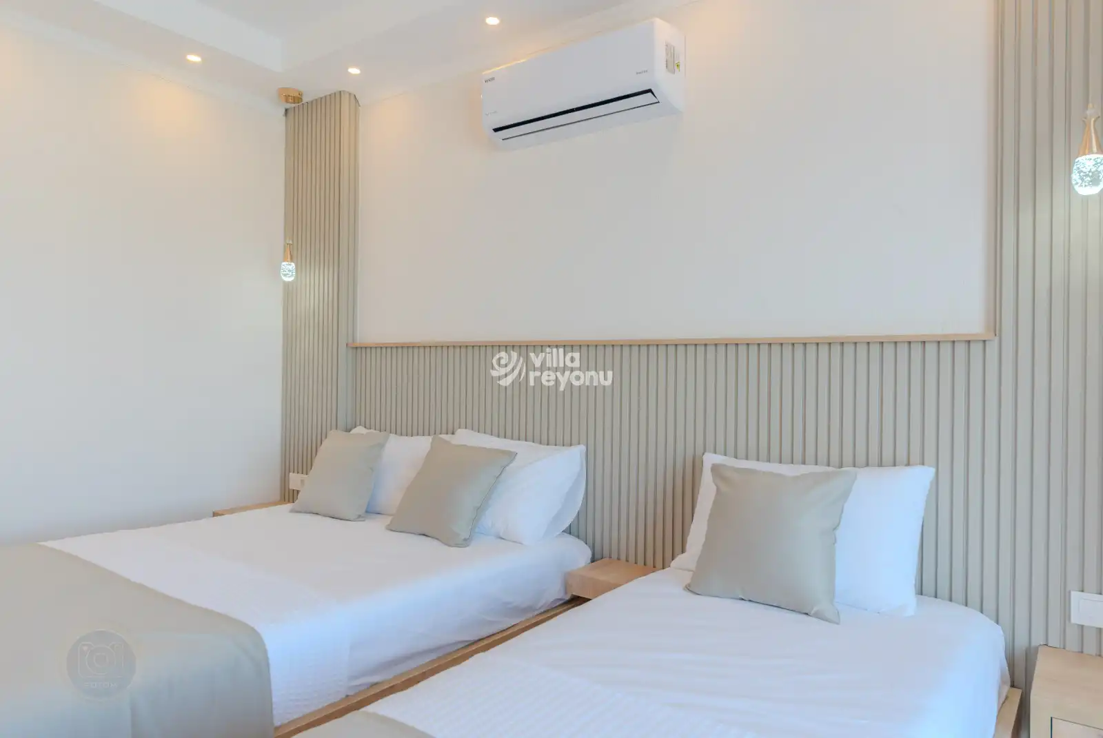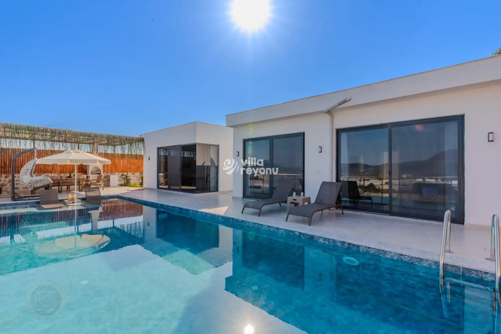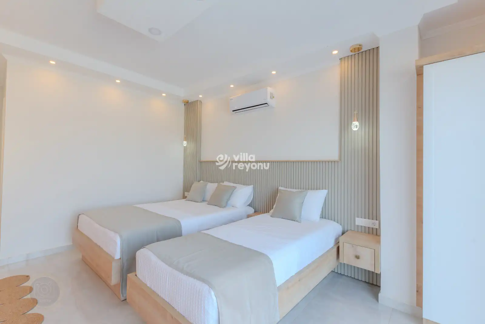 Modern ve zarif iç tasarımıyla dikkat çeken villada, iki adet çift kişilik yatak bulunan yatak odası ve üç banyo mevcuttur. Jakuzi ve yüksek kaliteli donanımlar, konaklamanızı daha da özel ve rahat hale getirir.