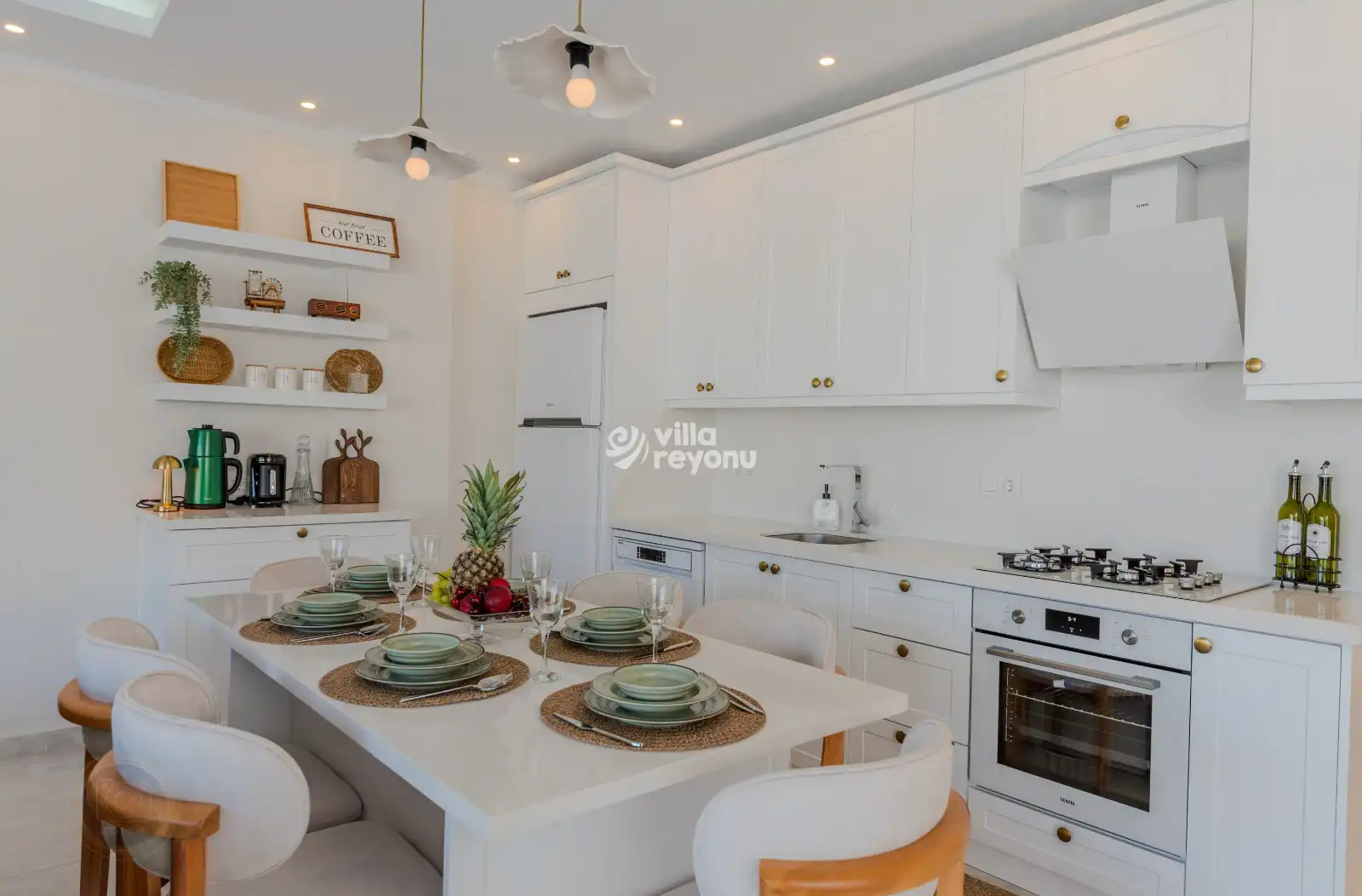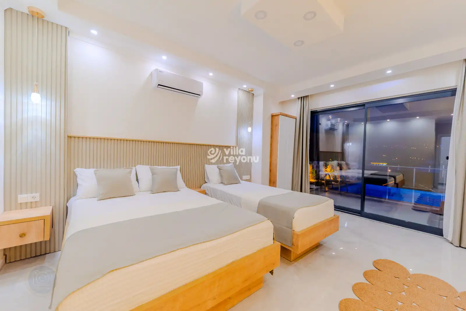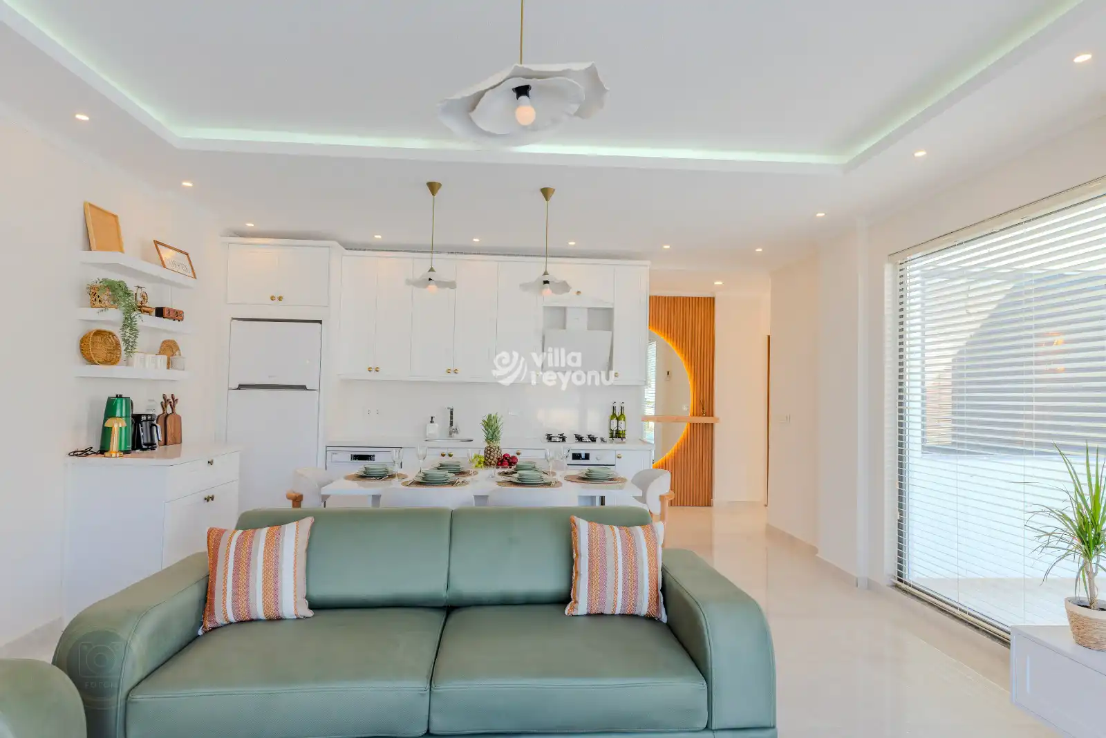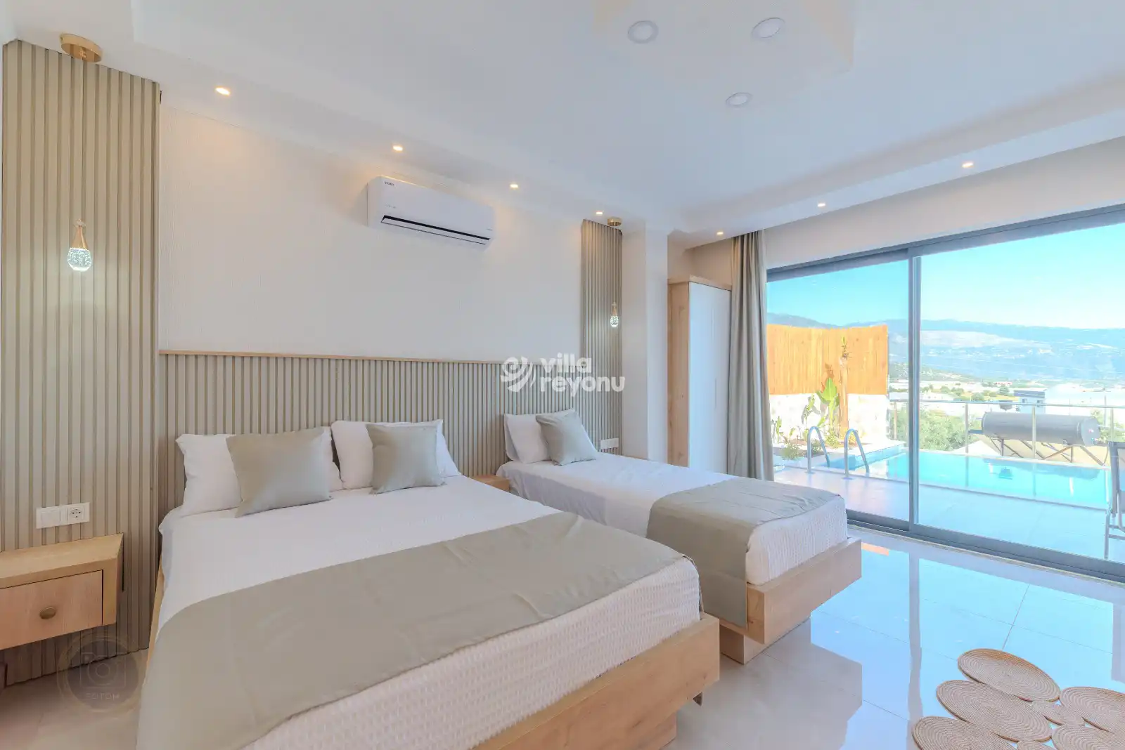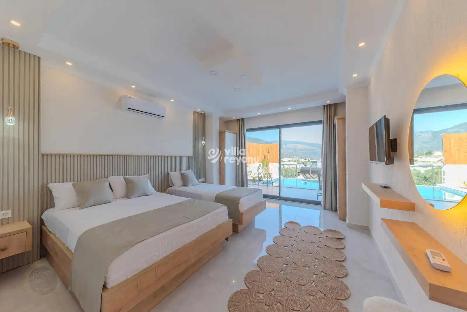 Modern ve zarif iç tasarımıyla dikkat çeken villada, iki adet çift kişilik yatak bulunan yatak odası ve üç banyo mevcuttur. Jakuzi ve yüksek kaliteli donanımlar, konaklamanızı daha da özel ve rahat hale getirir.