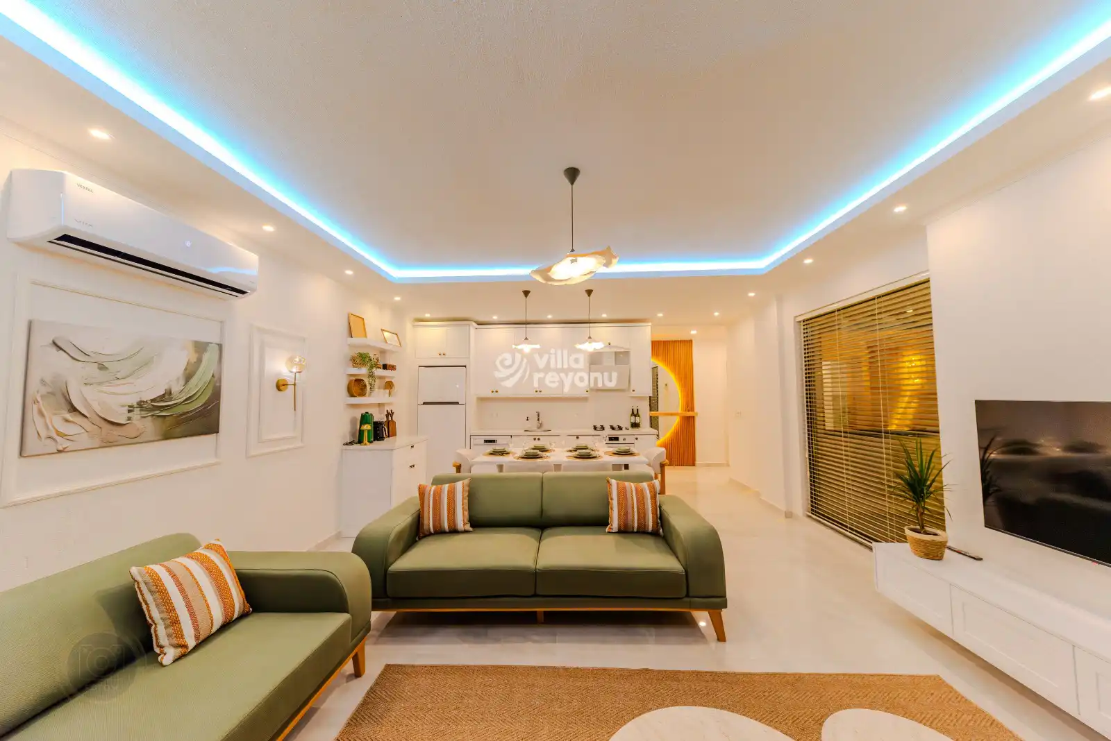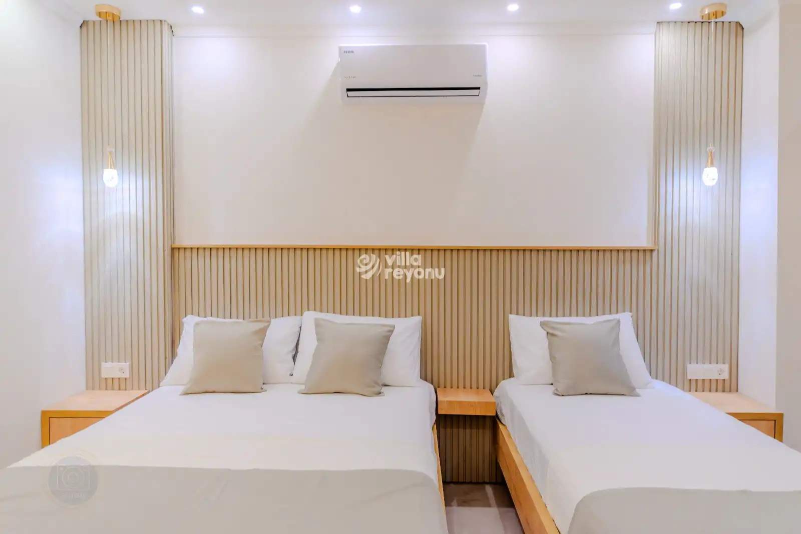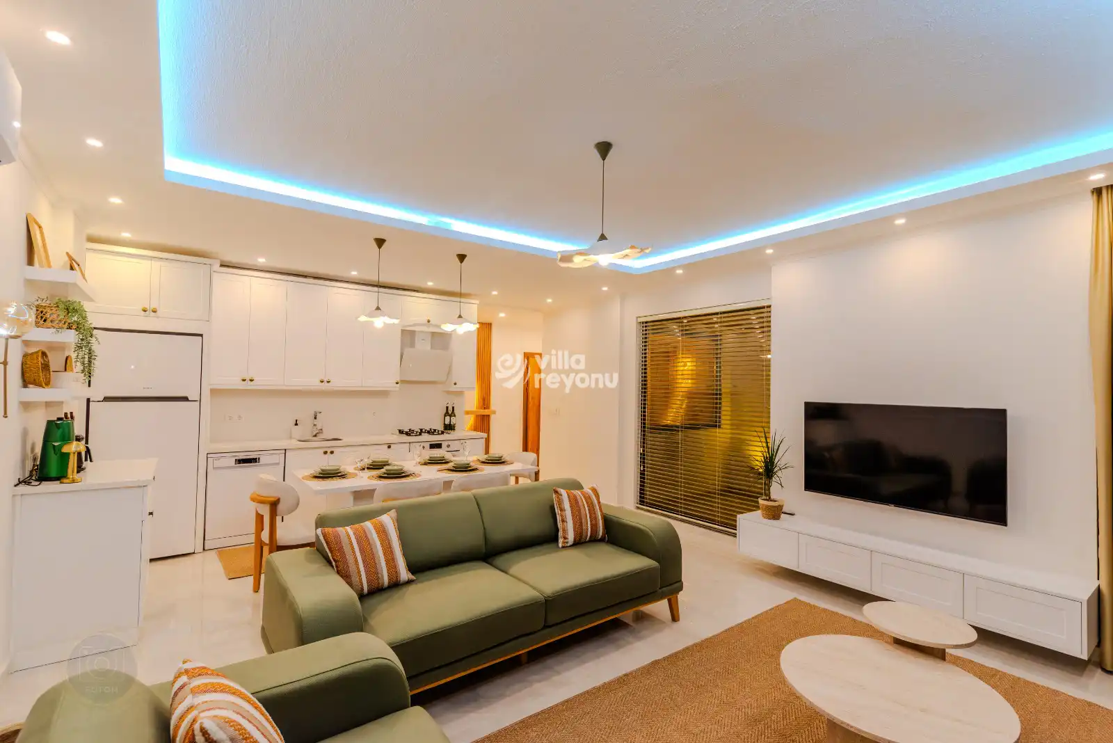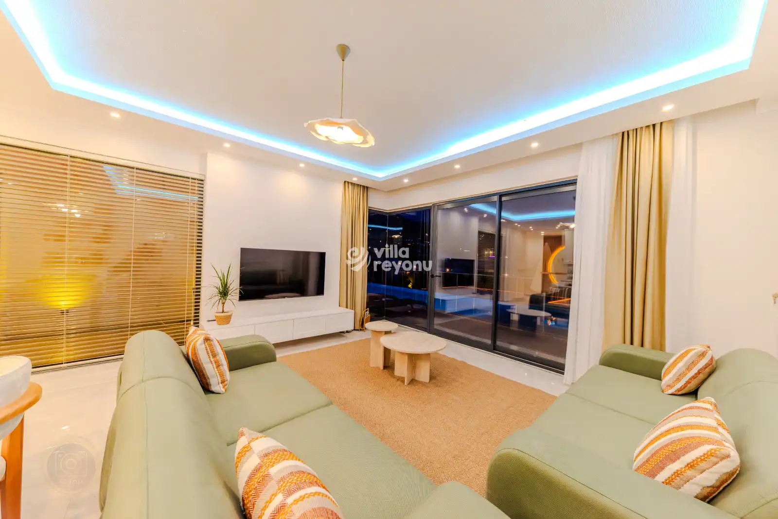 Modern ve zarif iç tasarımıyla dikkat çeken villada, iki adet çift kişilik yatak bulunan yatak odası ve üç banyo mevcuttur. Jakuzi ve yüksek kaliteli donanımlar, konaklamanızı daha da özel ve rahat hale getirir.