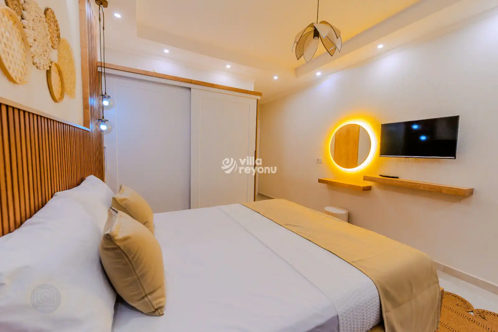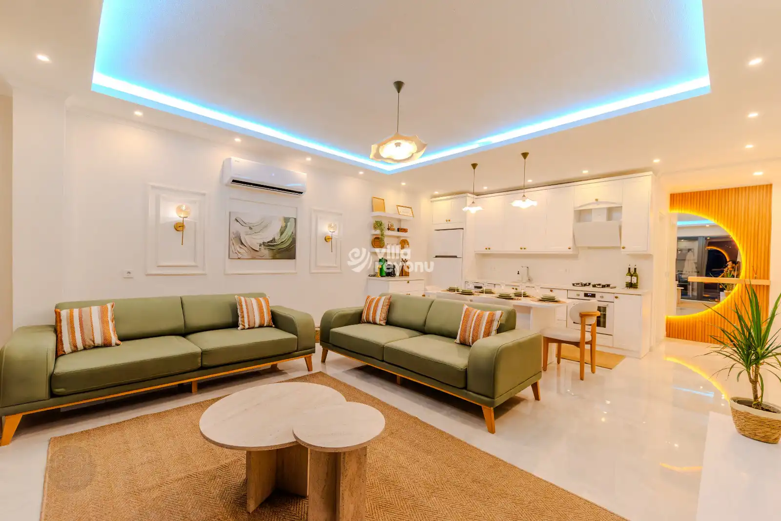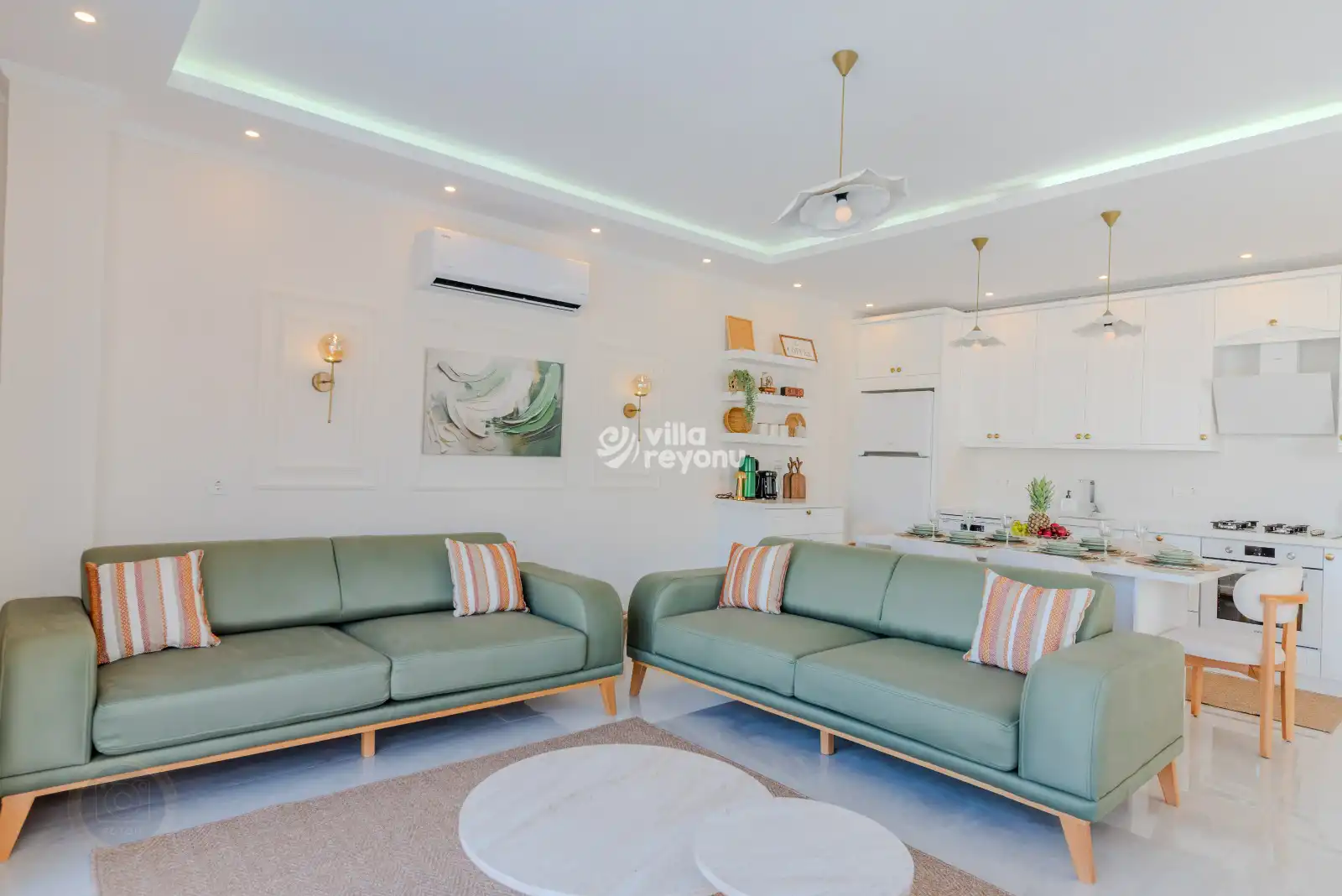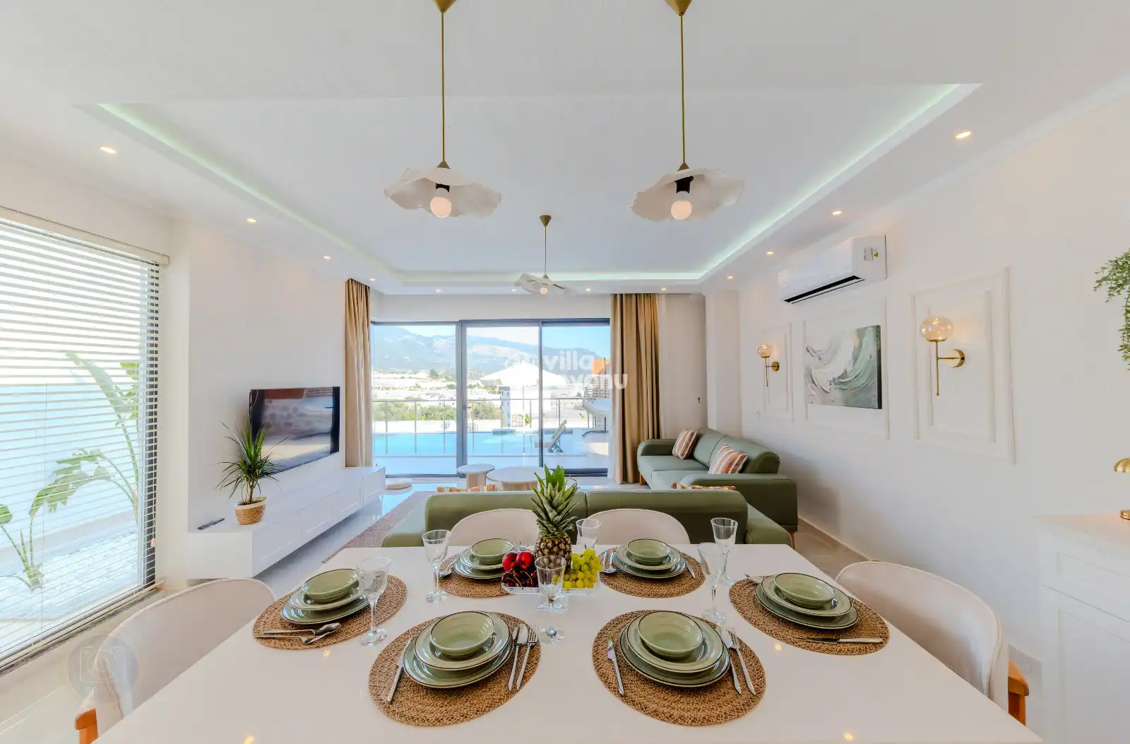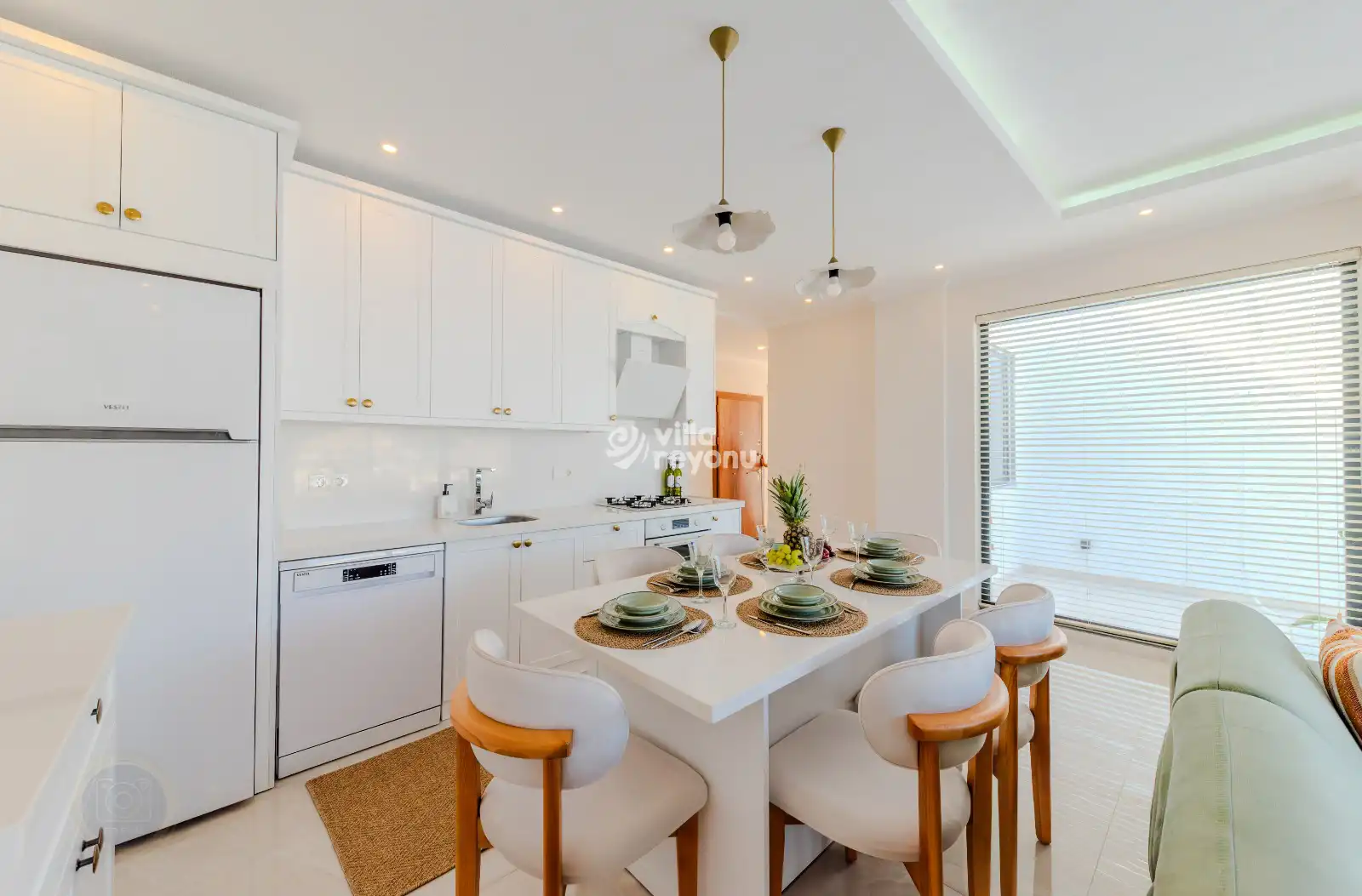 Modern ve zarif iç tasarımıyla dikkat çeken villada, iki adet çift kişilik yatak bulunan yatak odası ve üç banyo mevcuttur. Jakuzi ve yüksek kaliteli donanımlar, konaklamanızı daha da özel ve rahat hale getirir.