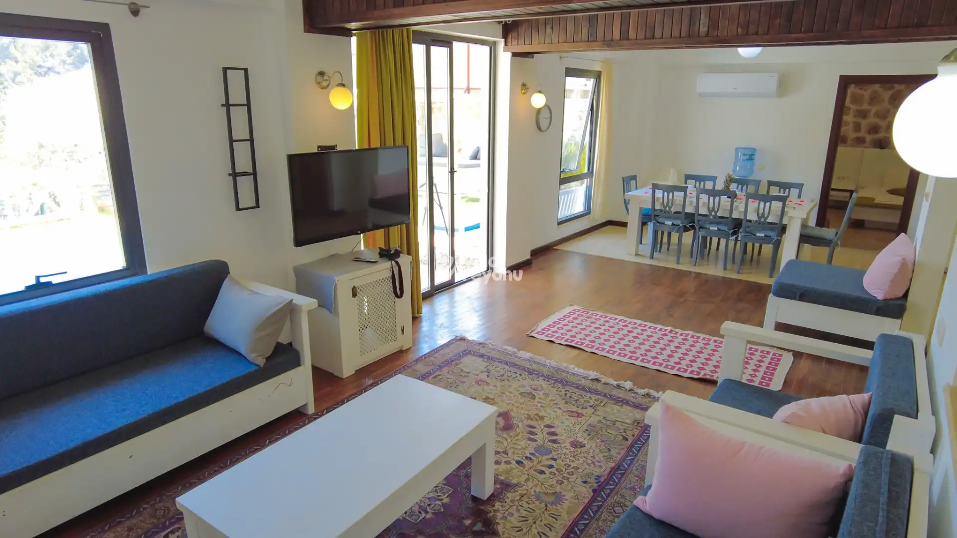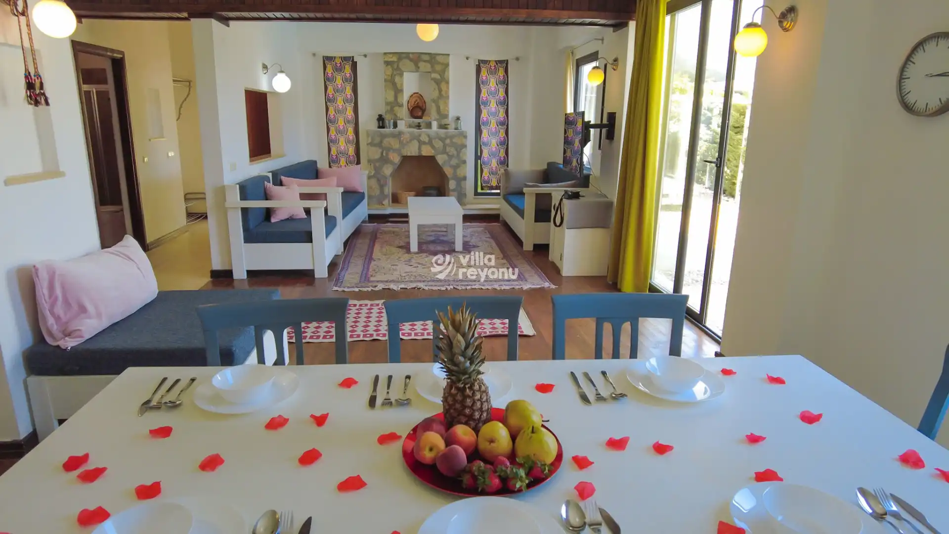 * Doğa içerisinde bulunan tüm villalarımızda düzenli olarak ilaçlama yapılmaktadır. Ancak yine de çevrede kelebek, böcek, sinek vb. bulunma ihtimali bulunmaktadır.