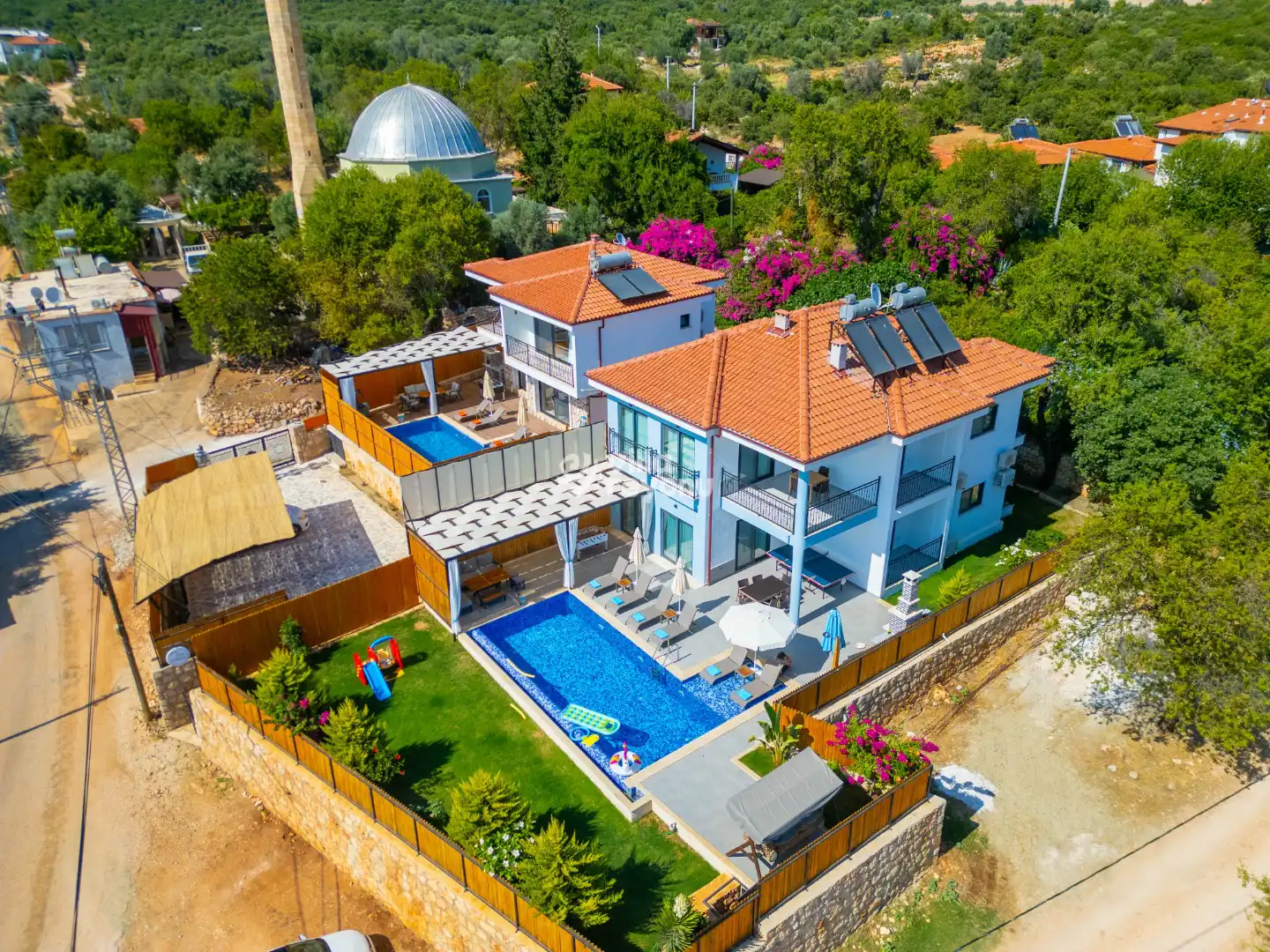 * Doğa içerisinde bulunan tüm villalarımızda düzenli olarak ilaçlama yapılmaktadır. Ancak yine de çevrede kelebek, böcek, sinek vb. bulunma ihtimali bulunmaktadır.
