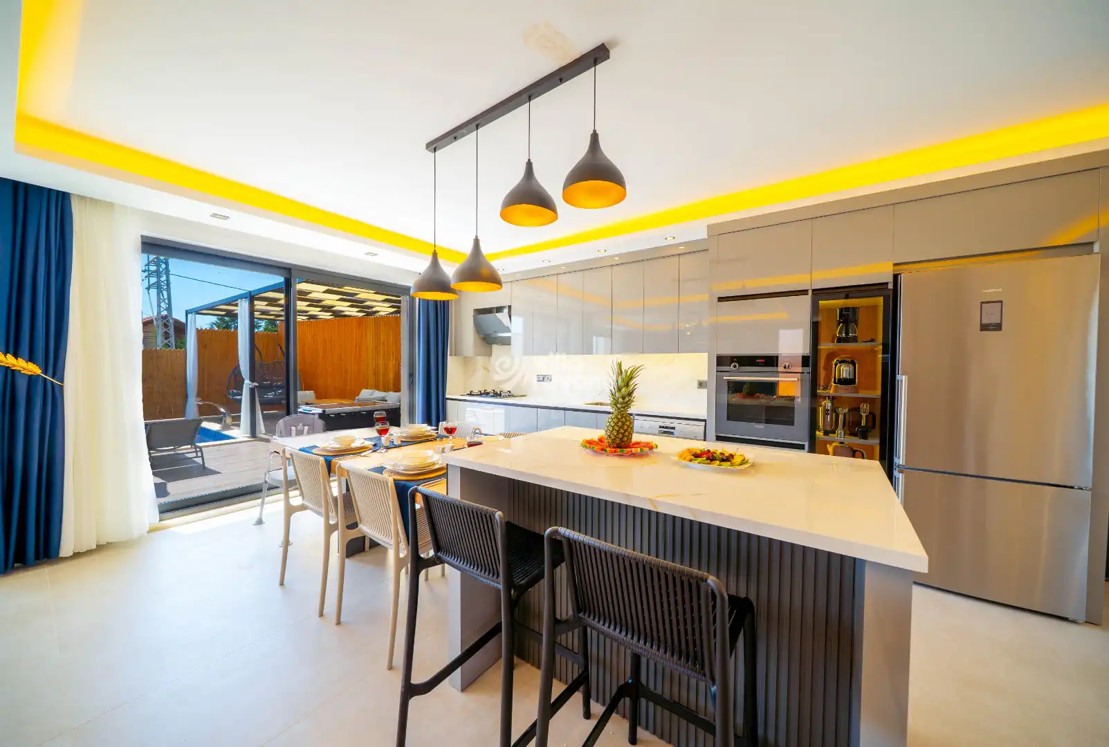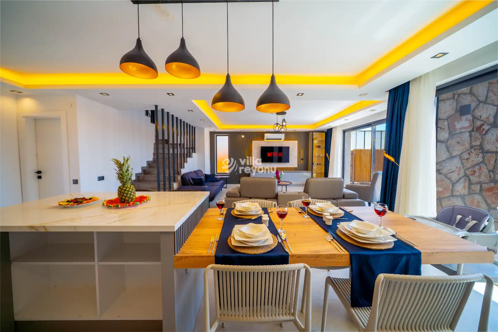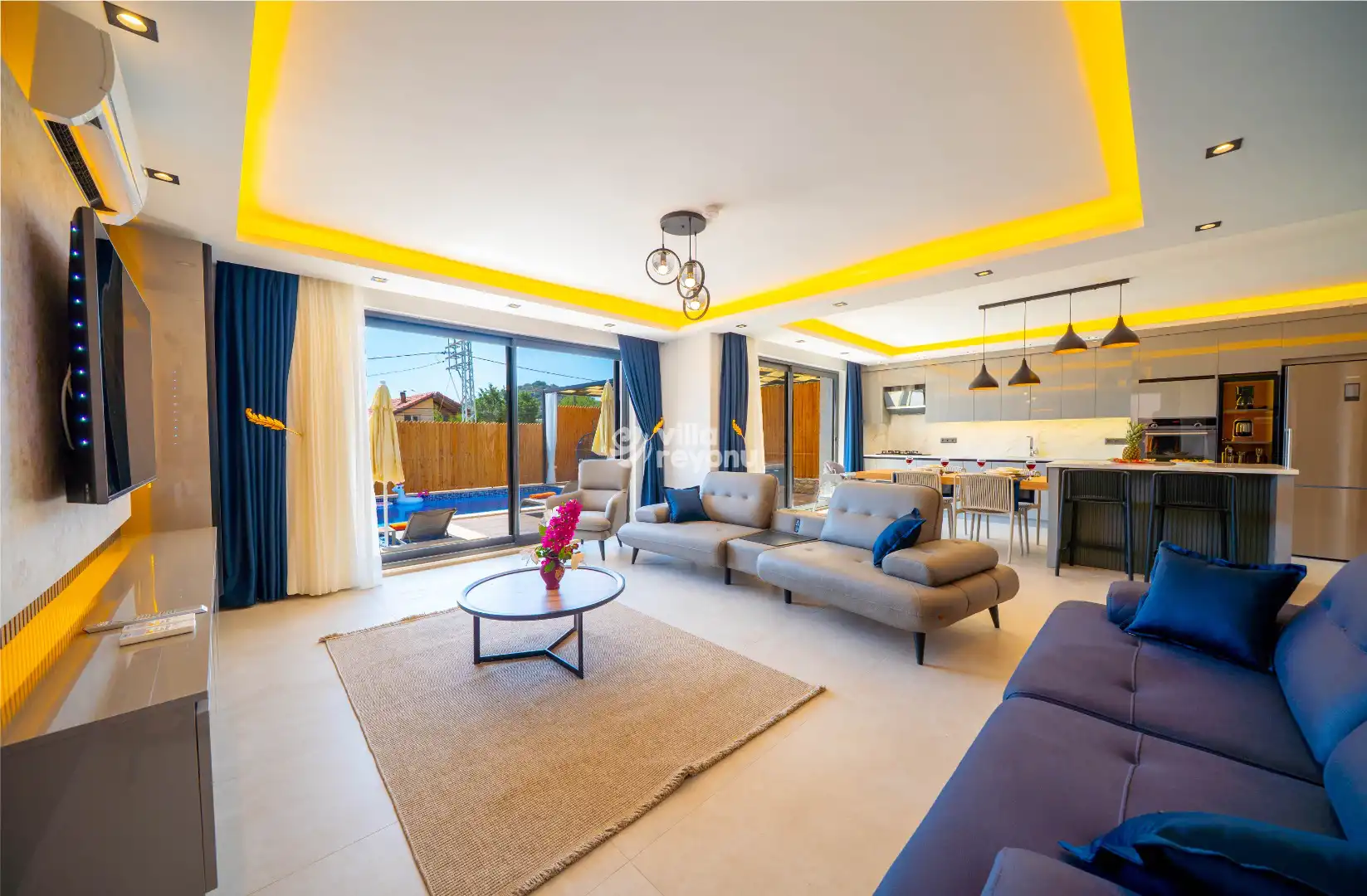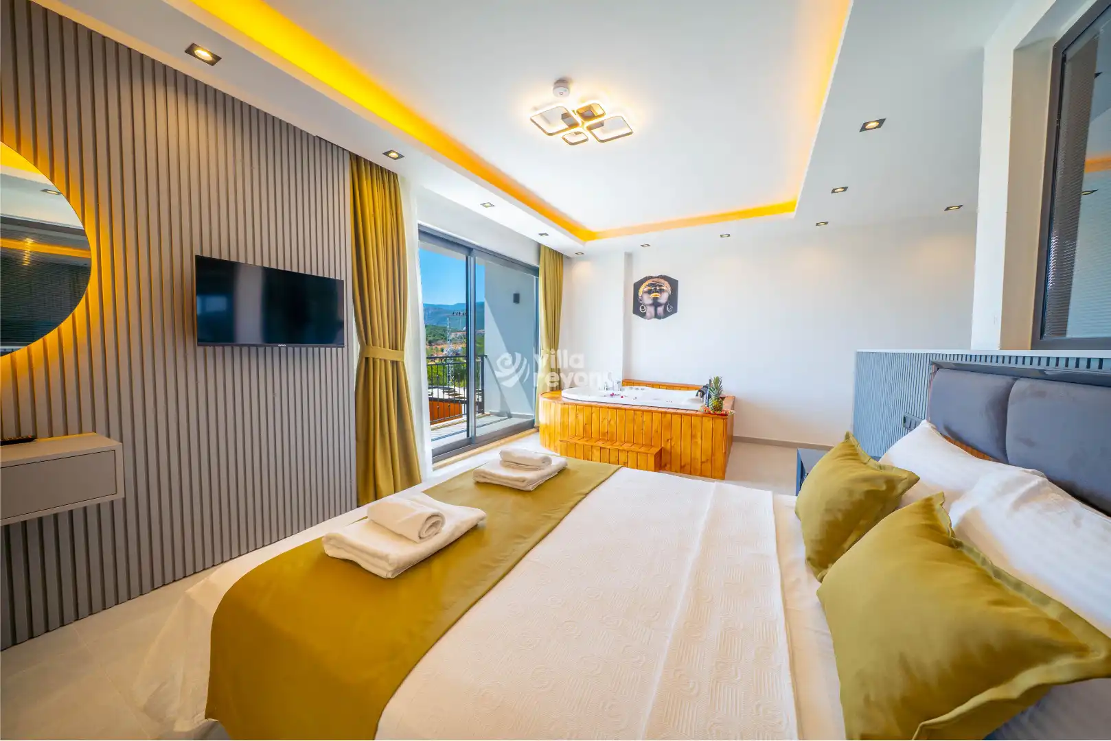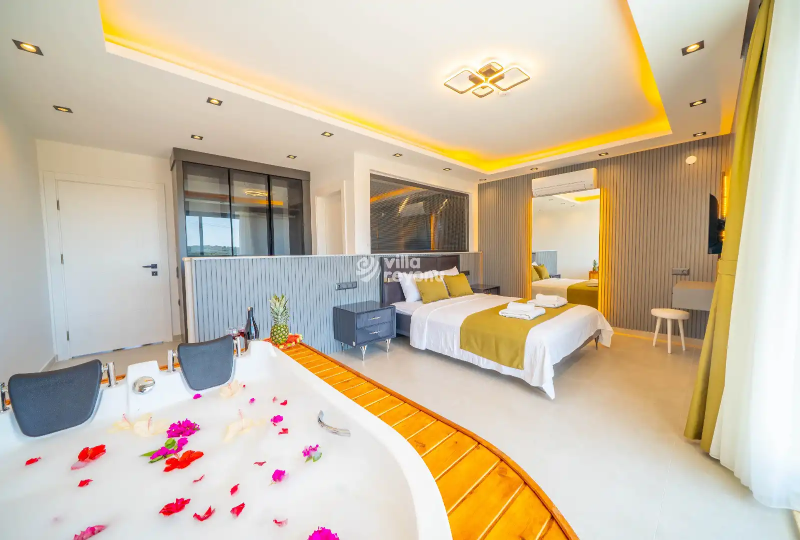 Modern ve şık iç dizayna sahip villamızda, gün boyu doğa manzarasının keyfini çıkarabilir, jakuziyle dinlenip yenilenebilirsiniz. Bahçesinde yer alan salıncakta, kuş sesleri eşliğinde huzurlu anlar geçirebilir, sevdiklerinizle unutulmaz bir tatil deneyimi yaşayabilirsiniz.