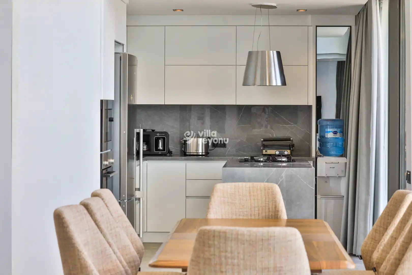 * Bu evin resimleri sitemizde yer alan diğer evlerin resimleri gibi görüntüyü ekrana sığdırmak amacıyla, geniş açılı lens ve profesyonel fotoğraf makinaları ile çekilmektedir. Bu nedenle resimler üzerinde yer alan objeler gerçeğinden daha büyük olarak görülebilmektedir.
