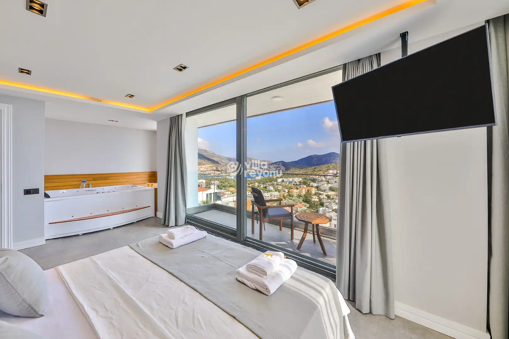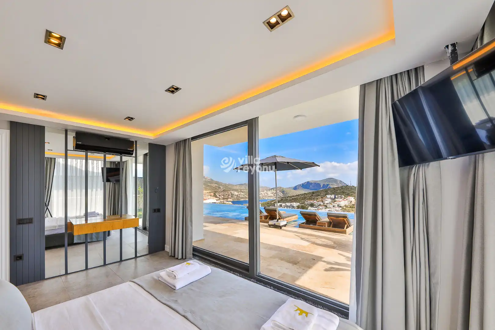Villa Monra, Antalya’nın Kalkan beldesine bağlı Kalamar Mevkii’nde yer alıyor. Bu özel konum, deniz manzarası, doğayla iç içe atmosferi ve merkez yakınlığı ile dikkat çekiyor. Altı yatak odalı bu geniş villa, 12 kişilik konaklama kapasitesiyle kalabalık aileler ve arkadaş grupları için ideal bir tatil ortamı sağlıyor. Sonsuzluk havuzu, jakuzisi ve teknolojik donanımıyla her anınızı konfor içinde geçirmenize olanak tanıyor.