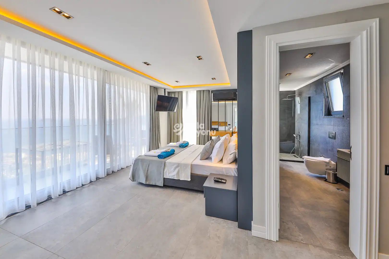 Villa Monra, sadece genişliğiyle değil, sunduğu olanaklarla da fark yaratıyor. Villanın tamamında klima mevcut. Her yatak odasında özel banyo bulunuyor, böylece kalabalık gruplarda bile konfor kaybı yaşanmıyor. Deniz manzaralı sonsuzluk havuzu, manzaranın ve güneşin tadını çıkarabileceğiniz alanlar sunuyor.